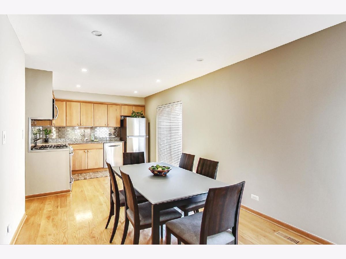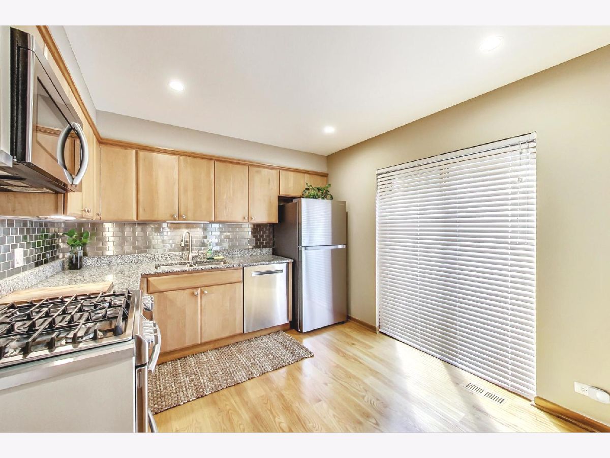 Great architectural Frank Lloyd Wright inspired details in this bright 3 bed 2 bath townhouse house located in West Ridge. Great walking neighborhood, tree-lined streets, and easy access to parks and trails. This fabulous floorplan, flanked by oversized windows brings the outdoors in. The open floorplan is perfect for everyday living and entertaining. Separately defined dining area and modern updated kitchen with easy access to oversized living room and deck. The living room features an elegant exposed brick accent wall with wood burning fireplace. Finished basement, perfect for many uses, currently set-up as a family room. 3 Large bedrooms all in one level, large closets, including a walk-in closet. 2nd level carpet is in great condition but there are hardwood floors underneath. Many recent updates and upgrades in lighting throughout, newer appliances (2017), newer mechanicals (2015), newer granite counters, replaced to new oak floors in kitchen and dining room, updated bathroom, cooper plumbing throughout the home, fully move-in ready, worry-free ownership. This small townhouse complex is 5 units, offers lots of landscaping options and an oversized shared yard for common use. Solid association, currently all owner-occupied but with no rental restrictions, $14K in reserves, no upcoming work. 1 Garage parking space is included with the sale. 1 storage cage included. Fabulous very residential location with immediate access to Robert Black Golf Course, Warren Park, and Indian Boundary Park. Lunt bus 1 block away with direct access to Morse Red Line and Rogers Park Metra. Minutes to shops, restaurants, pubs, multiple grocery stores! Easy access to the Lakefront, Andersonville, and Downtown Evanston!