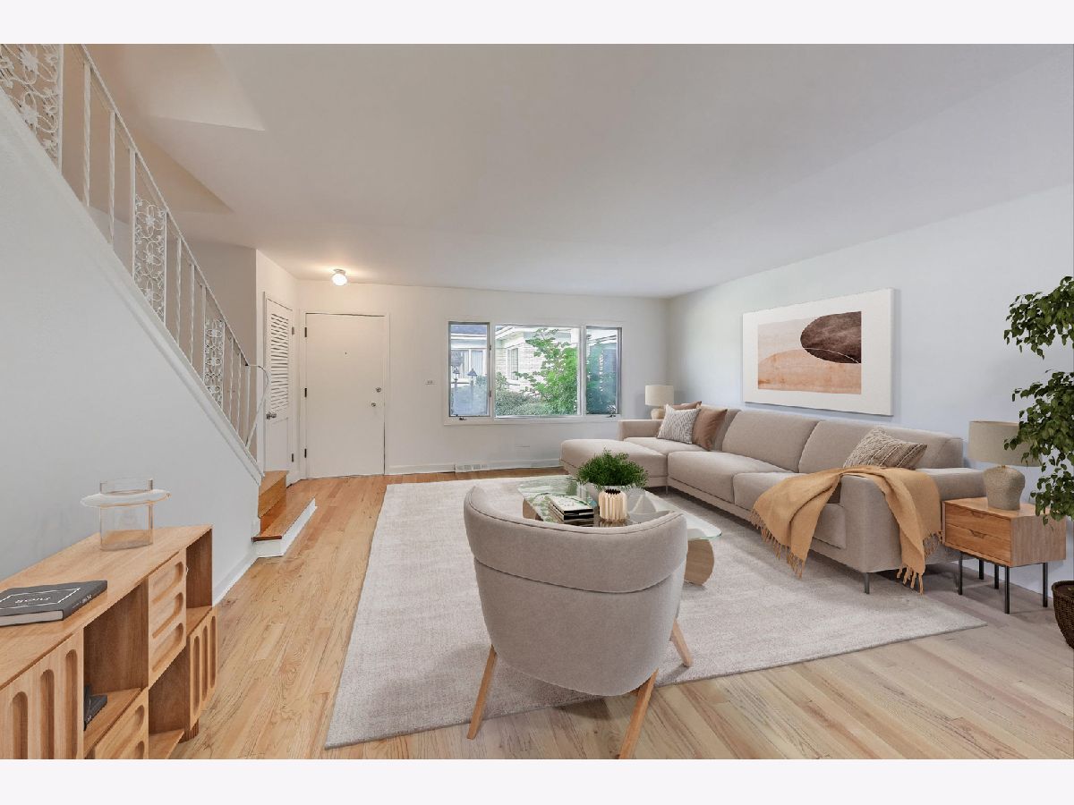 Tucked away in the heart of quaint West Ridge is this beautifully maintained, 3-bedroom, 2-bath charming courtyard townhouse with a finished lower level and an extra-large storage/laundry room, garage parking and your own fenced, patio for outdoor enjoyment. Offering the perfect blend of comfort, charm, and thoughtful updates this freshly updated townhome lives like a single- family residence. As you step into the home the sizeable living room welcomes you with a bright, open layout, gleaming hardwood floors and windows that overlook the courtyard. The dining room accommodates large gatherings and features a white brick accent wall perfect for your favorite painting to hang and to set a cabinet or sideboard/buffet against. Hosting friends and family for gatherings is surely a breeze in this home as the dining room opens to the airy and cozy kitchen with stainless steel appliances, gorgeous, imported tiles and a garden window by the sink for natural light and for plants and herbs to grow year-round. Sliding doors off the kitchen lead to your own privately fenced, outdoor oasis with brick pavers throughout. Enjoy grilling, relaxing, gardening, etc in this great, unique space of your own. A fully remodeled 2nd bathroom with slider glass shower doors complete the main level. Upstairs features three ample sized-bedrooms-all with great closet space-plus a full bath and linen closet. The primary bedroom hosts two closets, a fan and nice views of the courtyard! The lower-level expands your living space with a cozy family room and a generous unfinished laundry/utility area, complete with abundant storage and a dedicated 240V electrical circuit for woodworking or other hobbies. This home has been meticulously cared for, with recent improvements including new double-paned windows (2020), fresh paint, new basement flooring, a new sump pump, and a new furnace (2024). Beyond the interior, the proactive, self-managed HOA has overseen extensive updates: roof (2018), new entry steps and walkways, iron railings (2023/2024), updated garages and fences, replaced gas lines, and capped/coated chimneys-ensuring peace of mind for years to come. This charming set of courtyard townhomes is unlike others as it's situated on an extremely wide/deep lot and is complemented by a unique and serene green space-an extremely large grassy area with a few lush trees between the townhomes and garages for community members to enjoy. It's perfect for play, pets or simply unwinding under the open sky. With Indian Boundary Park, Warren Park, schools, and shopping just moments away.