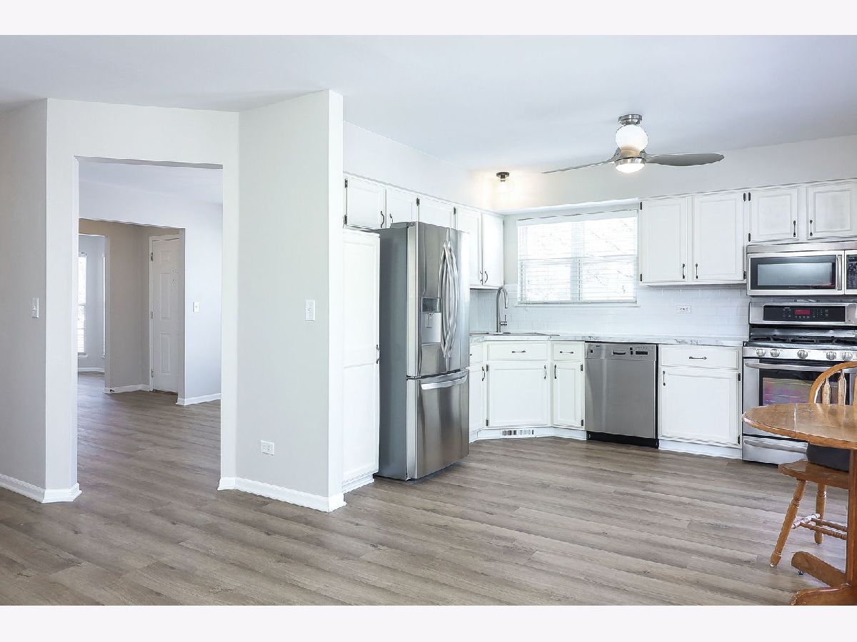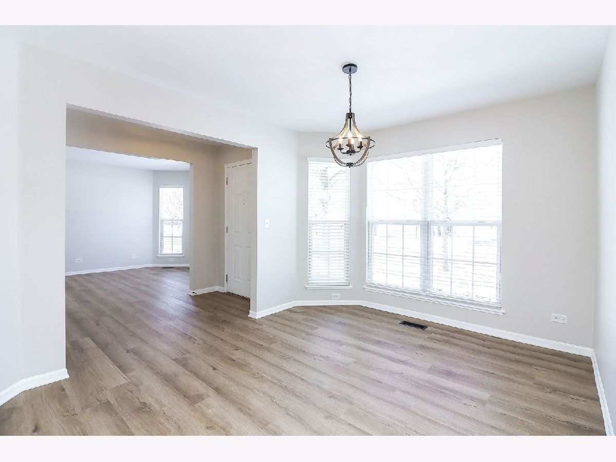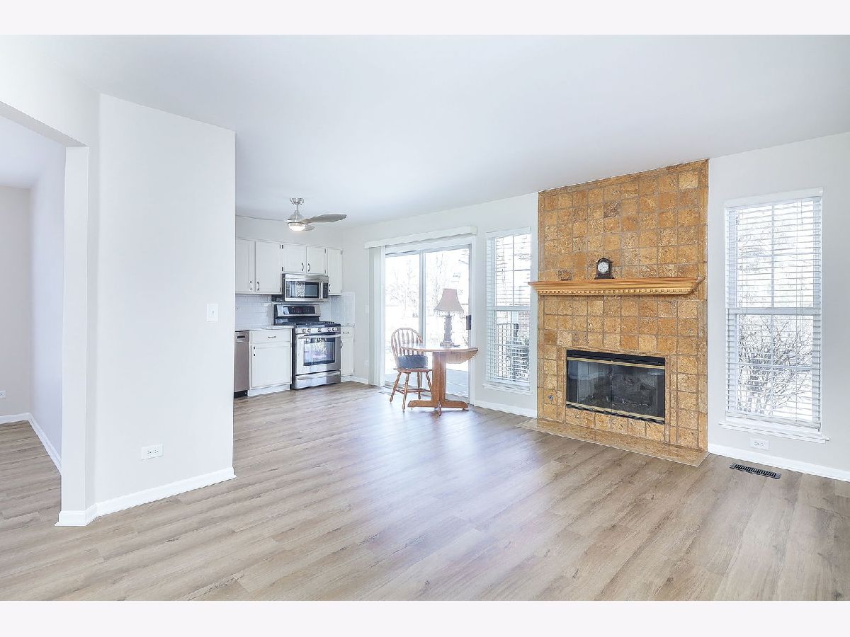 Be the first to live and enjoy this updated ranch townhouse end unit just updated in 2025 for its next owner! This one level living is rarely available. The home boasts luxury vinyl plank flooring throughout, family room with fireplace, separate living room and dining room. Primary bedroom with vaulted ceilings and new bathroom, and WIC. The secondary bedroom is separated from primary and has its own full bathroom to use. A laundry room in unit, perfect for extra space. The two-car garage, and end unit views makes for a relaxing and spacious use of space to live in. Close to shopping, restaurants, interstates, trains to commute into the city and more.
