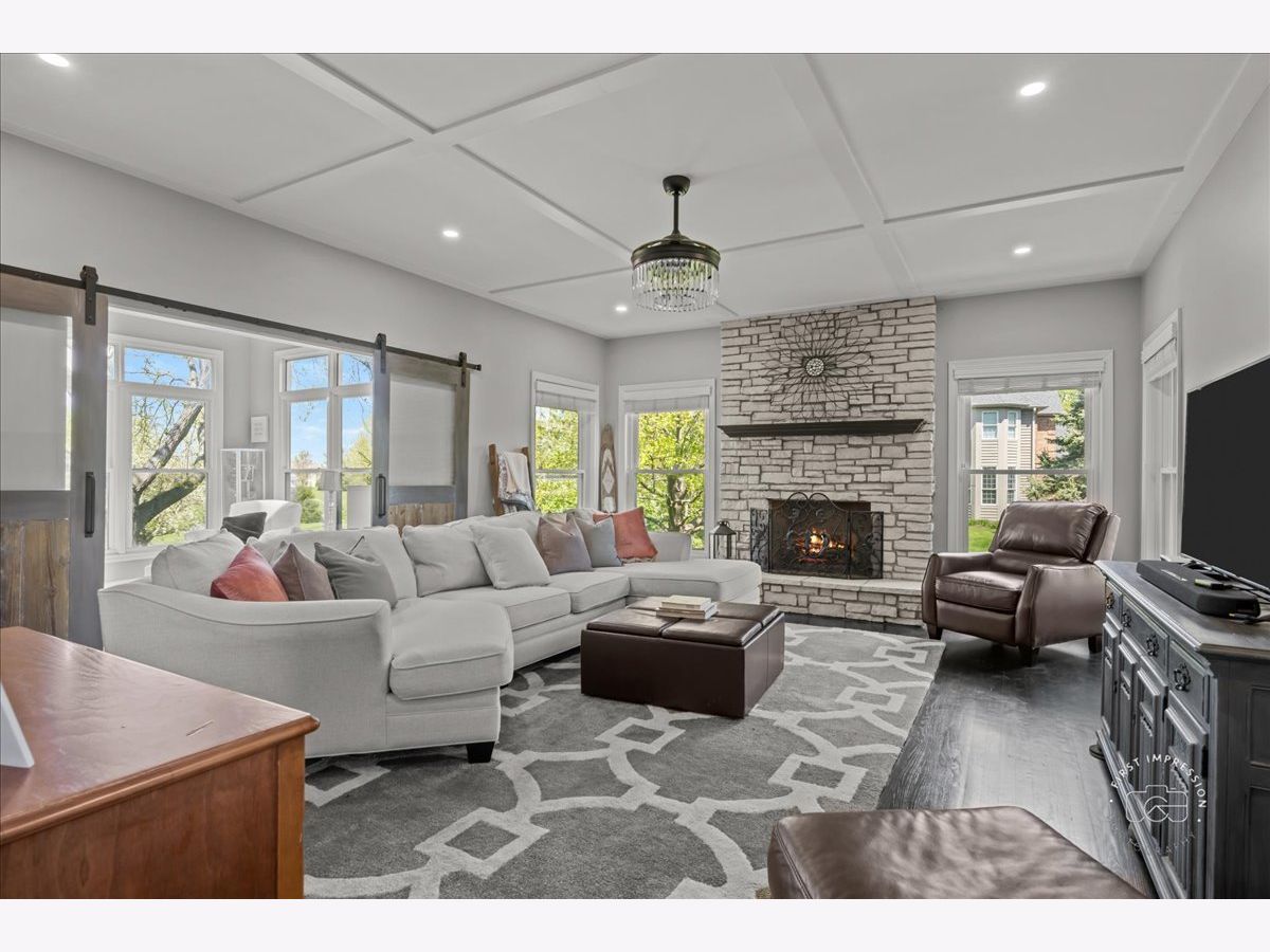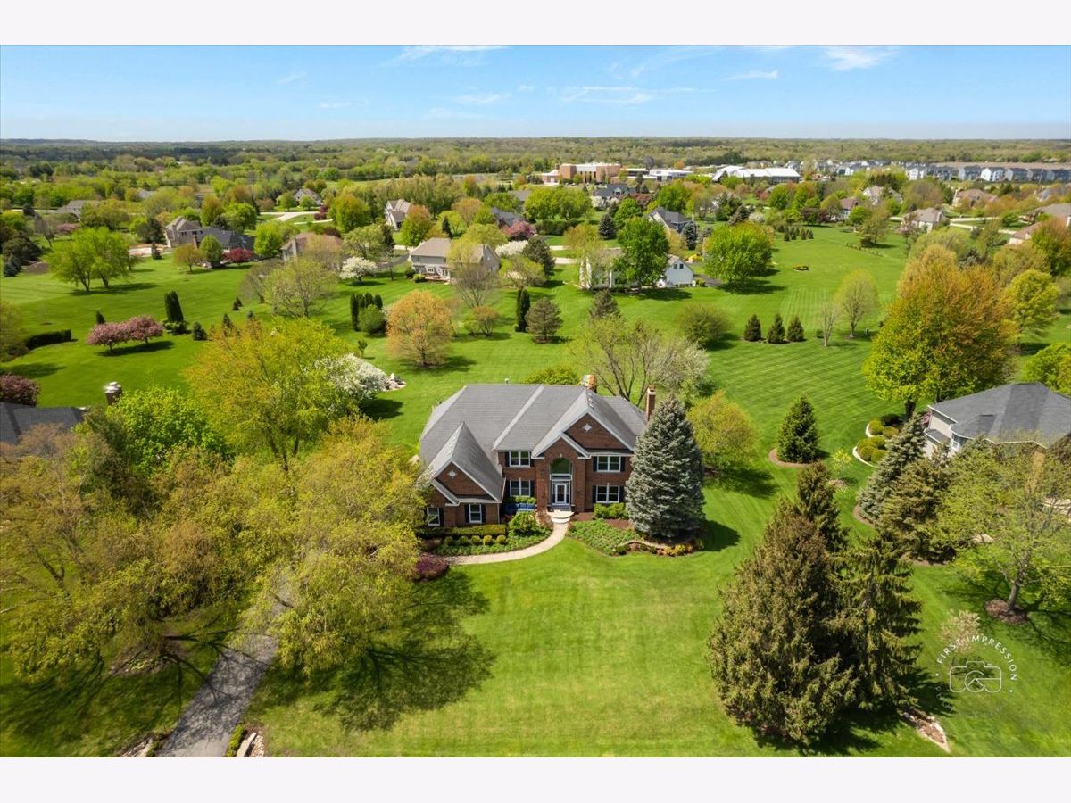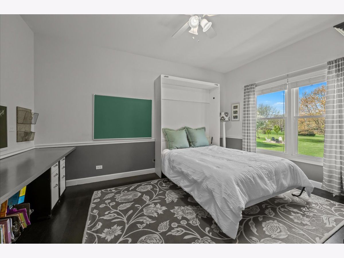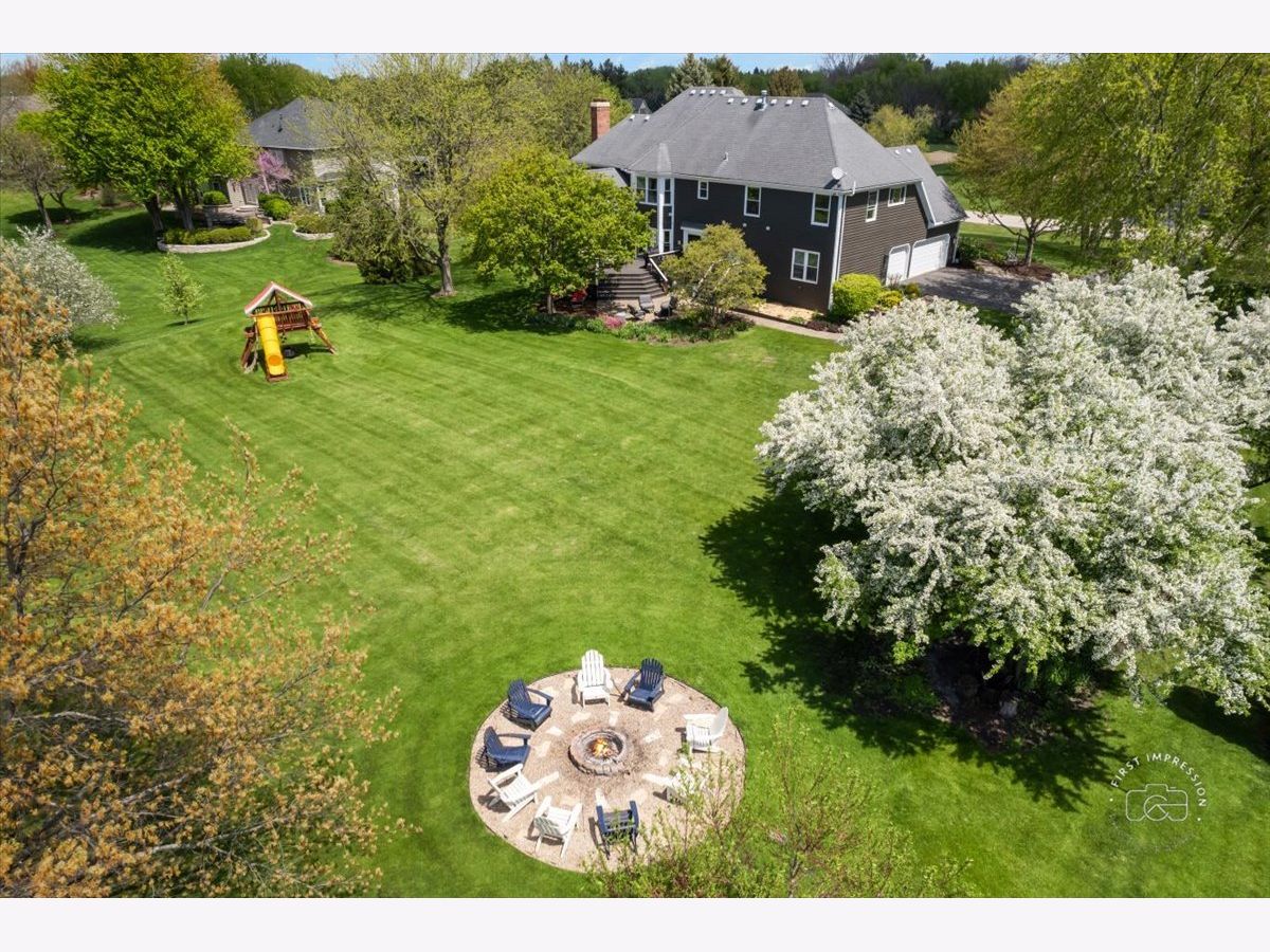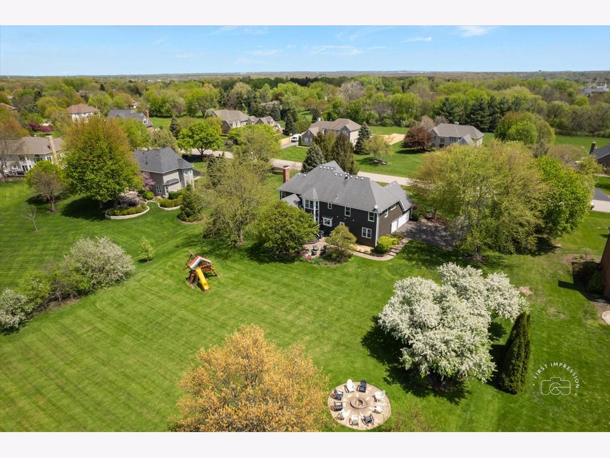 Welcome to this stunning updated 5-bedroom, 4 full and 1 half bath custom home nestled on a beautifully landscaped 1.25-acre lot in the desirable Red Gate Ridge neighborhood of St. Charles. With its brick and freshly painted cedar exterior and mature trees-including fruit trees-this home offers timeless curb appeal and serene outdoor living with a deck, patio, and fire pit area. Inside, a grand two-story foyer with a sweeping staircase sets the tone for this elegant home. The formal dining room features updated millwork , custom ceiling and lighting. The private office impresses with French doors and a custom built-in bookcase. The heart of the home is the beautiful kitchen, complete with high-end appliances, center island, ample counter space, and an eat-in area. It opens seamlessly into the family room with a stone fireplace, stunning coffered ceiling and flows into an extended sun room with a vaulted ceiling-perfect for entertaining or relaxing with the peacefull views of the yard. A main level flex room with a murphy bed and full bath offer versatile space for guests, hobbies, or a second office. The upper level you'll find five generously sized bedrooms and 3 full baths. The luxurious primary suite with dual walk-in closets and a spa-like en-suite bath. The finished English basement provides exceptional additional living space, including a recreation area, a second fireplace, a bar area, game zone with a built-in Murphy bed, half bath and garden windows that bring in natural light. Additional highlights include a three-car garage, main-level laundry, and abundant storage throughout. Located in top-rated St. Charles School District and close to shopping, dining, and parks, this home offers the perfect blend of luxury, space, and convenience