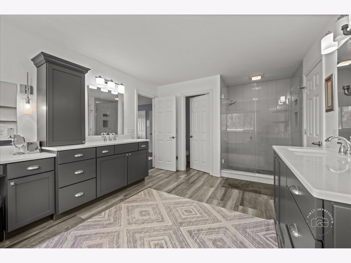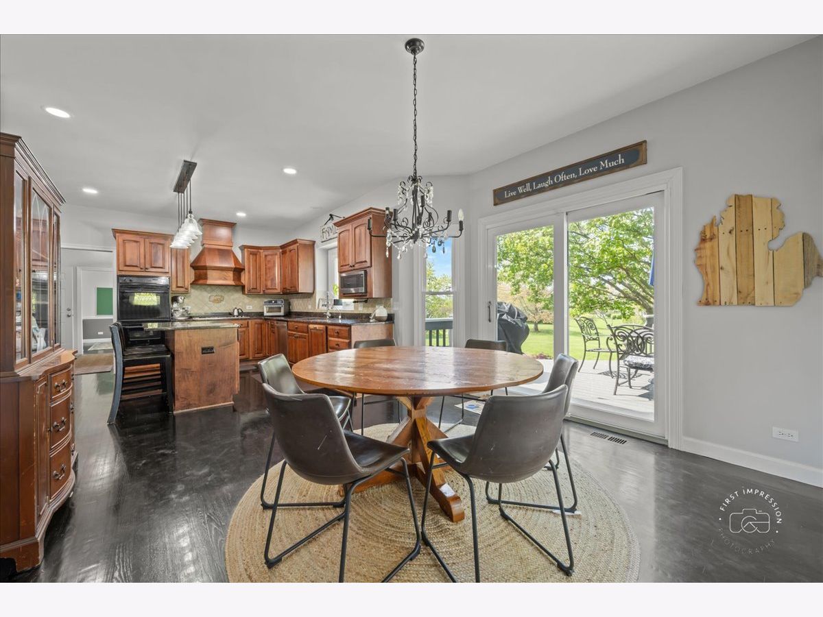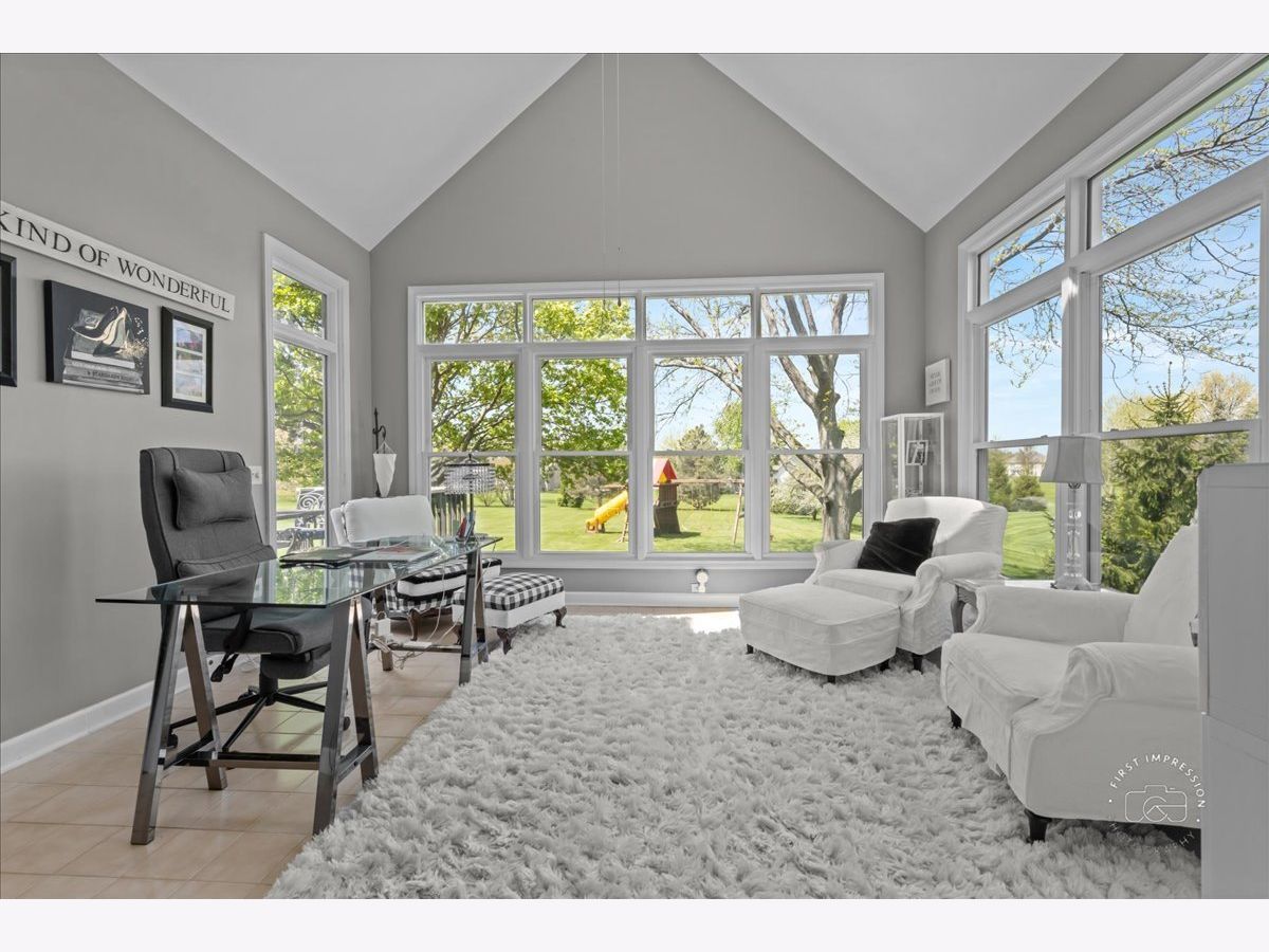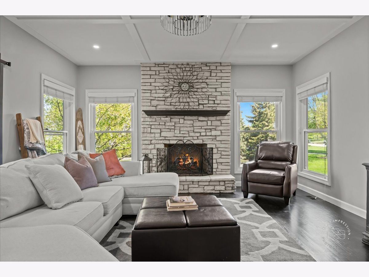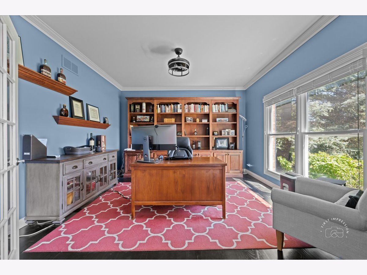 Welcome to this stunning updated 5-bedroom, 4 full and 1 half bath custom home nestled on a beautifully landscaped 1.25-acre lot in the desirable Red Gate Ridge neighborhood of St. Charles. With its brick and freshly painted cedar exterior and mature trees-including fruit trees-this home offers timeless curb appeal and serene outdoor living with a deck, patio, and fire pit area. Inside, a grand two-story foyer with a sweeping staircase sets the tone for this elegant home. The formal dining room features updated millwork , custom ceiling and lighting. The private office impresses with French doors and a custom built-in bookcase. The heart of the home is the beautiful kitchen, complete with high-end appliances, center island, ample counter space, and an eat-in area. It opens seamlessly into the family room with a stone fireplace, stunning coffered ceiling and flows into an extended sun room with a vaulted ceiling-perfect for entertaining or relaxing with the peacefull views of the yard. A main level flex room with a murphy bed and full bath offer versatile space for guests, hobbies, or a second office. The upper level you'll find five generously sized bedrooms and 3 full baths. The luxurious primary suite with dual walk-in closets and a spa-like en-suite bath. The finished English basement provides exceptional additional living space, including a recreation area, a second fireplace, a bar area, game zone with a built-in Murphy bed, half bath and garden windows that bring in natural light. Additional highlights include a three-car garage, main-level laundry, and abundant storage throughout. Located in top-rated St. Charles School District and close to shopping, dining, and parks, this home offers the perfect blend of luxury, space, and convenience