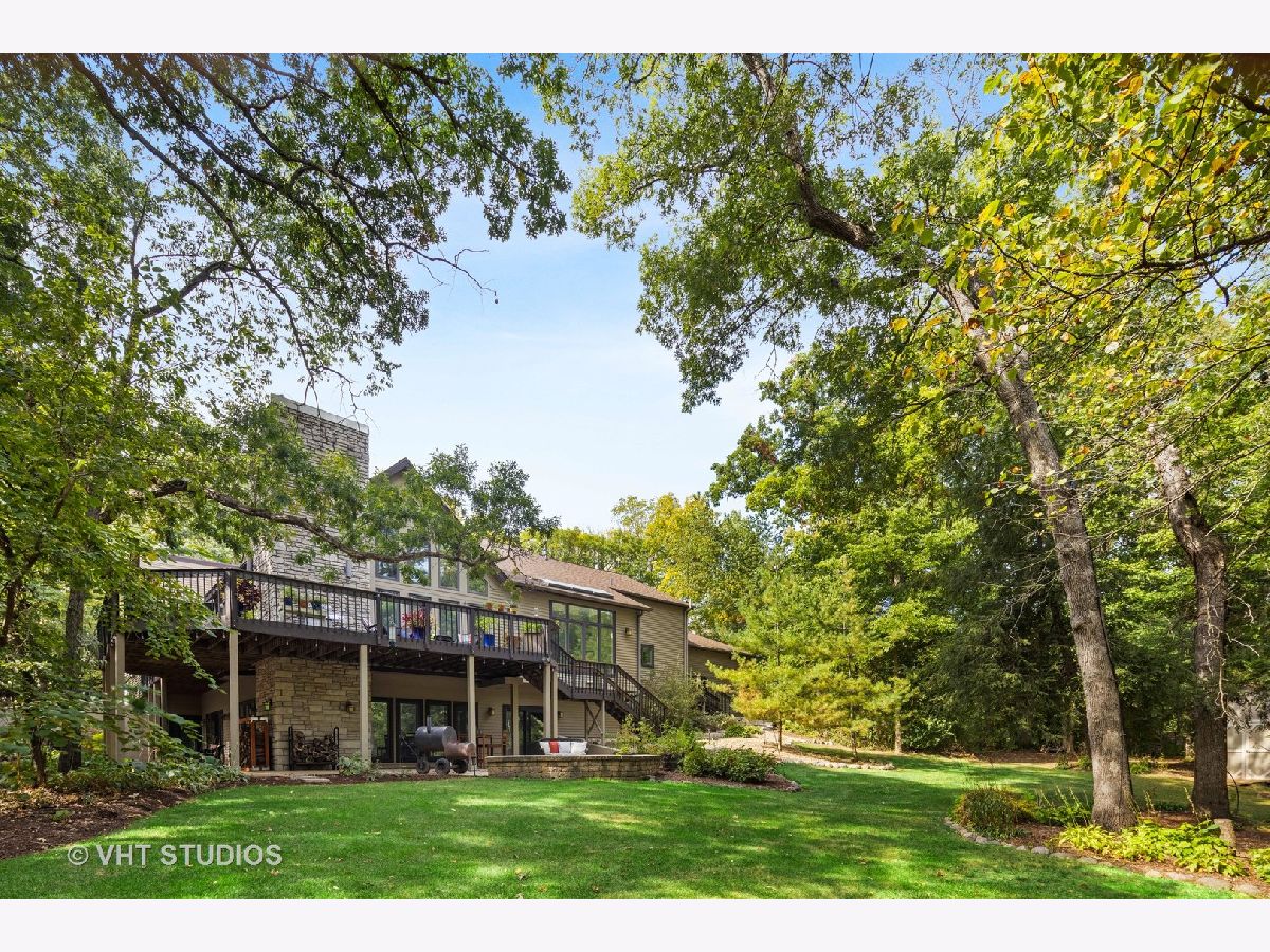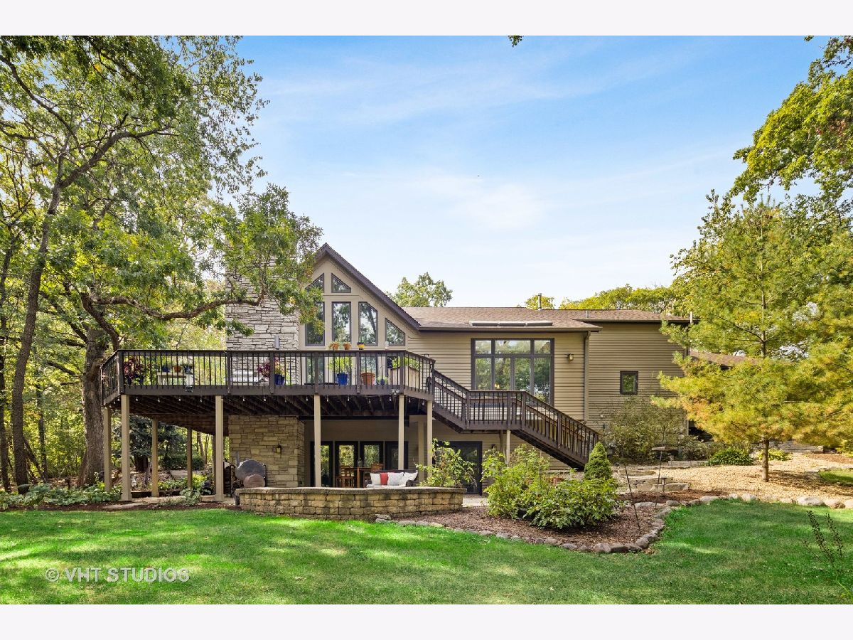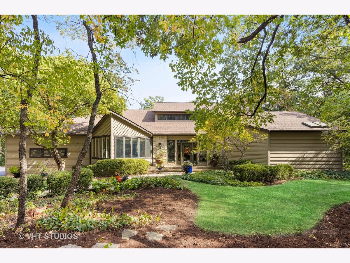 Imagine living in a private getaway, feeling like you are vacationing the whole year round. Now don't just imagine it - come and tour this one-of-a-kind home for yourself! Prepare to be impressed with this open and airy main level featuring all of the essentials in a home giving this property the unique capability of accommodating one-level living. Enter and be greeted by soaring ceilings with natural light streaming in through many windows and skylights throughout. On the main level you will find your sprawling Great Room with walls of windows allowing the scenic wooded view to make its way into your home along with a cozy stone fireplace - perfect for the upcoming Fall & Winter nights. Your gourmet kitchen and eating area are situated right next to your Great Room allowing this whole area to be the perfect place for entertaining. Your kitchen features custom cabinetry, granite counters, stone backsplash, and stainless steel appliances. Enjoy the convenience of having your primary suite and spa-like ensuite bathroom located on the main level which both feature an abundant amount of natural light streaming in through all of your windows. Enjoy peaceful mornings here with your second fireplace and screened in porch with views of your private wooded backyard. The main level also holds your formal living room or office space, formal dining room, laundry suite and powder room. Head on down to your lower level with newer commercial grade luxury vinyl flooring! This level holds even more living space featuring your family room or craft area with your third fireplace and continuous views of your private wooded oasis, gaming spot with bar area, three more bedroom spaces or workout zone and two full bathrooms. Bedrooms two & three share a jack & jill style bathroom while bedroom four (or your workout zone) has access to another full bathroom that can also be accessed behind the bar. Even more storage space can be found in the unfinished area of the basement. This property is truly the best of both worlds with having a vacation at home type of feeling sitting on almost two acres of mature landscaping plus you are situated next to several hundred acres of natural forest preserve space with walking trails making this the perfect place to escape to as a private at-home oasis while also being just a few miles to town and the Metra. Welcome home!