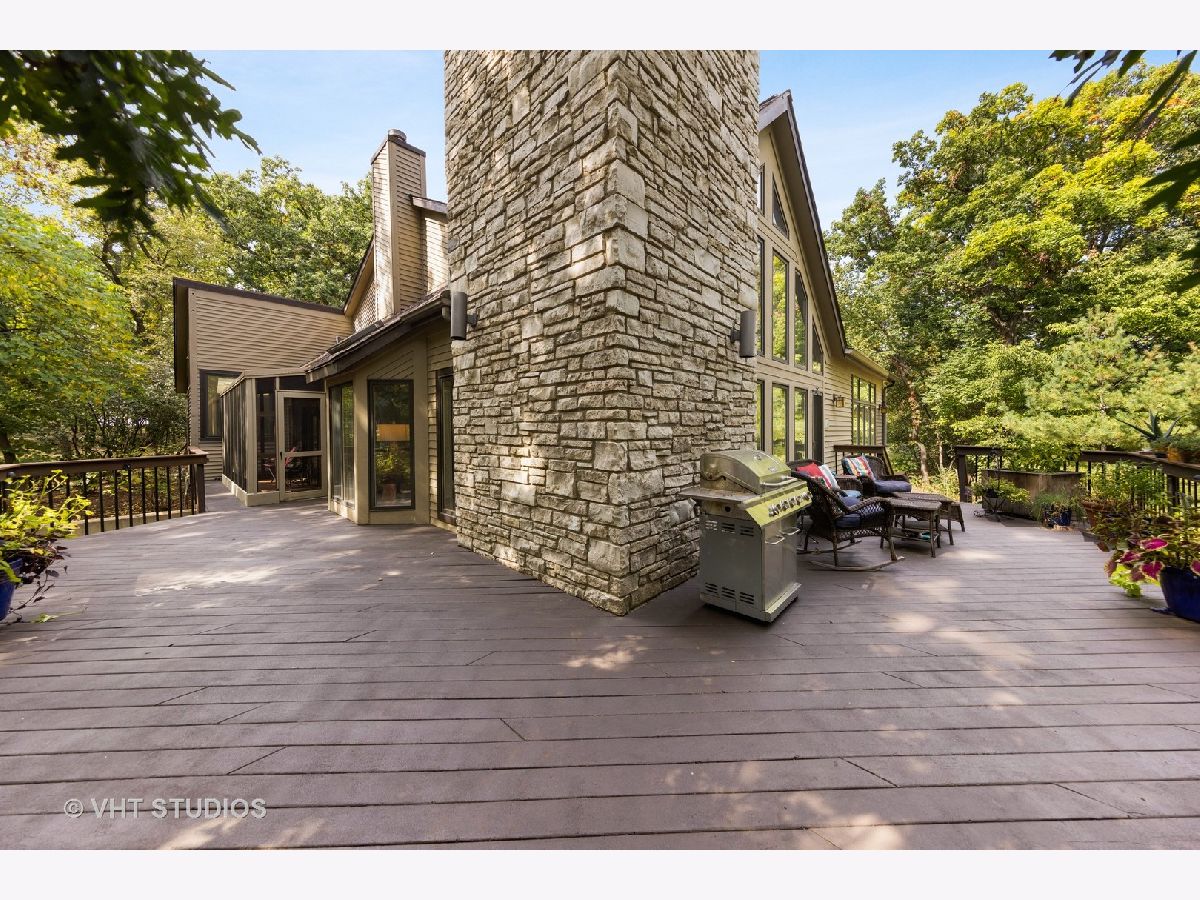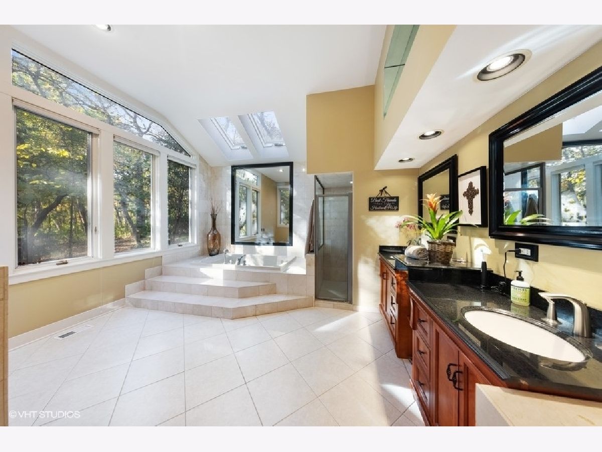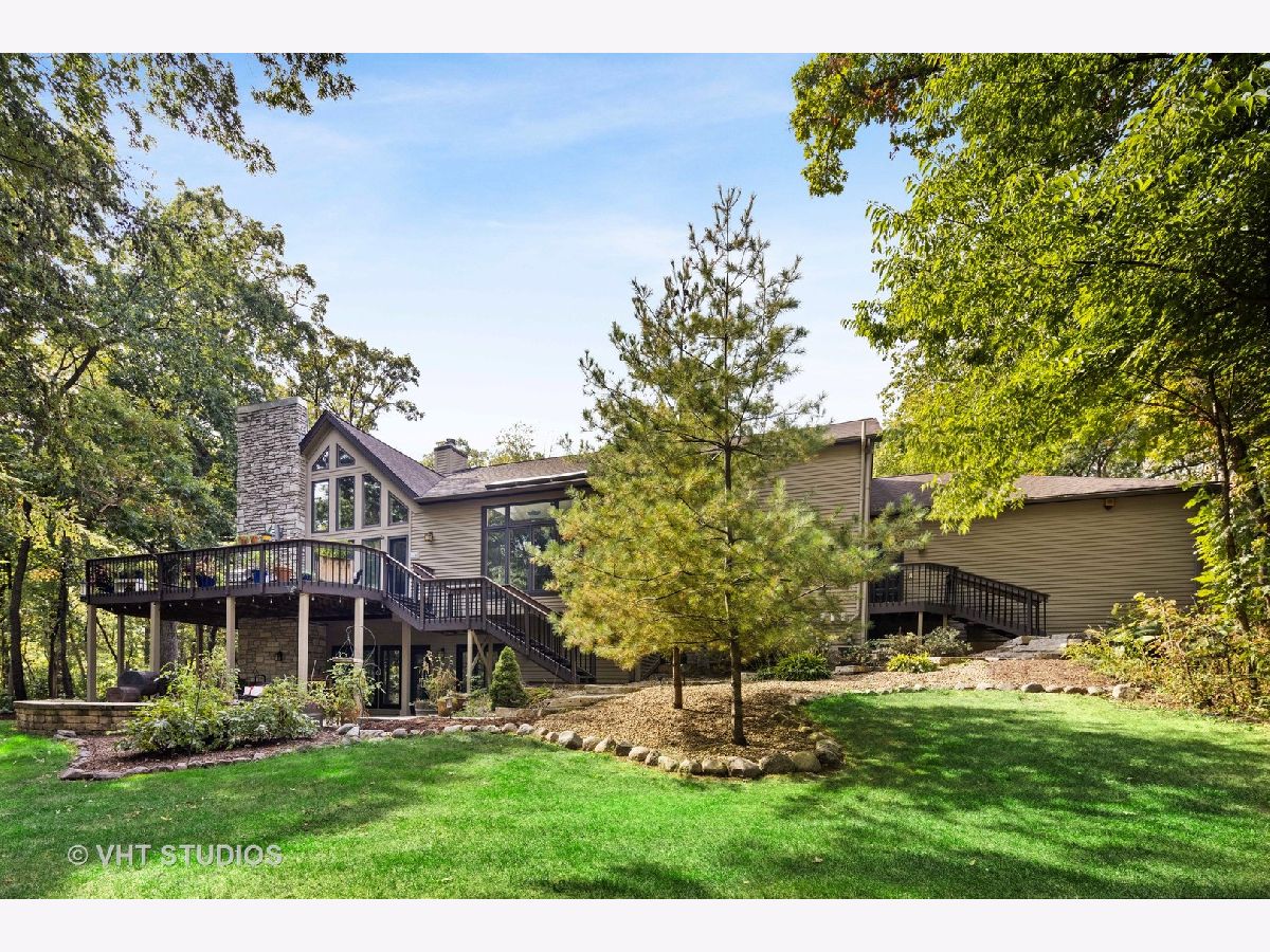 Imagine living in a private getaway, feeling like you are vacationing the whole year round. Now don't just imagine it - come and tour this one-of-a-kind home for yourself! Prepare to be impressed with this open and airy main level featuring all of the essentials in a home giving this property the unique capability of accommodating one-level living. Enter and be greeted by soaring ceilings with natural light streaming in through many windows and skylights throughout. On the main level you will find your sprawling Great Room with walls of windows allowing the scenic wooded view to make its way into your home along with a cozy stone fireplace - perfect for the upcoming Fall & Winter nights. Your gourmet kitchen and eating area are situated right next to your Great Room allowing this whole area to be the perfect place for entertaining. Your kitchen features custom cabinetry, granite counters, stone backsplash, and stainless steel appliances. Enjoy the convenience of having your primary suite and spa-like ensuite bathroom located on the main level which both feature an abundant amount of natural light streaming in through all of your windows. Enjoy peaceful mornings here with your second fireplace and screened in porch with views of your private wooded backyard. The main level also holds your formal living room or office space, formal dining room, laundry suite and powder room. Head on down to your lower level with newer commercial grade luxury vinyl flooring! This level holds even more living space featuring your family room or craft area with your third fireplace and continuous views of your private wooded oasis, gaming spot with bar area, three more bedroom spaces or workout zone and two full bathrooms. Bedrooms two & three share a jack & jill style bathroom while bedroom four (or your workout zone) has access to another full bathroom that can also be accessed behind the bar. Even more storage space can be found in the unfinished area of the basement. This property is truly the best of both worlds with having a vacation at home type of feeling sitting on almost two acres of mature landscaping plus you are situated next to several hundred acres of natural forest preserve space with walking trails making this the perfect place to escape to as a private at-home oasis while also being just a few miles to town and the Metra. Welcome home!