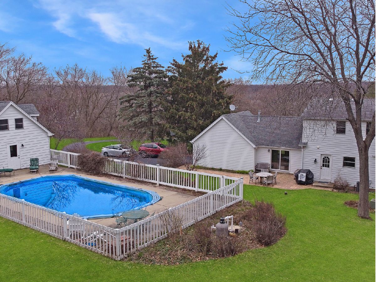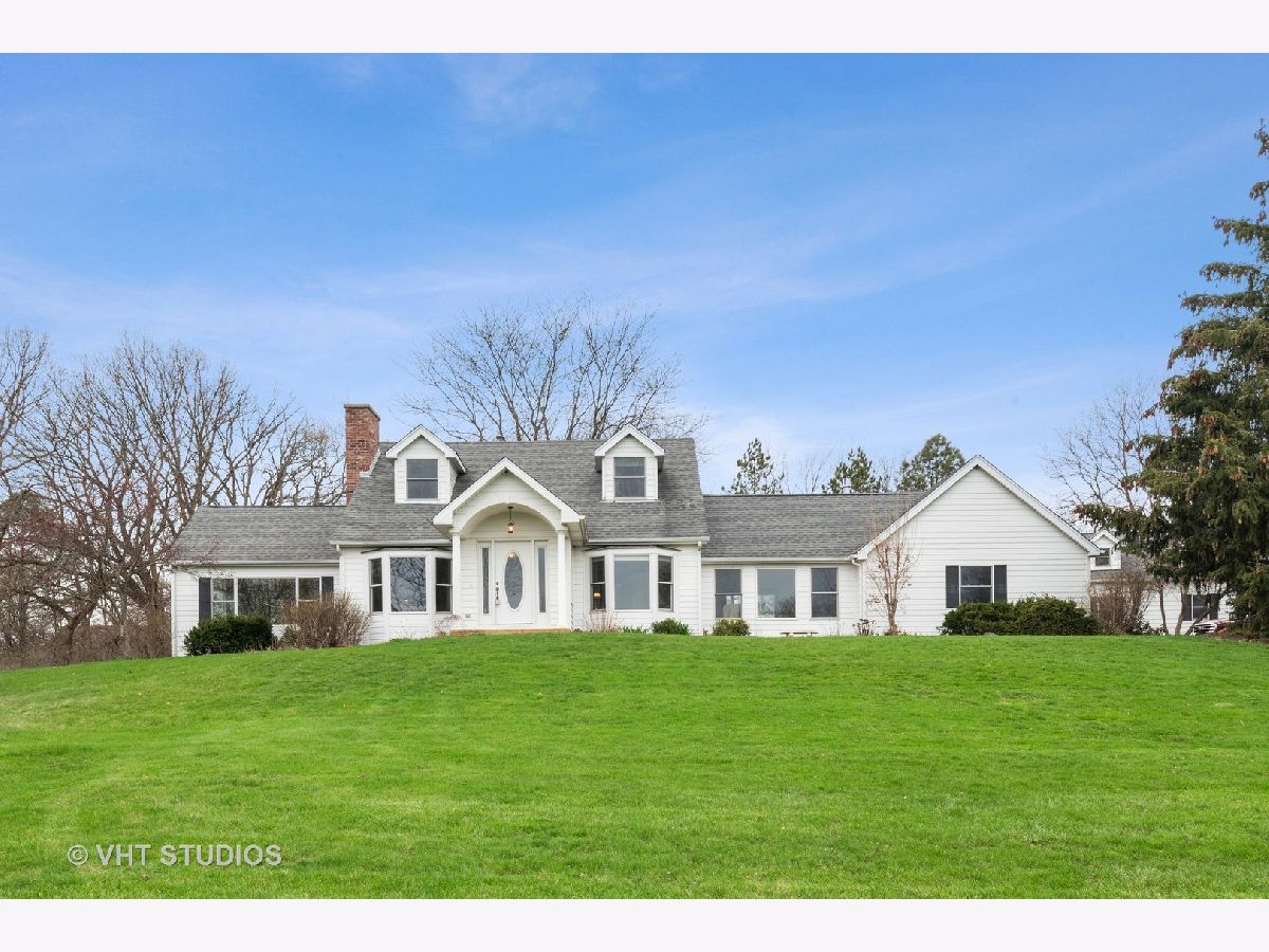 A beautiful hilltop Cape Cod on 5.76 acres overlooking the picturesque Fox River valley. This large estate contains a lovely 4 bd/3bath home with expansive Pella windows that make the best of stunning views. An updated eat in kitchen with custom white maple cabinets with stainless appliances and granite countertop has a great layout for easy food prep. Hardwood floors grace the vaulted great room and family room with fireplaces in each of those rooms. The family room has an impressive limestone wall and fireplace which is crowned with a live edge oak mantel. Upstairs is a light and airy master with walk in closet, built in storage and ensuite bathroom, plus two bedrooms and a full bath. There is an additional 4th bedroom on the main level currently used as a study Storage plus! 4 1/2 car garage spaces both attached and detached with addition useable attic space. Enjoy the outdoors, dining on a large stamped concrete patio, swimming in the inground pool or strolling on the numerous foot paths that lead one through majestic oaks, wildflowers and well tended lawn. The land is zoned E-3, 1 1/4 acre lots giving you the options of adding horses or subdividing or just adding on. The home is located with easy quick access to schools, shopping and fox river bike trail. A beautiful hilltop Cape Cod on 5.76 acres overlooking the picturesque Fox River valley. This large estate contains a lovely 4 bd/3bath home with expansive Pella windows that make the best of stunning views. An updated eat in kitchen with custom white maple cabinets with stainless appliances and granite countertop has a great layout for easy food prep. Hardwood floors grace the vaulted great room and family room with fireplaces in each of those rooms. The family room has an impressive limestone wall and fireplace which is crowned with a live edge oak mantel. Upstairs is a light and airy master with walk in closet, built in storage and ensuite bathroom, plus two bedrooms and a full bath. There is an additional 4th bedroom on the main level currently used as a study. Storage plus! 4 1/2 car garage spaces both attached and detached with addition useable attic space. Enjoy the outdoors, dining on a large stamped concrete patio, swimming in the inground pool or strolling on the numerous foot paths that lead one through majestic oaks, wildflowers and well tended lawn. The land is zoned E-3, 1 1/4 acre lots giving you the options of adding horses or subdividing or just adding on. The home is located with easy quick access to schools, shopping and fox river bike trail.