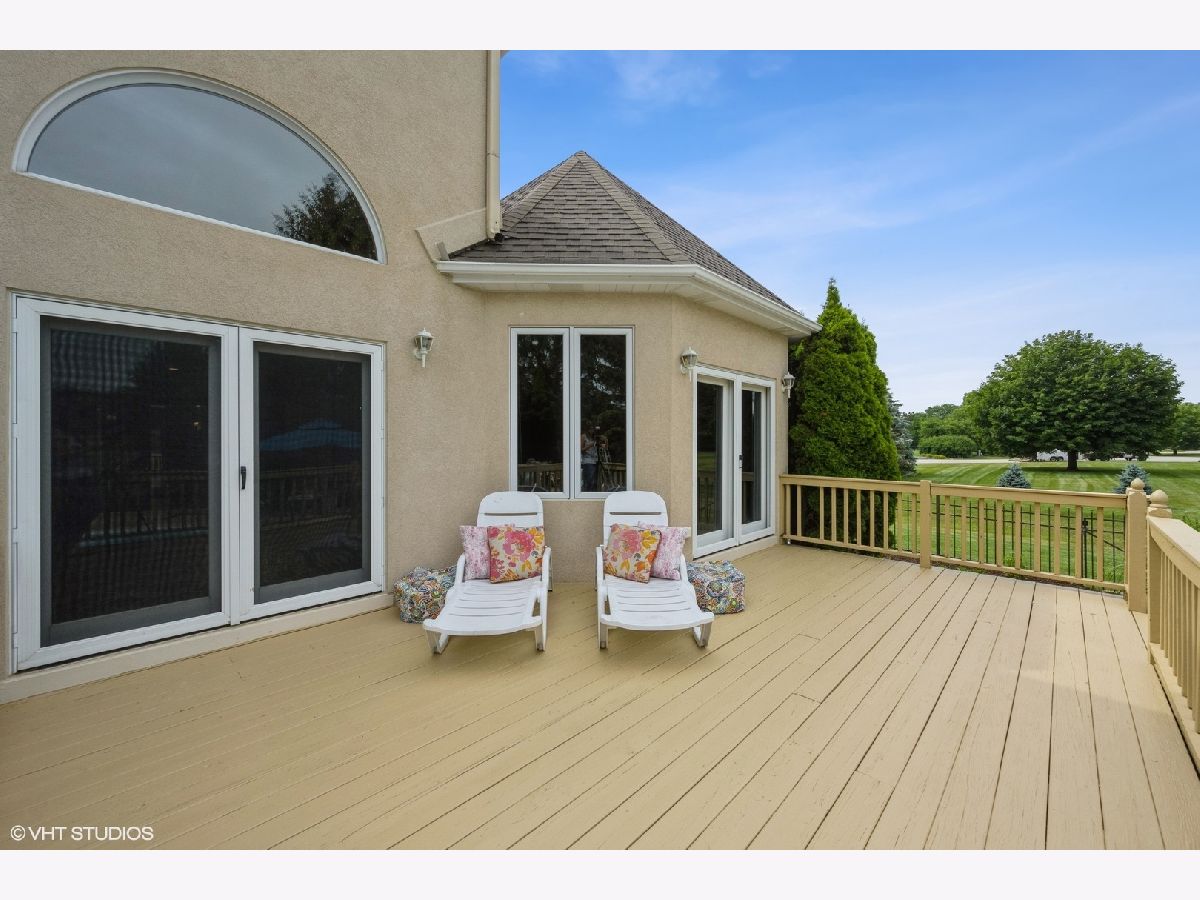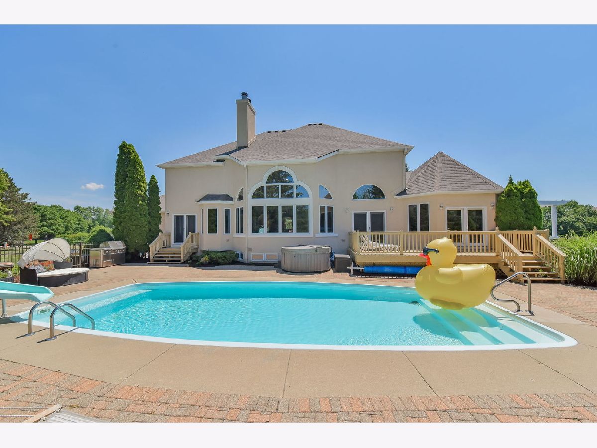 Custom built home residing on premium 1.27 acre lot in HERITAGE ON THE BURR subdivision. Property faces East, spectacular sunset views from the back deck, in-ground pool and hot tub. See the views year-round in floor to ceiling windows in open concept family room and kitchen. Enjoy the sunrise from your pergola and side garden. This house is well placed, well designed and made for entertaining. MAIN LEVEL includes foyer with chandelier, den, dining room, gallery, family room with double sided fireplace, chefs kitchen, and sunroom. First floor master bedroom with high ceilings and walkout deck. Master bathroom has whirlpool tub, separate shower, separate toilet room, double sinks and extra vanity. Laundry room and additional full bathroom on main level. UPPER LEVEL includes 3 bedrooms and 2 full bathrooms, one of them being a Jack and Jill. The upstairs loft connects to the grand spiral staircase. THREE CAR GARAGE is plumbed with soft water and hose access for the best car wash experience. Garage is heated and includes additional room/office. Basement accessible from garage staircase and home interior staircase. UNFINISHED BASEMENT boasts approx. 2,600 sqft, wood burning fireplace, rough in bathroom, rough in wet bar, multiple egress and other windows. UTILITY EQUIPMENT: central vacuum, HVAC 2015, hot water heater 2019, water softener and reverse osmosis system 2020 (owned), radon mitigation system 2022. OTHER UPDATES: roof 2021, Dryvit exterior inspection requirements completed 2021, driveway sealant 2022, garage floor 2022, hardwood floors refinished 2021, appliances updated in 2019. 303 SCHOOL DISTRICT: Ferson Creek Elementary School, Haines Middle School, St. Charles North High School. Build your dream basement and HAVE IT ALL with this property! Schedule a showing soon.