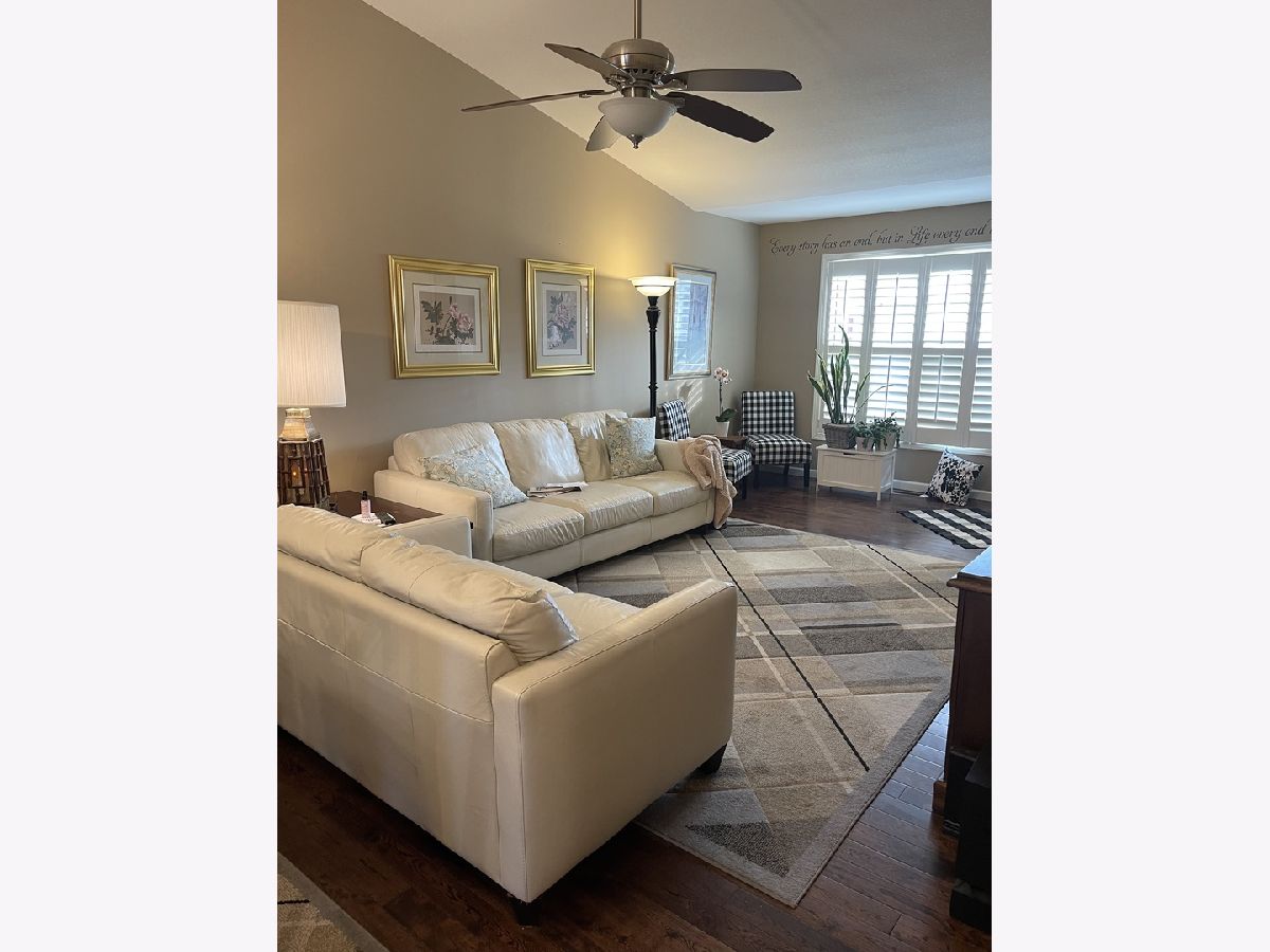 This charming home in Fox Creek Village offers a blend of spaciousness, style, and practicality. The inviting living room boasts stunning hardwood floors and vaulted ceilings, creating a welcoming atmosphere. The adjacent kitchen is a chef's dream, featuring stainless steel appliances, a stylish stone backsplash, and elegant dark maple cabinets. Attention to detail is evident throughout the home, with upgraded light fixtures and plantation shutters adorning all windows, adding charm and functionality. Step outside onto the deck from the kitchen area to enjoy the serene outdoors with a newer vinyl fence. The ranch floor plan includes three large bedrooms, three full baths, and a convenient main-floor laundry room, ensuring comfortable living. Additionally, the finished basement offers an additional bedroom, bathroom, family room, and storage. Notable amenities of this community include lawn service, street snow removal, and access to a clubhouse equipped with a pool, exercise room, and conference facilities, all covered by the monthly fee. With its exceptional features and finishes, this home stands out in the neighborhood, offering both luxury and convenience for its residents.