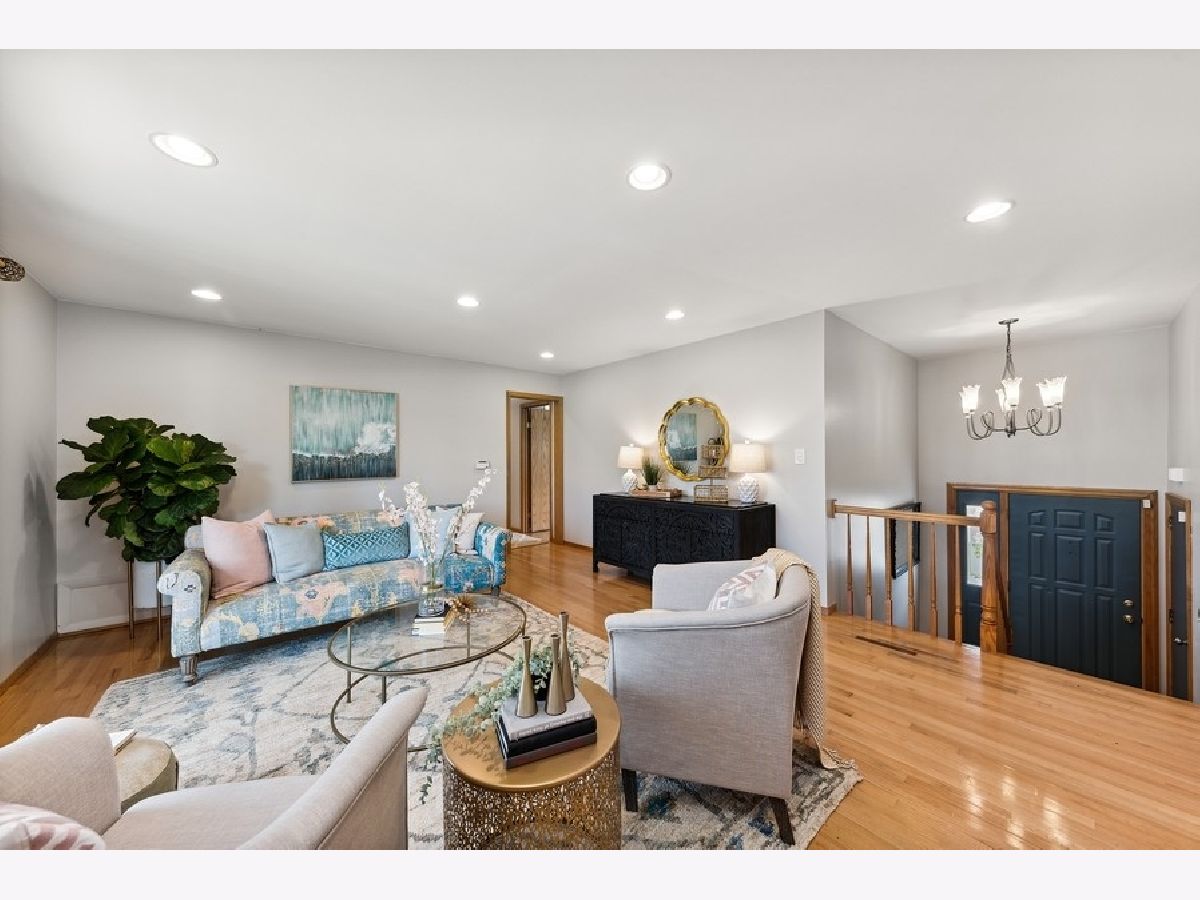 Fabulous raised ranch on a cul-de-sac in the Buffalo Grove district. The main level features hardwood floors throughout with a living room that overlooks a beautiful backyard and three generous size bedrooms. Each bedroom has full-size closets with custom organizers and large windows that allow for incredible natural light. A full-size bath completes the main level. The lower level has an open concept kitchen, dining, and family room allowing for great entertainment space. Large eat-in kitchen, stainless steel appliances, and ample storage. Convenient powder room and 4th bedroom work well as an office or playroom. The laundry/mudroom opens up to the amazing backyard. The possibilities are endless in this backyard haven that is fully fenced in. Get ready to spend your summer grilling, playing, and hanging out by the fire pit. Two-car attached garage with plenty of storage. Kids will never have to take a bus to public schools, Buffalo Grove High School and Longfellow Elementary School are located only a few steps out the back gate as well as Cooper Middle School is only a short 4 block walk. Besides access to all the school's parks and fields, miles of walking and bike paths are down the road at Buffalo Creek Forest Preserve and around Nickol Knoll Golf Club. Close to all the shopping and restaurants that Buffalo Grove has to offer. Welcome Home!
