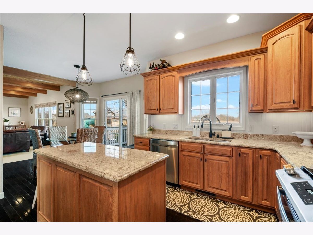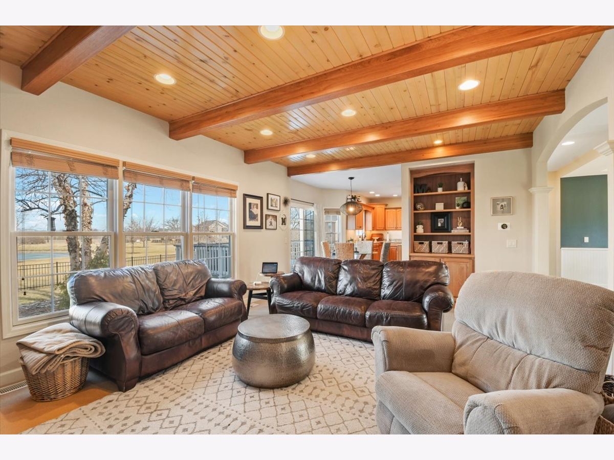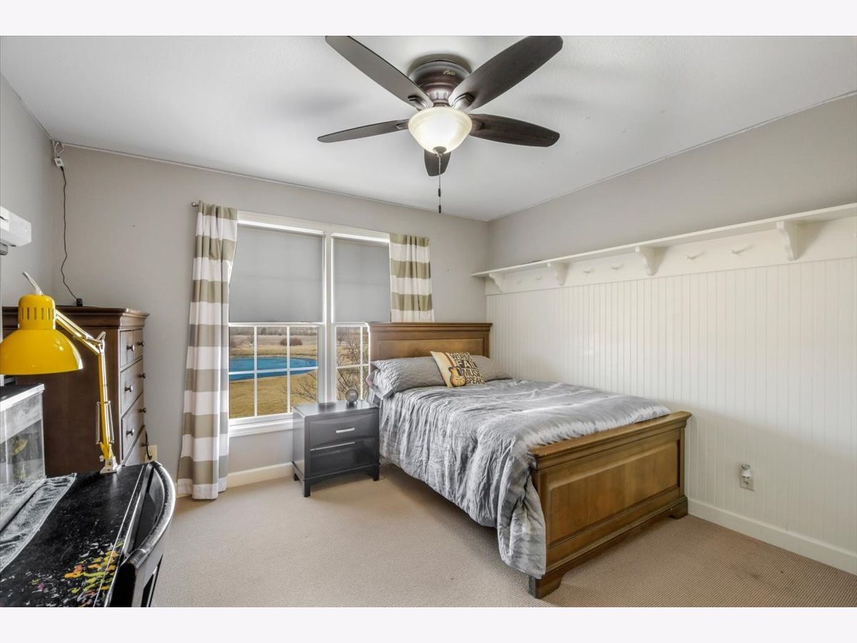 This "cottage style" 5BR/3.5BA lakefront home set on a quiet cul-de-sac in Fieldstone Subdivision is a must see. A former Showcase home (2008), this property has beautiful higher end finishes throughout. Dark hardwood floors lead you into a lovely dining room and kitchen complete with stainless steel appliances, center island, quartz countertops, custom cabinetry and table space. The kitchen opens to a lovely living room with beamed ceiling, stone fireplace and large windows, allowing for gorgeous lake views. The main floor offers extra convenience with a separate den/office space, 1/2 bath and mud room. The second floor has a spacious master bedroom with walk-in closet and attached bath, as well as three additional bedrooms, a full bath and convenient 2nd floor laundry. The finished basement affords you a huge amount of extra living space or a fantastic place to entertain, offering a family room, recreation room, additional bedroom and full bath. You'll love the large fenced backyard with lake views from the deck and paver patio. Convenient location offers easy access to the UI campus, shopping, restaurants and I57. New dishwasher/stove 2022, New Roof Summer 2021, New Furnace 2019, Paver Patio added 2021, Radon Mitigation System 2013