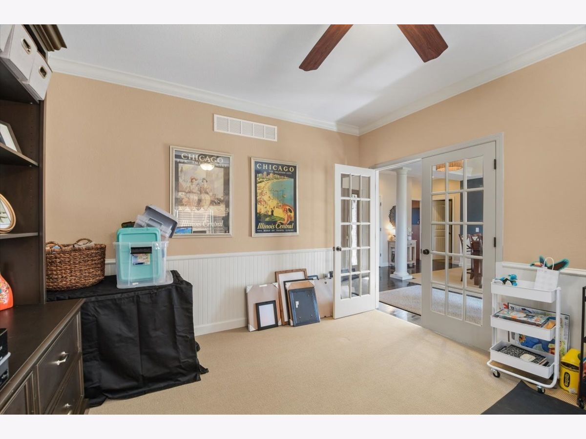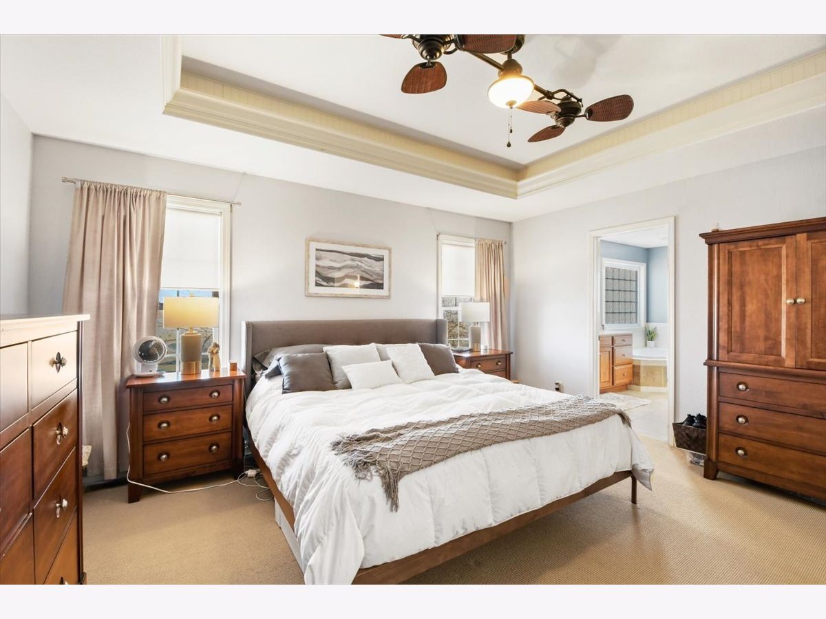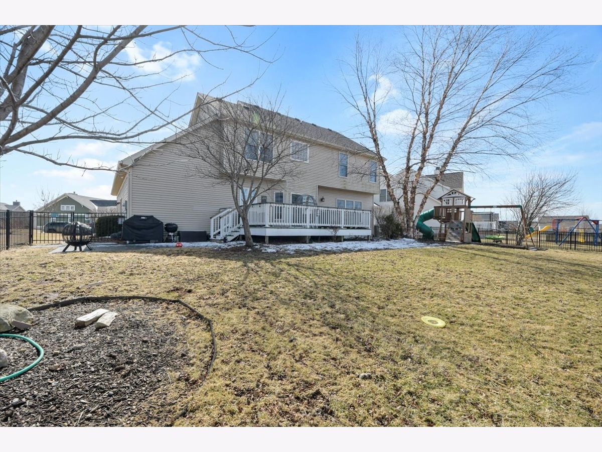 This "cottage style" 5BR/3.5BA lakefront home set on a quiet cul-de-sac in Fieldstone Subdivision is a must see. A former Showcase home (2008), this property has beautiful higher end finishes throughout. Dark hardwood floors lead you into a lovely dining room and kitchen complete with stainless steel appliances, center island, quartz countertops, custom cabinetry and table space. The kitchen opens to a lovely living room with beamed ceiling, stone fireplace and large windows, allowing for gorgeous lake views. The main floor offers extra convenience with a separate den/office space, 1/2 bath and mud room. The second floor has a spacious master bedroom with walk-in closet and attached bath, as well as three additional bedrooms, a full bath and convenient 2nd floor laundry. The finished basement affords you a huge amount of extra living space or a fantastic place to entertain, offering a family room, recreation room, additional bedroom and full bath. You'll love the large fenced backyard with lake views from the deck and paver patio. Convenient location offers easy access to the UI campus, shopping, restaurants and I57. New dishwasher/stove 2022, New Roof Summer 2021, New Furnace 2019, Paver Patio added 2021, Radon Mitigation System 2013