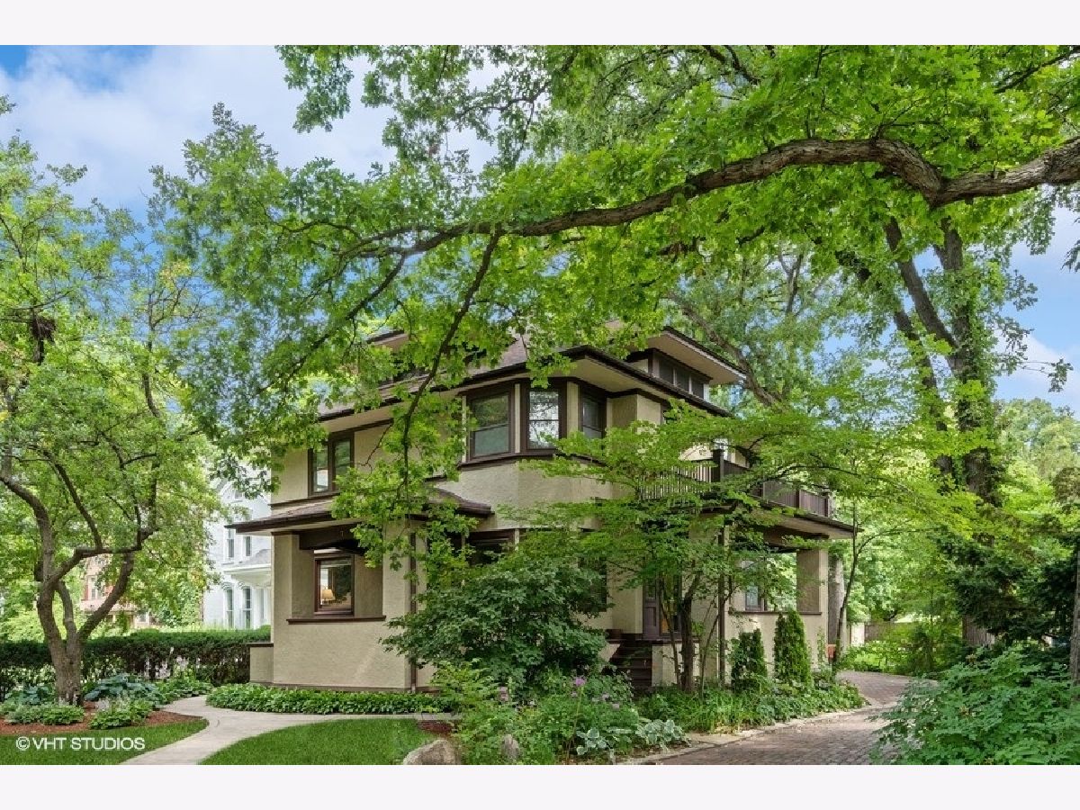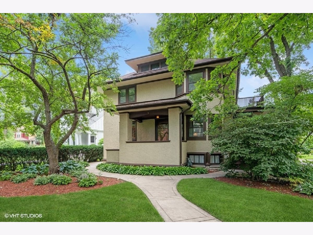 Live on one of the most iconic and idyllic streets in Oak Park. Elizabeth Court is a gently curving dead-end street lined with old growth oak trees in the heart of Oak Park. Lovingly improved and maintained by the same family for nearly 40 years, this Prairie-style stucco 2 flat has most recently been lived in as a single-family. The property offers 3 floors of finished living. 14 rooms total, 6 bedrooms, 2 kitchens, 4 full bathrooms, 3 patios, 2 gas fireplaces all on a massive 50x171 lot. The gorgeous backyard has mature oak trees and has been beautifully curated with perennials and other landscaping. As the last house built on Elizabeth Court, this property is situated toward the front of the lot in the center of the other houses and has unobstructed views from every window, showcasing the beautiful surroundings in every season. The front and side of the house have sheltered porches, and there is an additional sun porch on the second floor. Original woodwork and hardwood flooring throughout, uniform and timeless lighting from Brass Lighting Gallery in Milwaukee, WI which specializes in Prairie School fixutres. There are two bathrooms done in travertine tile/Mexican marble. There are so many opportunities in this property. Leave as-is and get extra rental income, deconvert into your dream home, or duplex down and have 2 duplex units. Easy walk to elementary and high school, Lake Street shopping, library, parks, and train line. One thing is for sure, Elizabeth Court is the perfect spot for your forever home.