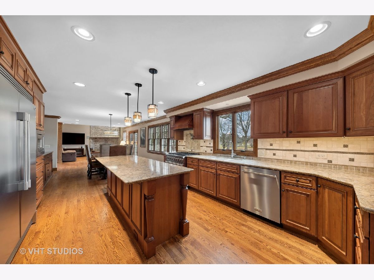 Welcome to your Gorgeous WATERFRONT home! This magnificent two-story home offers the perfect blend of elegance, comfort, and picturesque surroundings. Nestled in a unique WATERFRONT location, this residence boasts breathtaking views. As you approach the home, you are greeted by the Pennsylvania Blue Stone Walkway and beautifully landscaped yard. Once inside, you'll notice the seamless flow between the kitchen, living and dining spaces. The sliding doors off the family room bring the outdoors in and allows for effortless entertaining from your Outdoor Kitchen Oasis. Beautiful Pennsylvania Blue Stone Pavers, Buffet Counter with Sink/Ice Bin, Granite Counters, Viking Stove/Grill and Fire Pit overlooking the Gorgeous Yard and POND. The heart of this home is the UPDATED Eat In GOURMET KITCHEN, equipped with Top Of The Line Viking Appliances, Oversized Frigidaire Refrigerator/Freezer, Custom Cabinetry, Granite Counters, Custom Backsplash, Pot Filler, Island & Walk in Pantry. The Kitchen opens to the Vaulted Family Room which boasts a Beautiful Stone Fireplace with Custom Built Cabinetry including a Full Wet Bar, Dishwasher, Refrigerator & Ice Machine. Perfect for cozying up on chilly evenings. Large windows throughout flood the home with natural light. With 4 bedrooms, 3.2 bathrooms and an office, this home offers an abundance of space for a growing family. The Master Suite is a Private Retreat in itself, complete with Separate Vanities, Spa-Like Soaking Tub, Separate Shower and Custom Walk In Closet. 3 additional Spacious Bedrooms, another on suite and 3rd separate full bath. The Oversized BONUS ROOM with Spectacular Stone Fireplace, Vaulted Ceilings and Hardwood Floors can be easily tailored to meet all of your families needs! The FINISHED BASEMENT provides additional Space with Custom Cabinetry, Granite Counters, Full Wet Bar and Beverage Refrigerator. You'll love the Gaming Area, Exercise Room & 1800 Bottle Wine Cellar! This unique space offers Endless Possibilities for Entertaining & Relaxation. For car enthusiasts or those in need of extra storage space, the OVERSIZED 4 CAR ATTACHED GARAGES provide ample room for vehicles, tools, and equipment! Large Mud/Laundry Room and a separate private entryway to your Bonus Space. Located within the Fantastic Lake Zurich High School District, THIS HOME HAS IT ALL!