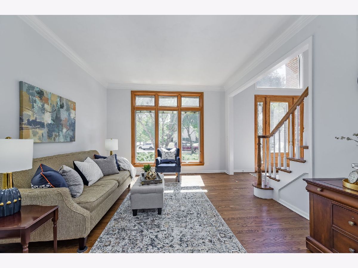 MARYWOOD TRANSITIONAL GEORGIAN LOCATED IN THE HEART OF THE NEIGHBORHOOD! YOU FEEL WELCOMED THE MOMENT YOU ENTER THE 2-STORY OPEN & SPACIOUS FOYER. HARDWOOD FLOORS HAVE BEEN NEWLY REFINISHED ON ENTIRE 1ST FLOOR. PAINTED TRIM AND DECORATOR COLOR ON WALLS MAKE THIS HOME FEEL LIGHT AND BRIGHT! WHITE KITCHEN, NEWER CAMBRIA COUNTERTOPS, SUBWAY TILE, LARGE ISLAND & NEWER STAINLESS APPLIANCES. 1ST FLOOR OFFICE/BEDROOM WITH ADJACENT FULL 1ST FLOOR BATH GIVES PLENTY OF FLEXIBILITY FOR A 5TH BEDROOM, NANNY, OR IN-LAW SUITE. BACK STAIRCASE OFF THE KITCHEN ALLOWS ACCESS TO 2ND LEVEL. SPACIOUS FAMILY ROOM WITH PRETTY GAS LOG FIREPLACE. GLASS FRENCH DOORS TO INVITING LIVING ROOM. BUTLER PANTRY BETWEEN KITCHEN AND SEPARATE DINING ROOM MAKES ENTERTAINING EASY. OVERSIZED MASTER BEDROOM WITH TRAY CEILING, HUGE WALK IN CLOSET AND FULL BATH! MASTER BATH HAS NEW QUARTZ COUNTER TOPS, SINKS, FAUCETS. IT ALSO HAS A SOAKING TUB, & SEPARATE SHOWER WITH NEW GLASS DOOR. ADDT'L BEDROOMS ARE SPACIOUS WITH LARGE CLOSETS. HALL BATH HAS NEW QUARTZ COUNTER TOPS, NEW RECTANGLE DOUBLE SINKS, & FAUCETS. FINISHED BASEMENT WITH RECREATION ROOM, BAR, FULL BATH AND PLENTY OF STORAGE! NEWER FRONT DOOR, PELLA WINDOWS. LARGE DECK OVER LOOKING VERY FLAT USABLE BACKYARD. 3 CAR ATTACHED GARAGE! A SHORT WALK TO PRAIRIE PATH, 7-GABLES PARK, BRIGHTON PARK, & TOUHY PARK/SAFETY CITY! AWARD WINNING SCHOOLS, PARKS, & LIBRARY! MINS TO 355 & I88 AND ALL OF DANADA SHOPPING! THIS HOME IS CLEAN, CLEAN, CLEAN AND READY FOR NEW OWNERS! WILL NOT DISAPPOINT!