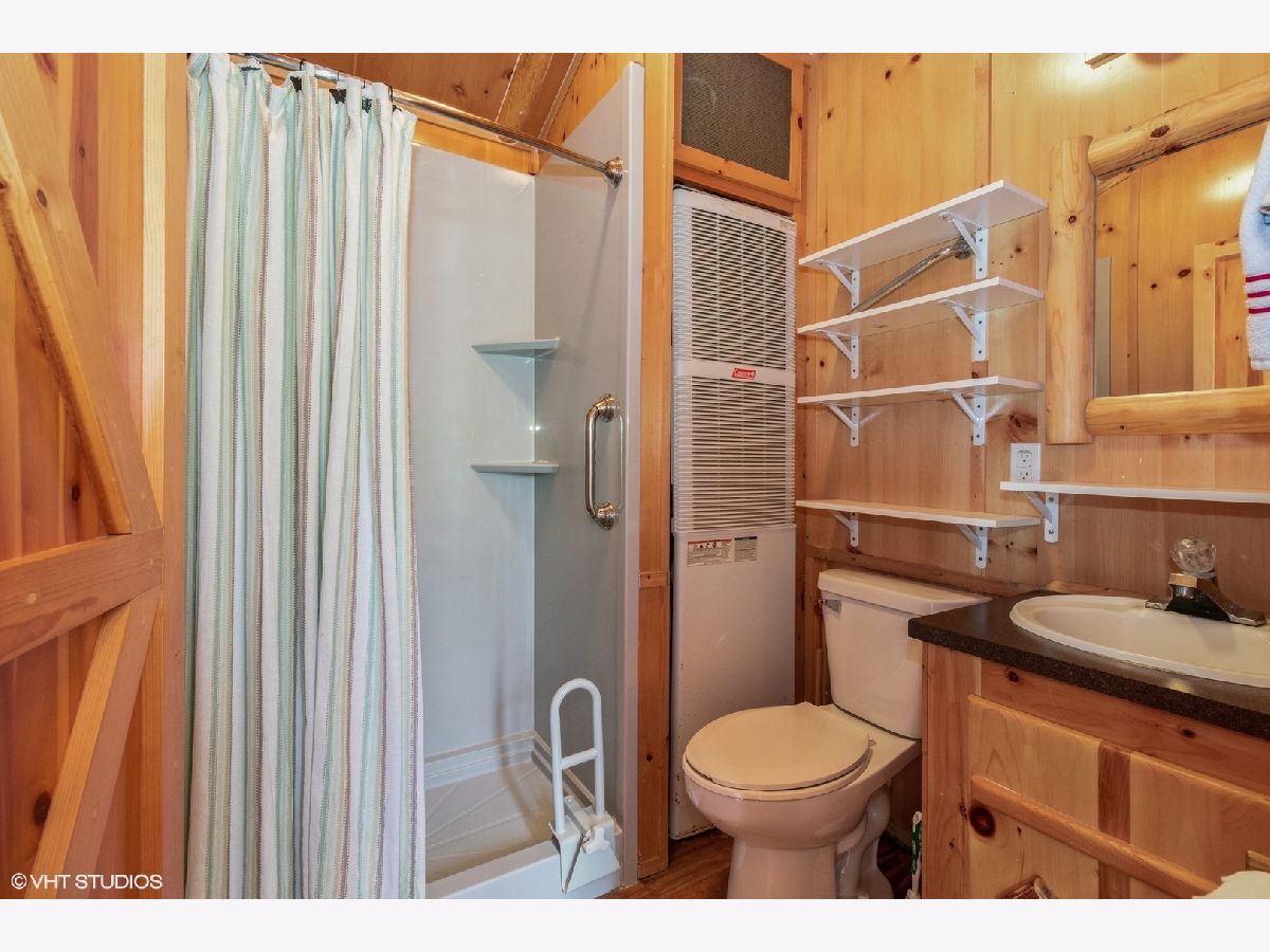 Enjoy all the amenities in Shadow Lakes with its beach, pool and Amenity Center. Shadow lakes is an established gated community. This home is located on the water, with its own boat dock. Whether year round or a "get away retreat" this home is cozy. Located on a water way leading to one of the two lakes in Shadow Lakes. Water access year round. (Ice fishing and ice skating). Enjoy the solitude in your own little bungalow or add the year round activities, at the local community center, to your calendar. Home is full of characteristic log cabin design and cathedral ceilings. Beautiful wood work throughout. Bedroom has barn door slider and the bathroom door is a swing door. Will come fully furnished, nothing to but move right in! Outdoors consist of a full deck with covered, screened in gazebo. Side yard is fenced. Entry way leading to water, this is the place to fish, swim, or boat, where it can reach 20 feet deep in some areas. (BIG FISH POSSIBILITIES!) Large shed for storing those 2 & 4 wheeled toys. Kitchen appliances stay. Please call Shadow Lakes for all Association details. Annual dues are based on a tiered scale.