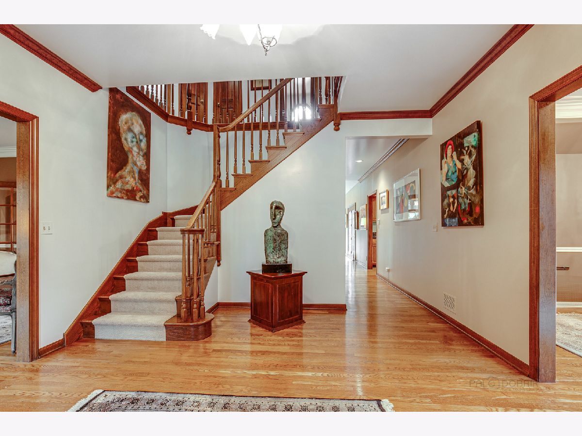 Beautiful and stately, this classic brick and cedar Georgian is located in the highly sought after Onwentsia Gardens subdivision of Lake Forest. The spacious foyer welcomes you in to this gracious home. The 1st floor features 9 ft ceilings, crown molding and hardwood floors throughout. The foyer is flanked by the dining room perfect for entertaining and the elegant living room has a warm fireplace w/marble surround. French doors separate the living room from the adjacent private study which could serve as a perfect home office. The spacious kitchen includes a large center island and an abundance of cabinetry. The huge sun lit eating area has a full view door with access to the brick paver patio overlooking the beautiful yard and conservancy area beyond. The magnificent family room has vaulted ceiling, floor to ceiling brick fireplace, pass-thru to separate wet bar area and numerous windows and French doors out to the patio. A 1st floor laundry room, powder room, walk-in coat closet and access to the three car garage can be found just off the kitchen. There is also the convenience of a 1st floor full bath. Upstairs the enormous primary suite has plenty of room for a separate sitting area or additional home office space, an 18' walk in closet and private bath w/double vanities, separate shower and soaking tub. Three additional bedrooms all with ample closet space, and large hall bath complete the 2nd level. A truly special one owner home with great curb appeal and fabulous yard.