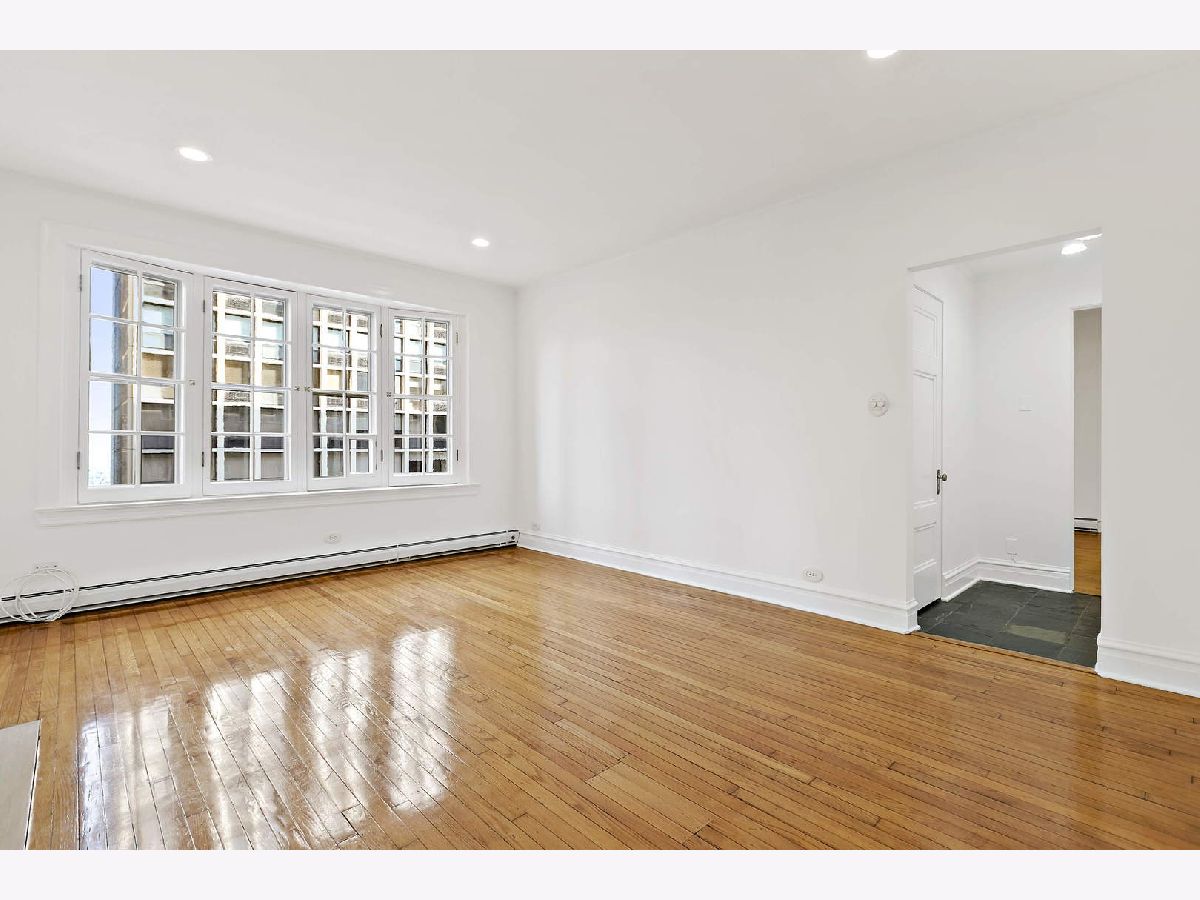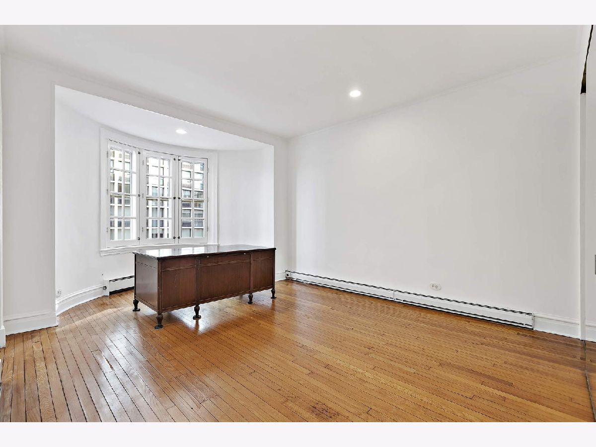 A London flat in the middle of Chicago's historic Gold Coast four walking-minutes from the beach. Charming, French-paned bay windows -- in both the living room and oversized bedroom -- feature shimmering views of Lake Michigan, Navy Pier and North Avenue Beach -- and the much-admired mansions on Stone Street. Plus exceptionally low HOAs for the area. Lovely pre-war details include wood-burning fireplace, 9'3" ceilings, hardwood floors and original mouldings. Substantial thick walls ensure a quiet refuge. Excellent closet space as well as large walk-in closet in the foyer. Relax or entertain in the award-winning landscaped courtyard. Well-maintained boutique European-like building with long-time onsite husband-and wife engineer team. Nearby garage options and available permit street parking; super close to transportation -- and everything Chicago has to offer. Windows are relatively new with complete storms and screens in immaculate condition. Also comes with general storage locker and a much-coveted wood storage space. No dog-weight limit. Currently no rental restrictions but discussions are under way. Easy to show. Tour this while it's still available. Must be seen in person to appreciate (watch the moon over Navy Pier from your bed and the sunrise the next morning).