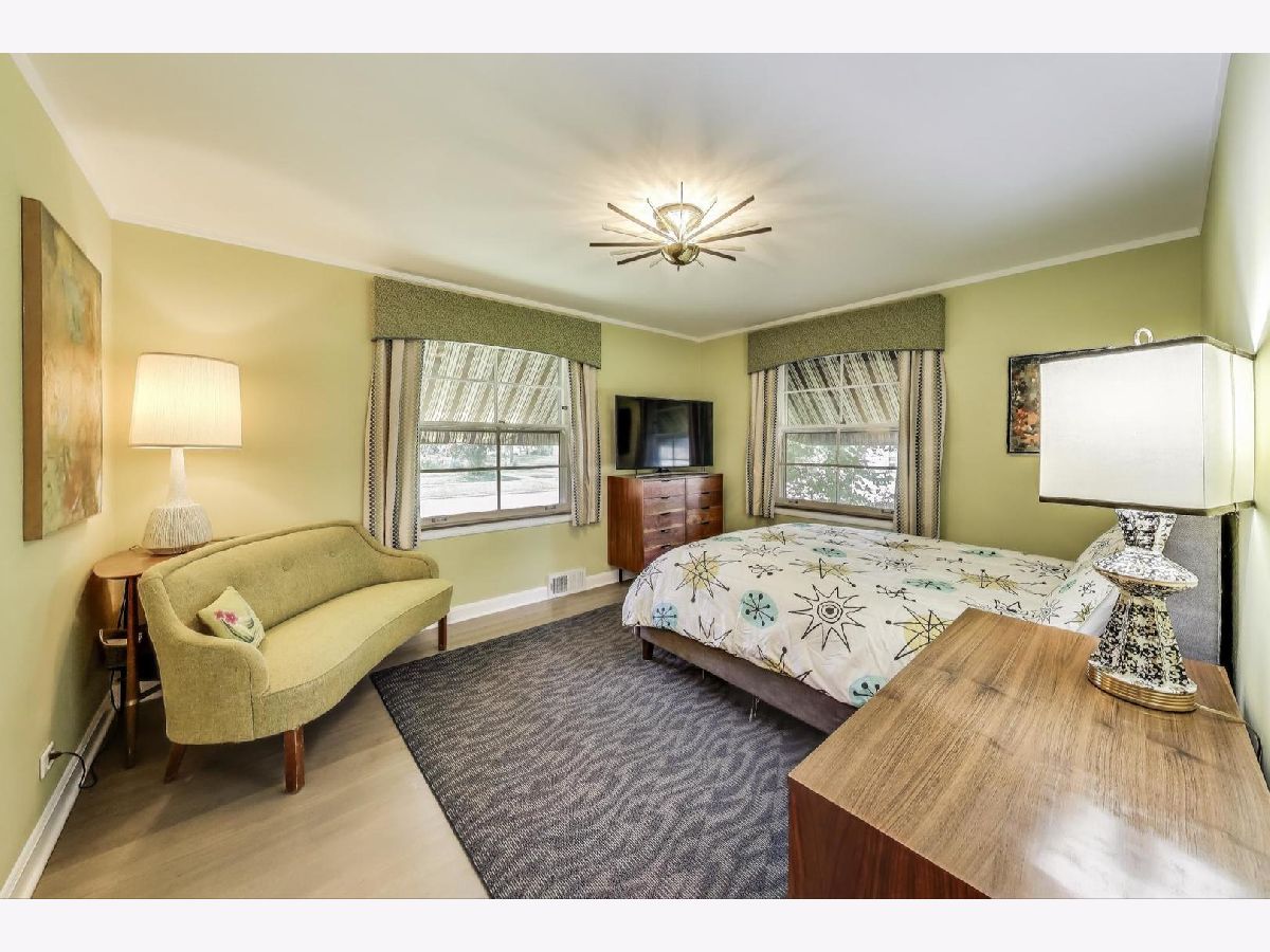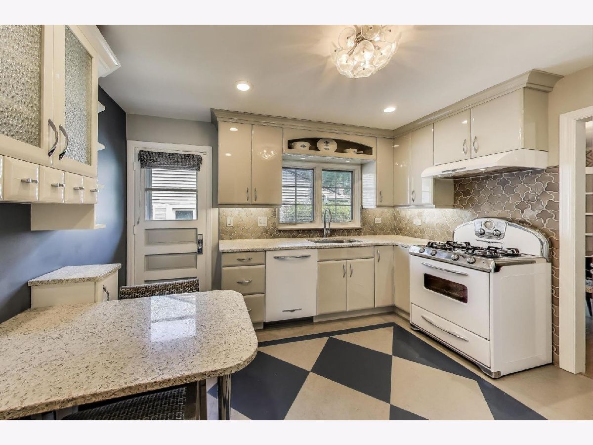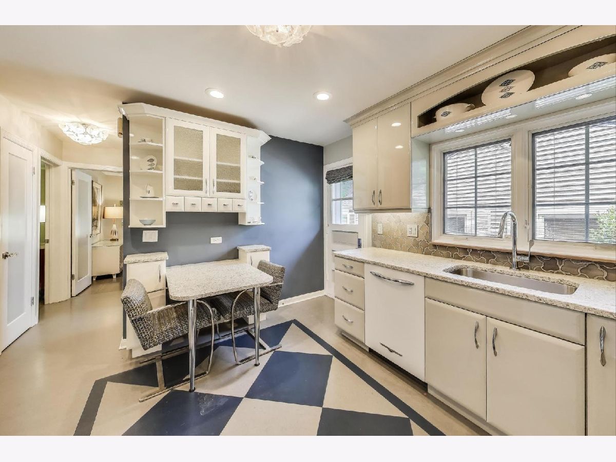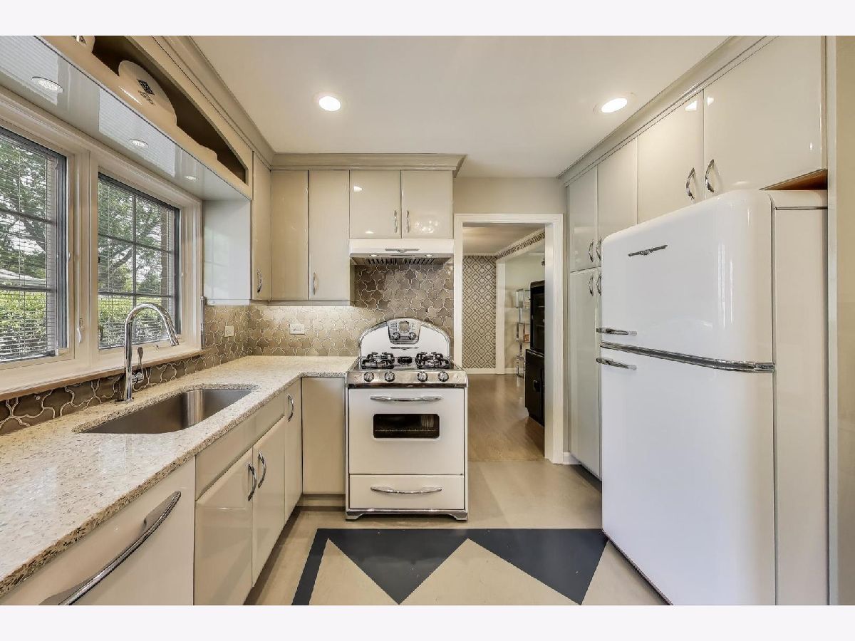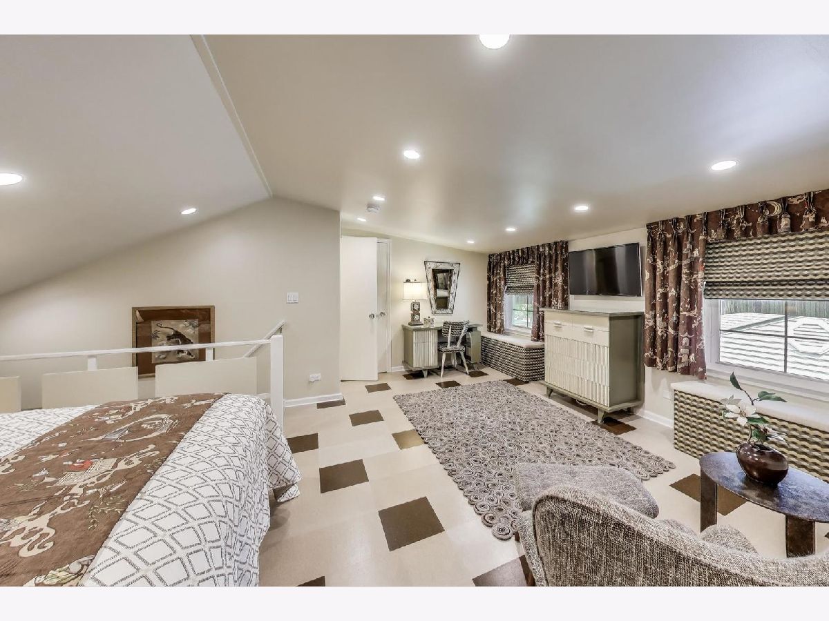 An exceptional opportunity awaits in this Mid-Century Gem in the desirable Triangle neighborhood of Mount Prospect. Every inch of this one-of-a-kind, meticulously upgraded 3-bedroom, 3-bathroom home reflects the seller's extraordinary attention to detail and investment in quality. On the main level, you'll find two well-sized bedrooms, a light-filled living room, and a spacious dining area. The thoughtfully designed layout also includes a beautifully finished breezeway that connects to the showstopping garage. The kitchen is a true statement piece. A nostalgic nod to the 1950s, complete with custom appliances from Elmira Stove Works, frameless cabinetry, recycled glass countertops, Marmoleum flooring, touchless under-cabinet lighting, and Murano glass and chrome fixtures. The first-floor bathroom continues the mid-century flair with a floating vanity, handmade tiles, and a hand-painted cement tile floor. The upper level (completed in 2017) is dedicated entirely to a private primary suite, featuring its own HVAC system, a spacious walk-in closet, an elegant full bathroom, walk-in attic storage and custom upholstered built-in window storage. The lower level, remodeled in 2018, includes a large family room with porcelain terrazzo-style tiles from Spain (same tile throughout lower level including furnace room), mid-century modern style wood and cast iron art installations, recessed lighting, surround sound, a stylish full bathroom, and impressive storage throughout. Every feature of this home was thoughtfully selected, including custom window treatments, designer hardware and lighting, professionally organized closets, and hardwood floor-matched window sills. The breezeway, renovated in 2019, offers hand-painted cement tile flooring and baseboard heating, with direct access to the garage, front courtyard, backyard, and main home. The oversized 2.5-car garage is fully drywalled, painted, and climate-controlled with a mini-split system. It also features an epoxy floor, ceiling fans, utility shelving, and a brand-new door. Ideal as a workspace or an entertaining extension of the home. Outside, enjoy a professionally installed irrigation system, gutter guards, brick paver patio front courtyard, a retractable Sunbrella awning over brick paver patio, a high-end Tuff Shed for storage, and a fully replaced sewer line (house to sidewalk) in 2014. This home is a rare blend of smart functionality, timeless character, and modern upgrades perfectly suited for its next owner who values craftsmanship and comfort. Amazing location close to all that bustling downtown Mount Prospect has to offer with shopping, restaurants, library, Metra, festivals/events and much more to come!