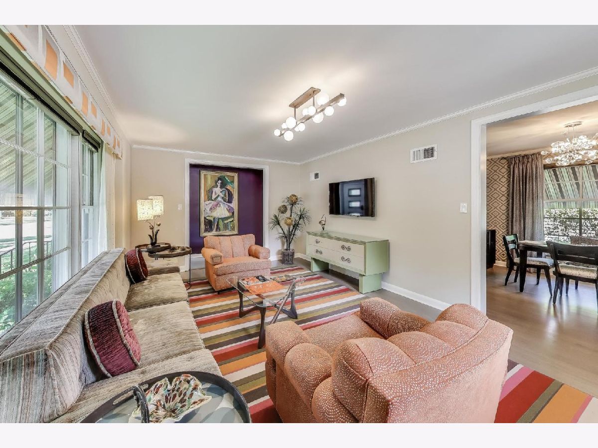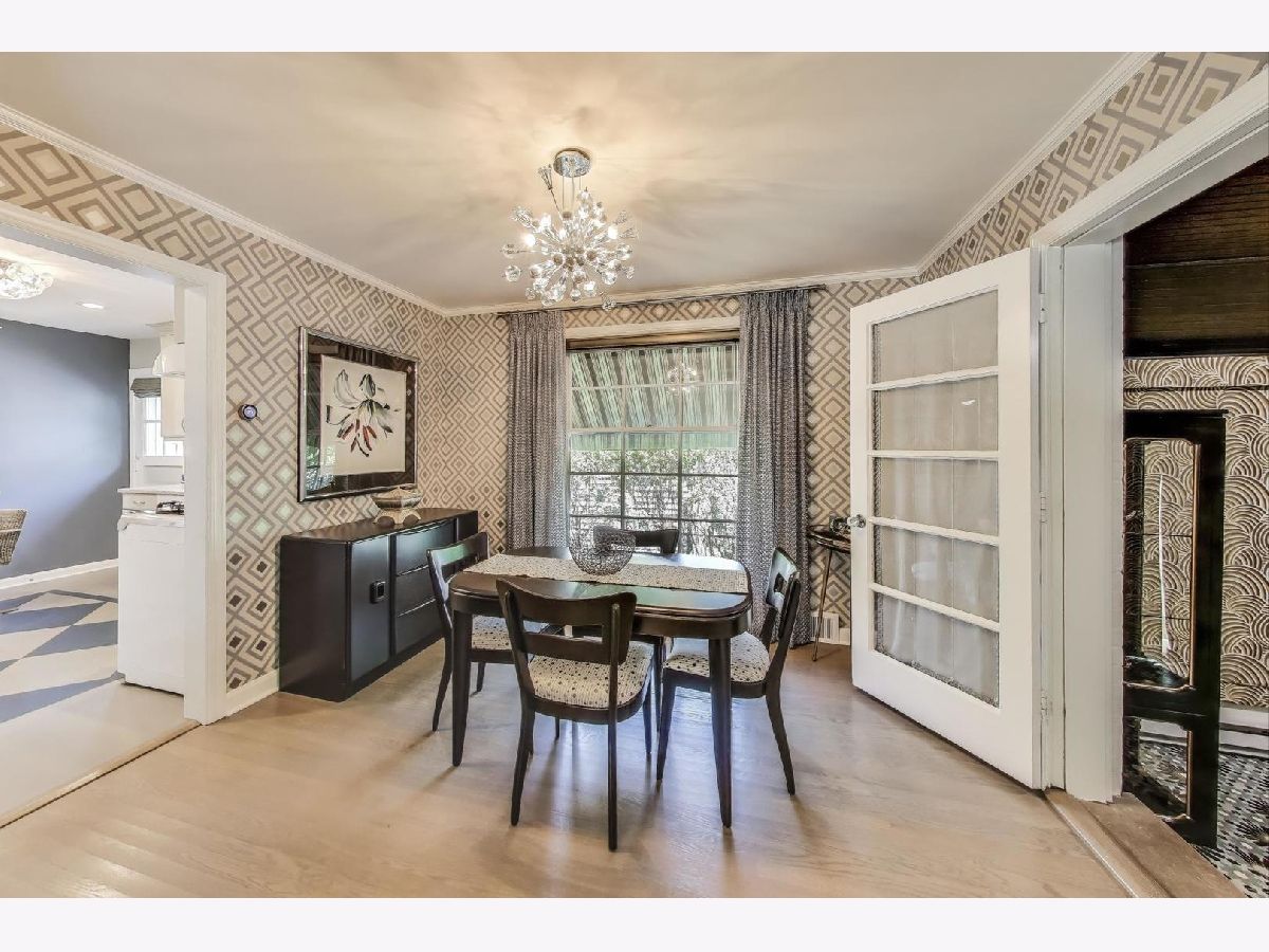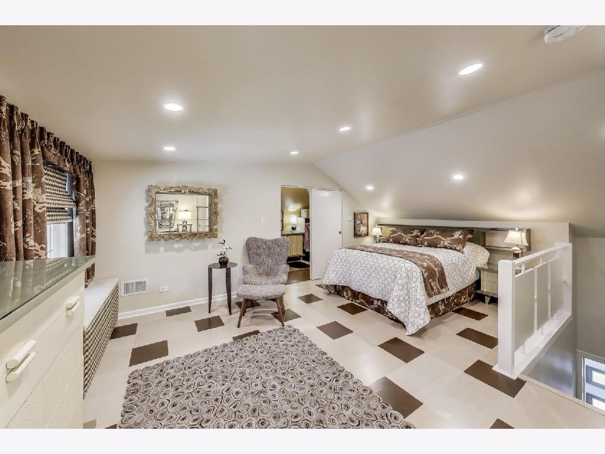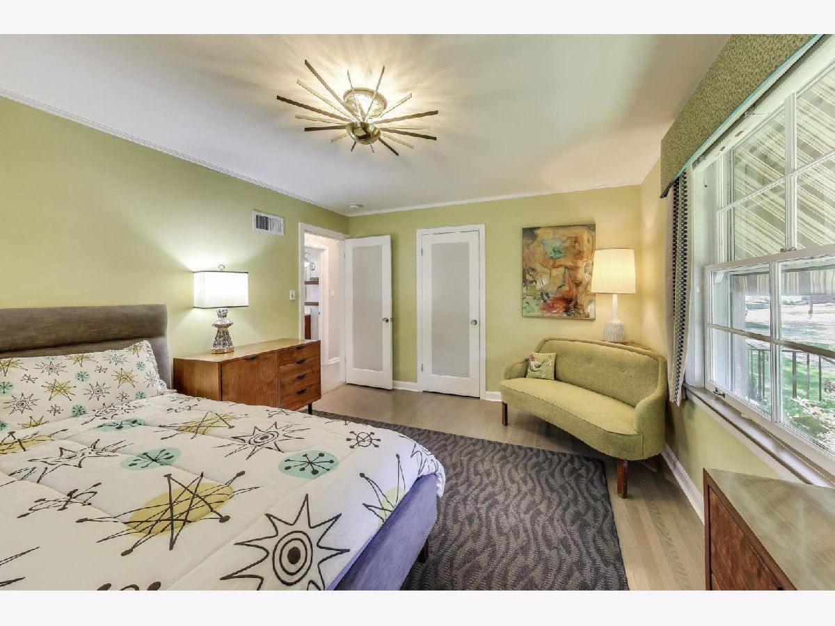 An exceptional opportunity awaits in this Mid-Century Gem in the desirable Triangle neighborhood of Mount Prospect. Every inch of this one-of-a-kind, meticulously upgraded 3-bedroom, 3-bathroom home reflects the seller's extraordinary attention to detail and investment in quality. On the main level, you'll find two well-sized bedrooms, a light-filled living room, and a spacious dining area. The thoughtfully designed layout also includes a beautifully finished breezeway that connects to the showstopping garage. The kitchen is a true statement piece. A nostalgic nod to the 1950s, complete with custom appliances from Elmira Stove Works, frameless cabinetry, recycled glass countertops, Marmoleum flooring, touchless under-cabinet lighting, and Murano glass and chrome fixtures. The first-floor bathroom continues the mid-century flair with a floating vanity, handmade tiles, and a hand-painted cement tile floor. The upper level (completed in 2017) is dedicated entirely to a private primary suite, featuring its own HVAC system, a spacious walk-in closet, an elegant full bathroom, walk-in attic storage and custom upholstered built-in window storage. The lower level, remodeled in 2018, includes a large family room with porcelain terrazzo-style tiles from Spain (same tile throughout lower level including furnace room), mid-century modern style wood and cast iron art installations, recessed lighting, surround sound, a stylish full bathroom, and impressive storage throughout. Every feature of this home was thoughtfully selected, including custom window treatments, designer hardware and lighting, professionally organized closets, and hardwood floor-matched window sills. The breezeway, renovated in 2019, offers hand-painted cement tile flooring and baseboard heating, with direct access to the garage, front courtyard, backyard, and main home. The oversized 2.5-car garage is fully drywalled, painted, and climate-controlled with a mini-split system. It also features an epoxy floor, ceiling fans, utility shelving, and a brand-new door. Ideal as a workspace or an entertaining extension of the home. Outside, enjoy a professionally installed irrigation system, gutter guards, brick paver patio front courtyard, a retractable Sunbrella awning over brick paver patio, a high-end Tuff Shed for storage, and a fully replaced sewer line (house to sidewalk) in 2014. This home is a rare blend of smart functionality, timeless character, and modern upgrades perfectly suited for its next owner who values craftsmanship and comfort. Amazing location close to all that bustling downtown Mount Prospect has to offer with shopping, restaurants, library, Metra, festivals/events and much more to come!