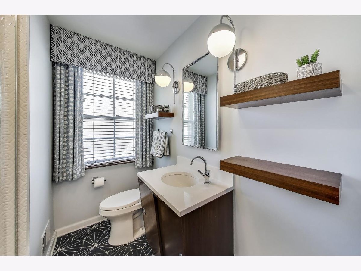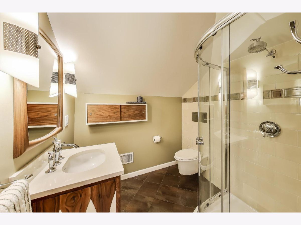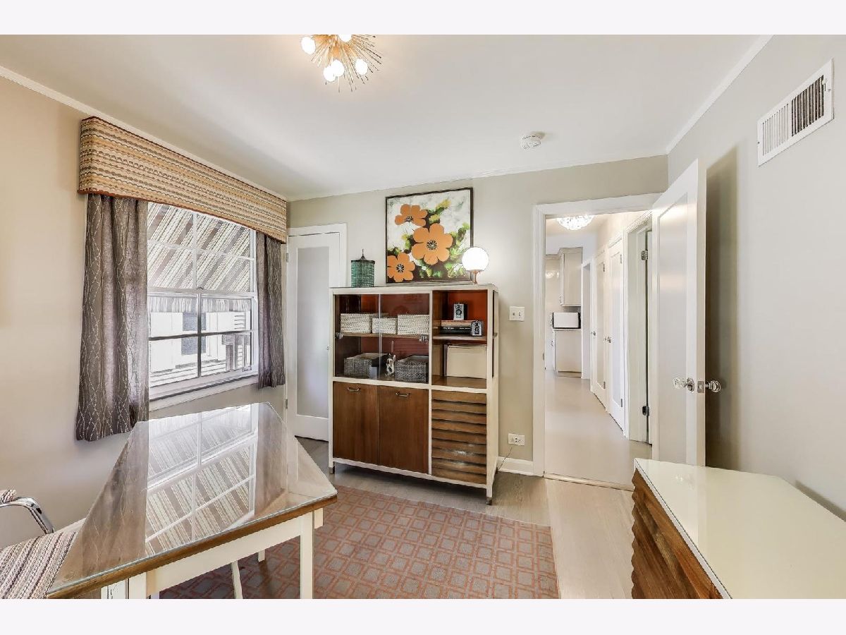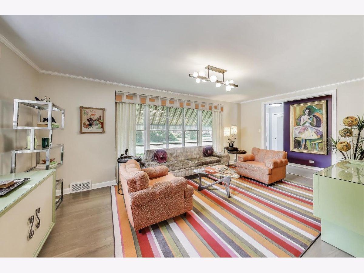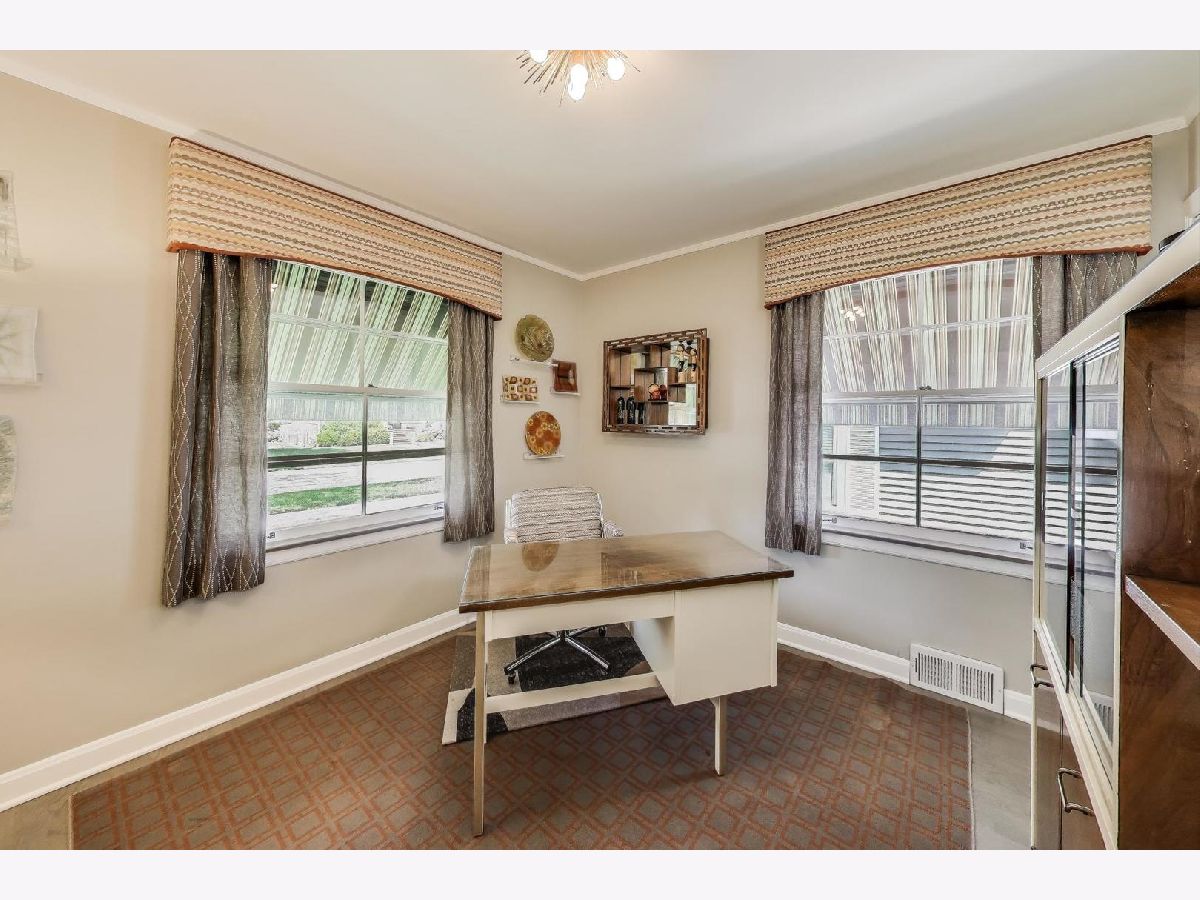 An exceptional opportunity awaits in this Mid-Century Gem in the desirable Triangle neighborhood of Mount Prospect. Every inch of this one-of-a-kind, meticulously upgraded 3-bedroom, 3-bathroom home reflects the seller's extraordinary attention to detail and investment in quality. On the main level, you'll find two well-sized bedrooms, a light-filled living room, and a spacious dining area. The thoughtfully designed layout also includes a beautifully finished breezeway that connects to the showstopping garage. The kitchen is a true statement piece. A nostalgic nod to the 1950s, complete with custom appliances from Elmira Stove Works, frameless cabinetry, recycled glass countertops, Marmoleum flooring, touchless under-cabinet lighting, and Murano glass and chrome fixtures. The first-floor bathroom continues the mid-century flair with a floating vanity, handmade tiles, and a hand-painted cement tile floor. The upper level (completed in 2017) is dedicated entirely to a private primary suite, featuring its own HVAC system, a spacious walk-in closet, an elegant full bathroom, walk-in attic storage and custom upholstered built-in window storage. The lower level, remodeled in 2018, includes a large family room with porcelain terrazzo-style tiles from Spain (same tile throughout lower level including furnace room), mid-century modern style wood and cast iron art installations, recessed lighting, surround sound, a stylish full bathroom, and impressive storage throughout. Every feature of this home was thoughtfully selected, including custom window treatments, designer hardware and lighting, professionally organized closets, and hardwood floor-matched window sills. The breezeway, renovated in 2019, offers hand-painted cement tile flooring and baseboard heating, with direct access to the garage, front courtyard, backyard, and main home. The oversized 2.5-car garage is fully drywalled, painted, and climate-controlled with a mini-split system. It also features an epoxy floor, ceiling fans, utility shelving, and a brand-new door. Ideal as a workspace or an entertaining extension of the home. Outside, enjoy a professionally installed irrigation system, gutter guards, brick paver patio front courtyard, a retractable Sunbrella awning over brick paver patio, a high-end Tuff Shed for storage, and a fully replaced sewer line (house to sidewalk) in 2014. This home is a rare blend of smart functionality, timeless character, and modern upgrades perfectly suited for its next owner who values craftsmanship and comfort. Amazing location close to all that bustling downtown Mount Prospect has to offer with shopping, restaurants, library, Metra, festivals/events and much more to come!