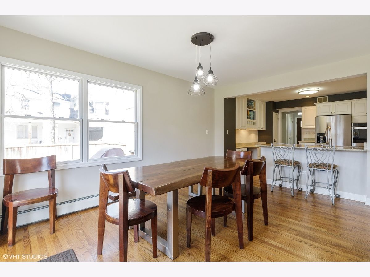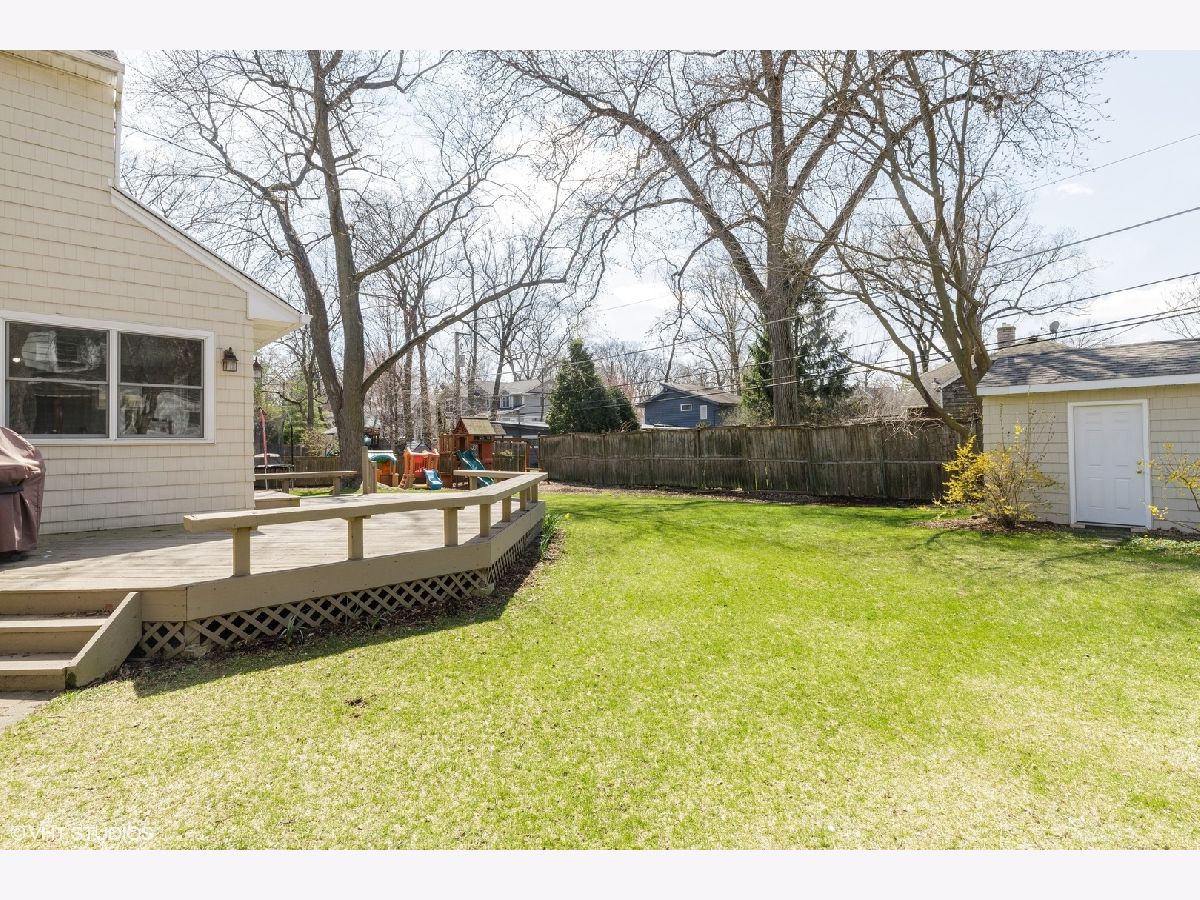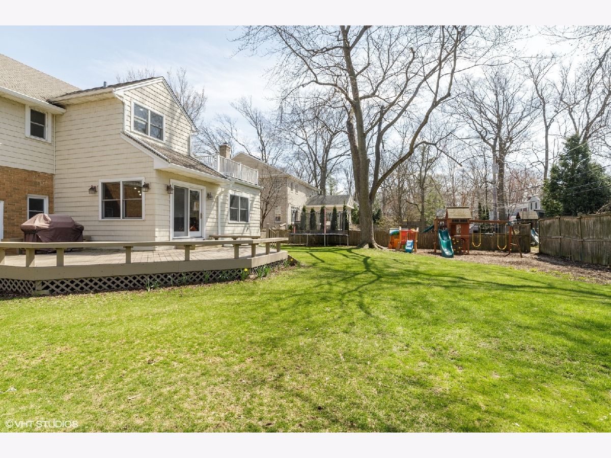 Virtual tour link in the details section. Charm and character abound on Juniper road in this pristine colonial in New Trier school district. A classic brick paver walkway leads up to the home and into the foyer with a guest coat closet. The spacious front living room features hardwood floors, gray painted walls, beautiful new windows, recessed lighting, and crown molding. The living room flows into the formal dining room also with hardwood floors, gray painted walls, and a pretty light fixture. The great open concept hub of the home includes the kitchen, breakfast area, and family room. Updated kitchen with white cabinets, granite countertops, all new stainless-steel appliances, a built-in desk area, and peninsula island opening to the breakfast area. The spacious breakfast area has hardwood floors, light fixture, and a set of glass doors out to the deck and fenced yard. The hardwood floors flow from the breakfast area into the family room with lots of windows for natural light in addition to recessed can lights. Completing the main level is a powder room with ceramic tile floor and a pedestal sink with brushed nickel faucet. A hardwood staircase leads to the second level of the home with four bedrooms and two full bathrooms. The first bedroom has hardwood floors, two windows for natural light, and two closets for storage. The second family bedroom has hardwood floors, gray painted walls, two windows, and a large closet. The third bedroom also has hardwood floors, a window for neutral light, and a closet. From the closet of the third bedroom there is a staircase to a floored attic. Conveniently located near these bedrooms is a full hall bathroom with gray 12x24 floors tiles, tub/shower with white subway tile surround, and a pedestal sink. The spacious master suite has hardwood floors, windows with blinds, and a large closet. The en-suite master bathroom features a corner tub, separate shower, and white vanity. Further expanding the living space is a finished basement with carpeted second family room with new windows. In addition, there is an office/fifth bedroom and a laundry room.