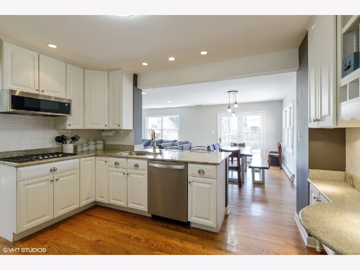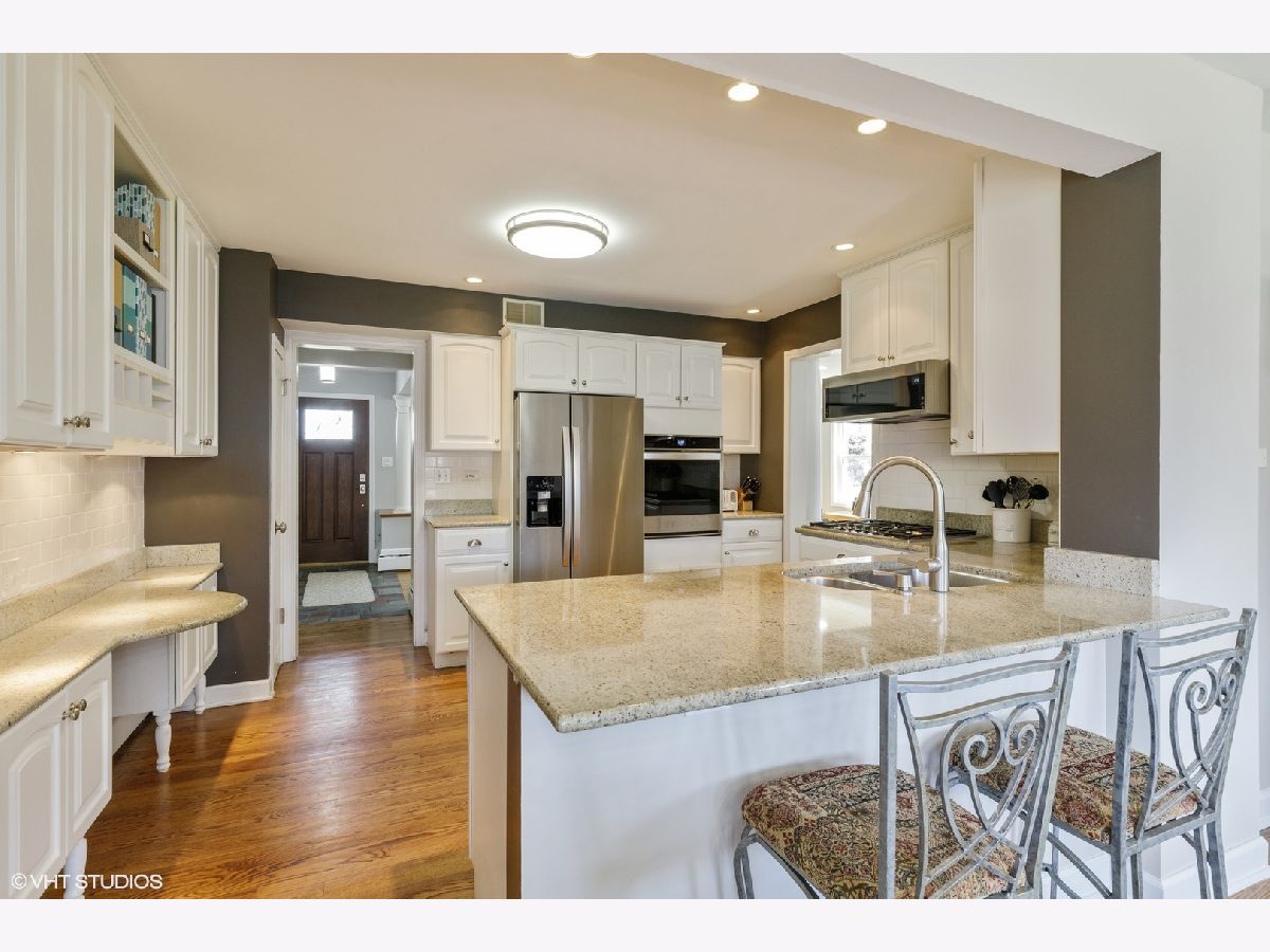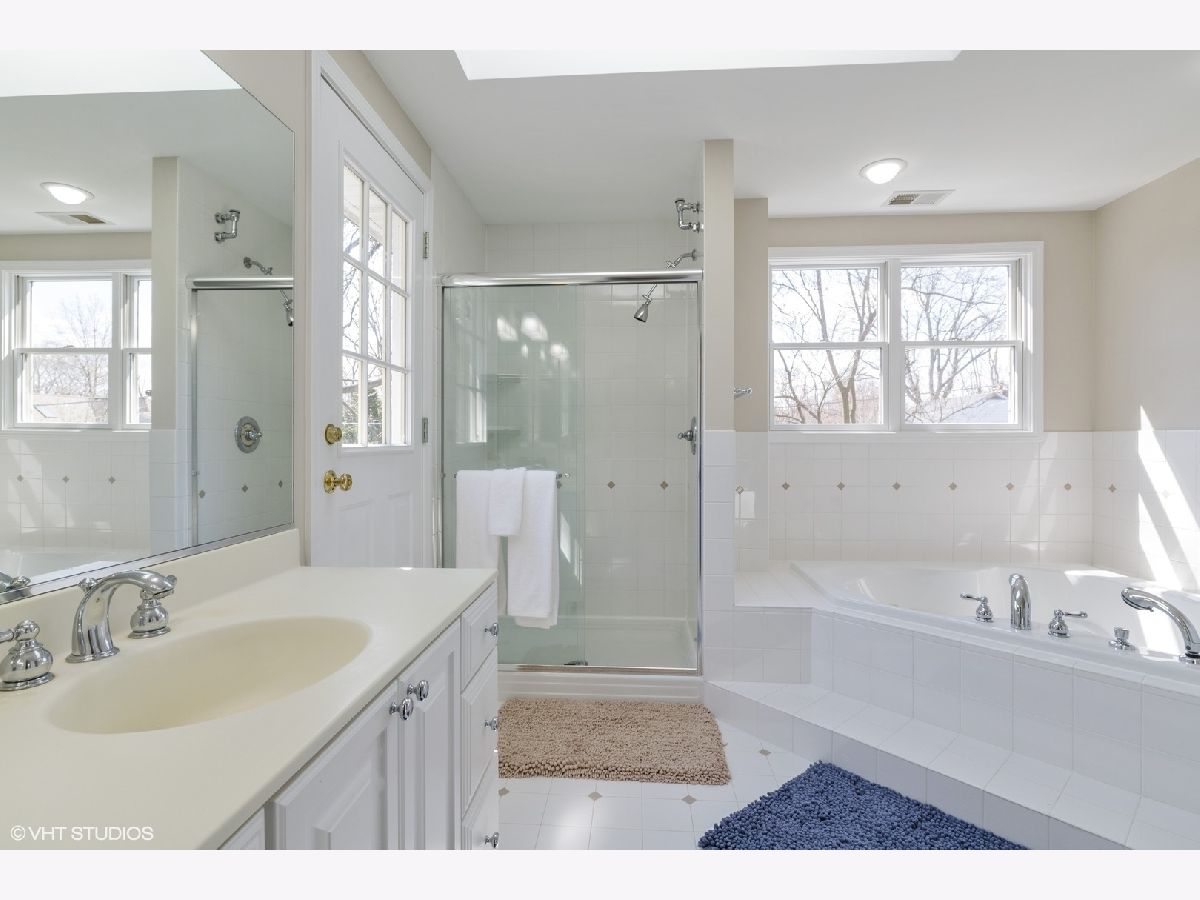 Virtual tour link in the details section. Charm and character abound on Juniper road in this pristine colonial in New Trier school district. A classic brick paver walkway leads up to the home and into the foyer with a guest coat closet. The spacious front living room features hardwood floors, gray painted walls, beautiful new windows, recessed lighting, and crown molding. The living room flows into the formal dining room also with hardwood floors, gray painted walls, and a pretty light fixture. The great open concept hub of the home includes the kitchen, breakfast area, and family room. Updated kitchen with white cabinets, granite countertops, all new stainless-steel appliances, a built-in desk area, and peninsula island opening to the breakfast area. The spacious breakfast area has hardwood floors, light fixture, and a set of glass doors out to the deck and fenced yard. The hardwood floors flow from the breakfast area into the family room with lots of windows for natural light in addition to recessed can lights. Completing the main level is a powder room with ceramic tile floor and a pedestal sink with brushed nickel faucet. A hardwood staircase leads to the second level of the home with four bedrooms and two full bathrooms. The first bedroom has hardwood floors, two windows for natural light, and two closets for storage. The second family bedroom has hardwood floors, gray painted walls, two windows, and a large closet. The third bedroom also has hardwood floors, a window for neutral light, and a closet. From the closet of the third bedroom there is a staircase to a floored attic. Conveniently located near these bedrooms is a full hall bathroom with gray 12x24 floors tiles, tub/shower with white subway tile surround, and a pedestal sink. The spacious master suite has hardwood floors, windows with blinds, and a large closet. The en-suite master bathroom features a corner tub, separate shower, and white vanity. Further expanding the living space is a finished basement with carpeted second family room with new windows. In addition, there is an office/fifth bedroom and a laundry room.