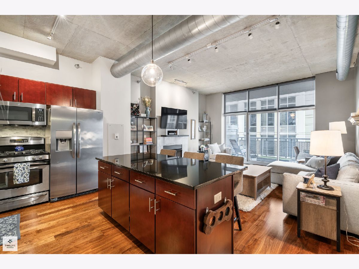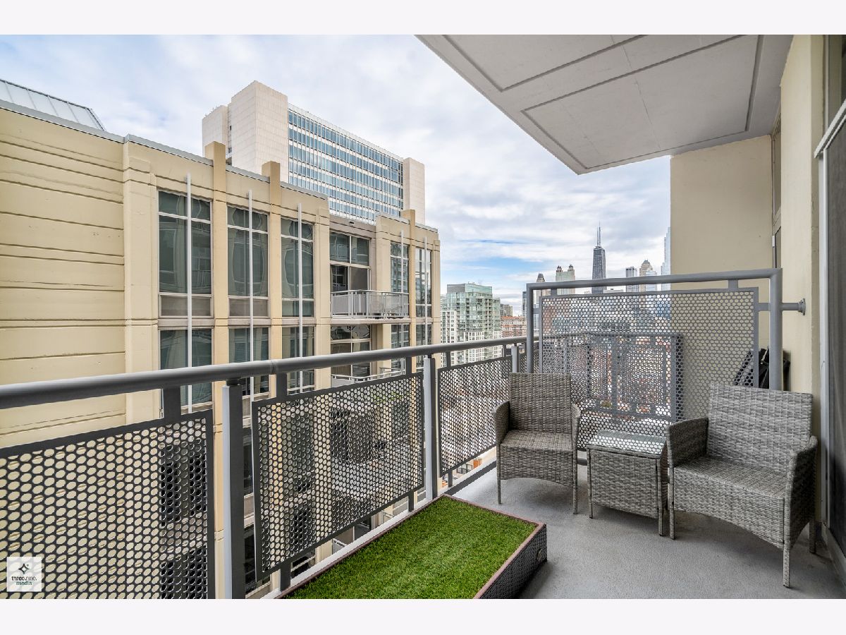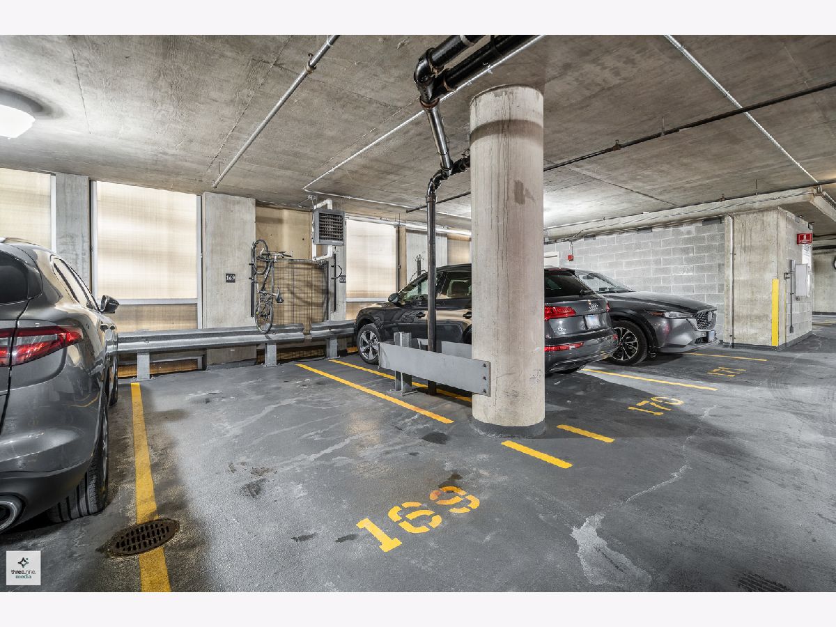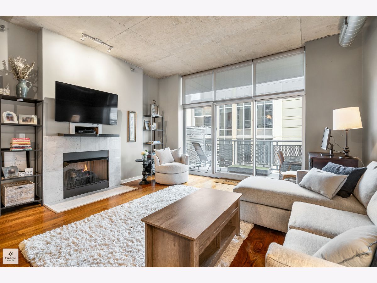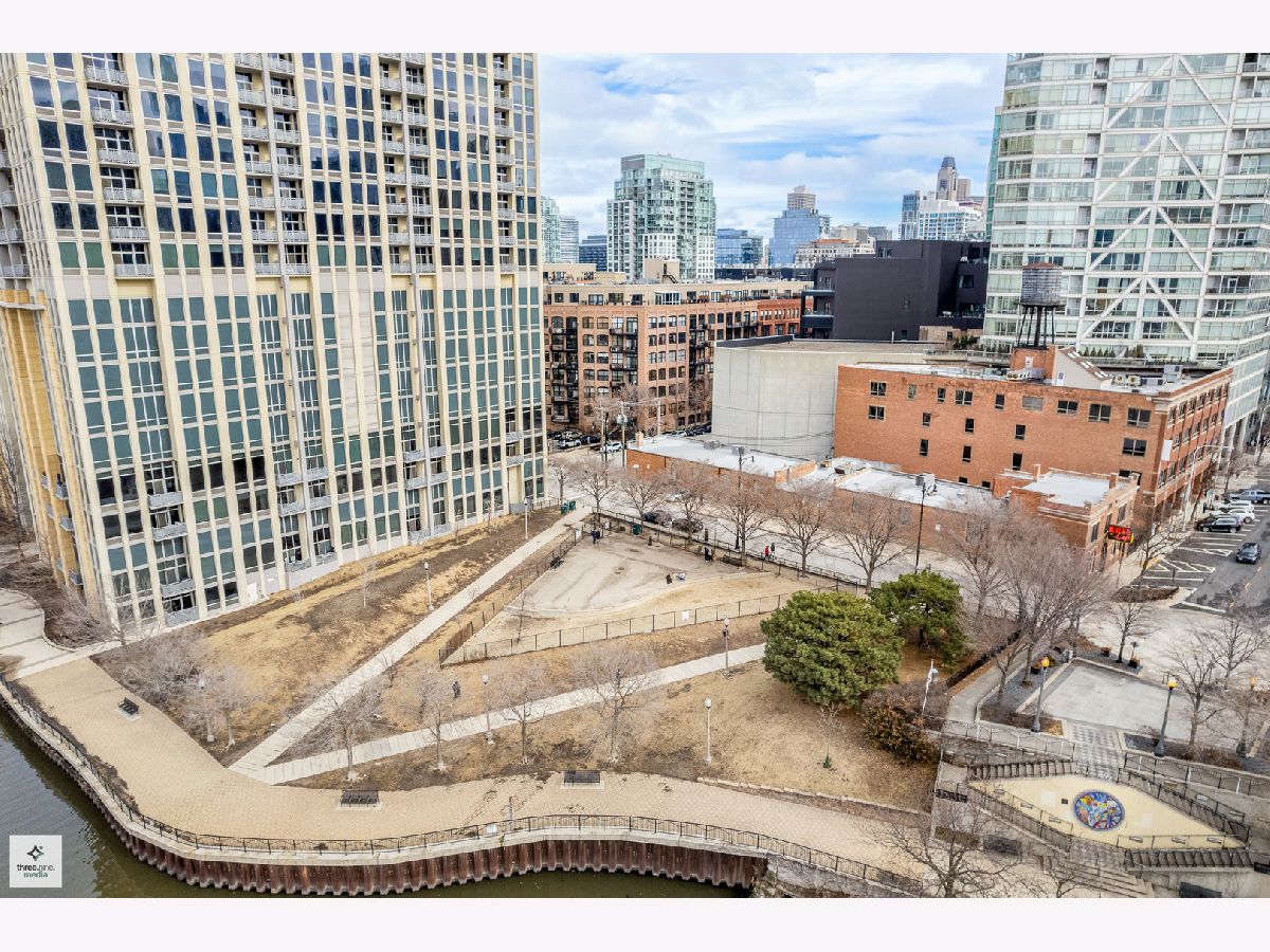 Nestled directly next to Montgomery Ward Park and the Dog Park, this North-facing gem in a highly sought-after building offers an abundance of natural light and breathtaking east and west views from an oversized balcony. Step inside to find a kitchen that's perfect for both cooking and entertaining. It boasts black granite, an oversized island with ample storage, and 36" cherry custom cabinetry. Stainless steel appliances and an in-unit washer/dryer complete the space. The living room features floor-to-ceiling windows, a glass sliding door to the balcony, and a Carrera marble fireplace-ideal for cozy nights in. The spacious bedroom is upgraded with new carpet and a custom closet to maximize storage. The sleek bathroom showcases Carrera marble countertops, black slate tile, Kohler and Moen fixtures, custom wallpaper, and stylish sconces. This dog-friendly building is just a short walk from Starbucks, the Brown Line (Chicago & Franklin), Whole Foods, the West Loop, Old Town, and everything River North has to offer. Parking & storage locker are included!