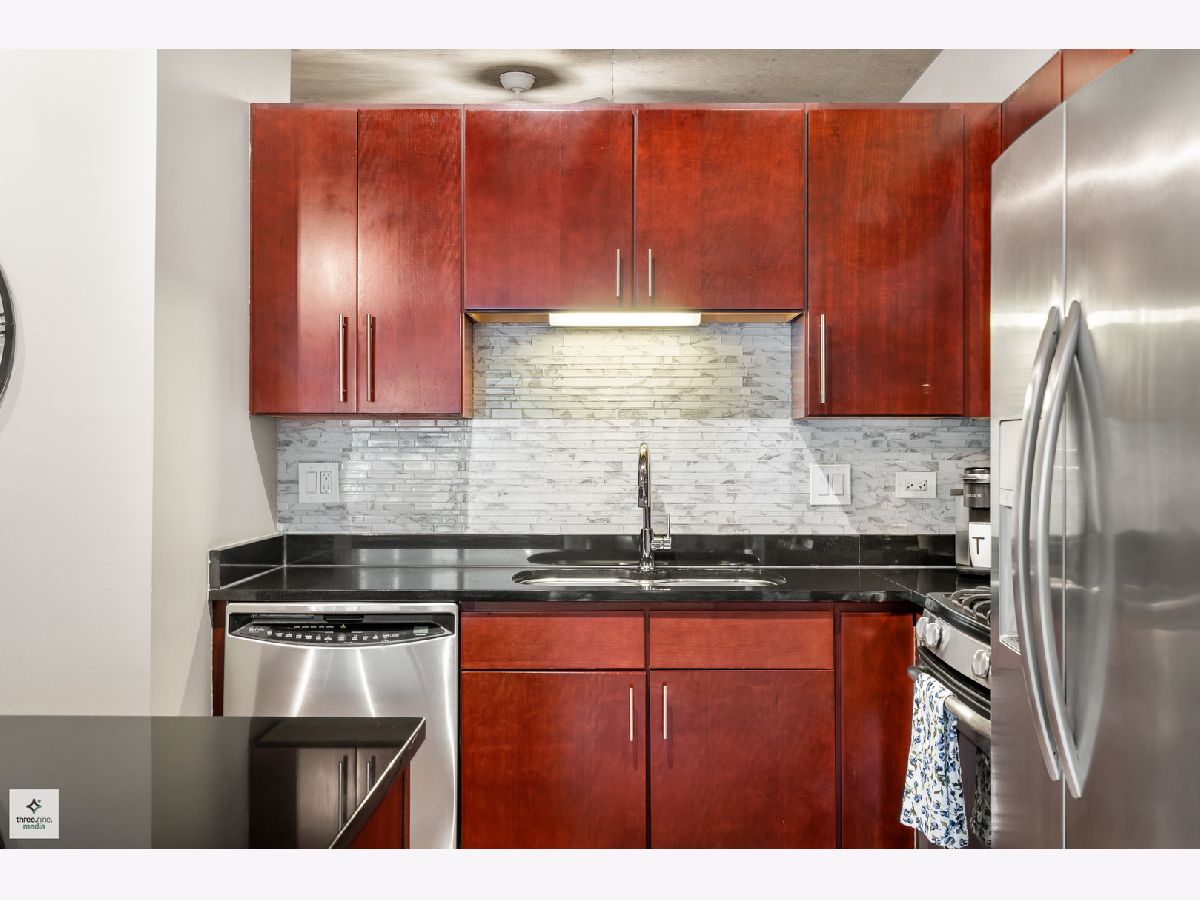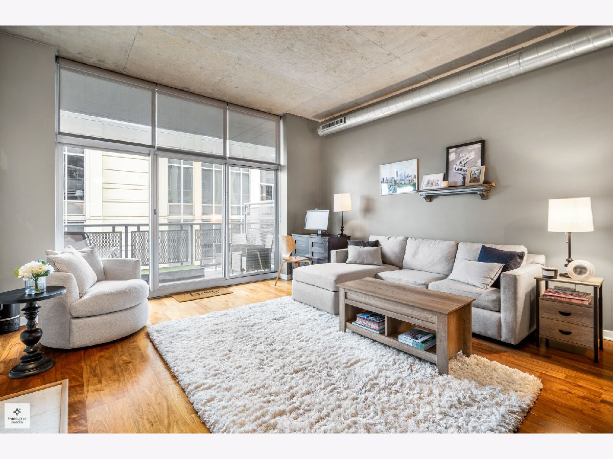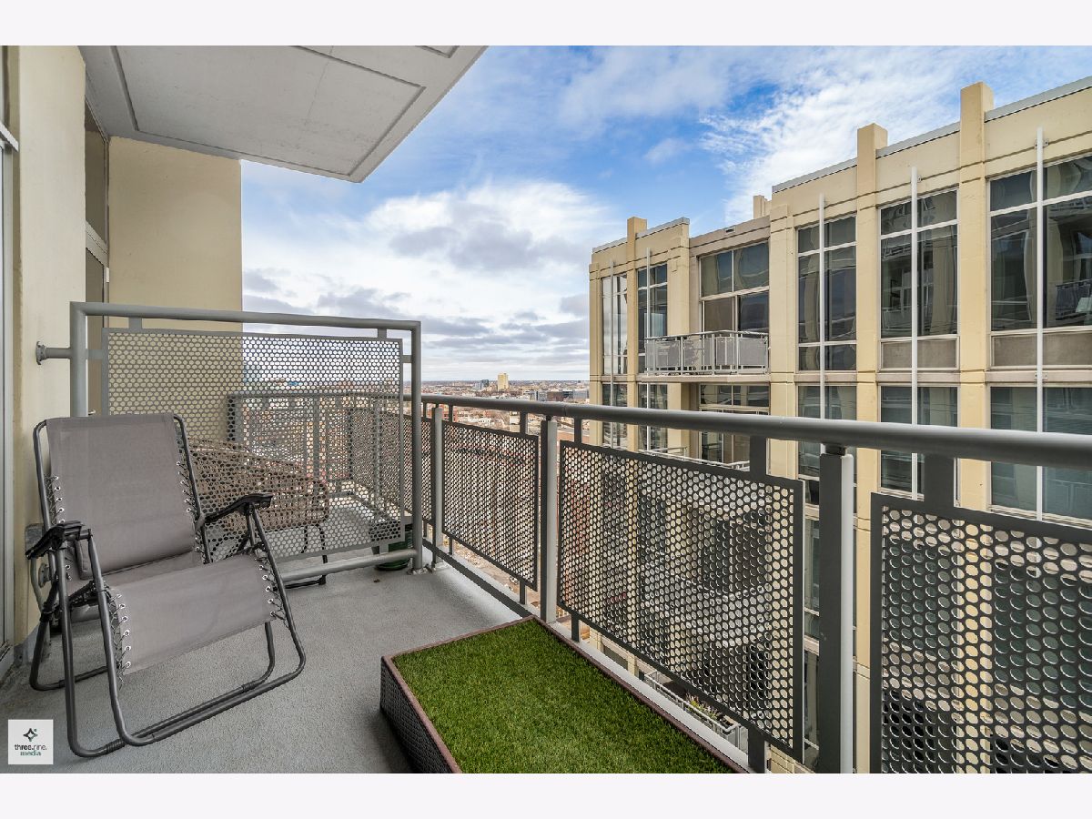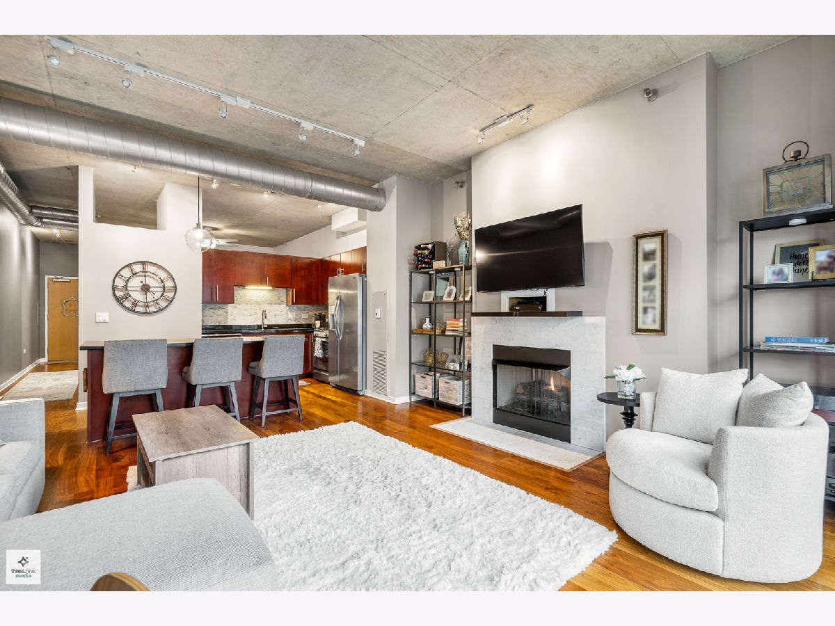Nestled directly next to Montgomery Ward Park and the Dog Park, this North-facing gem in a highly sought-after building offers an abundance of natural light and breathtaking east and west views from an oversized balcony. Step inside to find a kitchen that's perfect for both cooking and entertaining. It boasts black granite, an oversized island with ample storage, and 36" cherry custom cabinetry. Stainless steel appliances and an in-unit washer/dryer complete the space. The living room features floor-to-ceiling windows, a glass sliding door to the balcony, and a Carrera marble fireplace-ideal for cozy nights in. The spacious bedroom is upgraded with new carpet and a custom closet to maximize storage. The sleek bathroom showcases Carrera marble countertops, black slate tile, Kohler and Moen fixtures, custom wallpaper, and stylish sconces. This dog-friendly building is just a short walk from Starbucks, the Brown Line (Chicago & Franklin), Whole Foods, the West Loop, Old Town, and everything River North has to offer. Parking & storage locker are included!