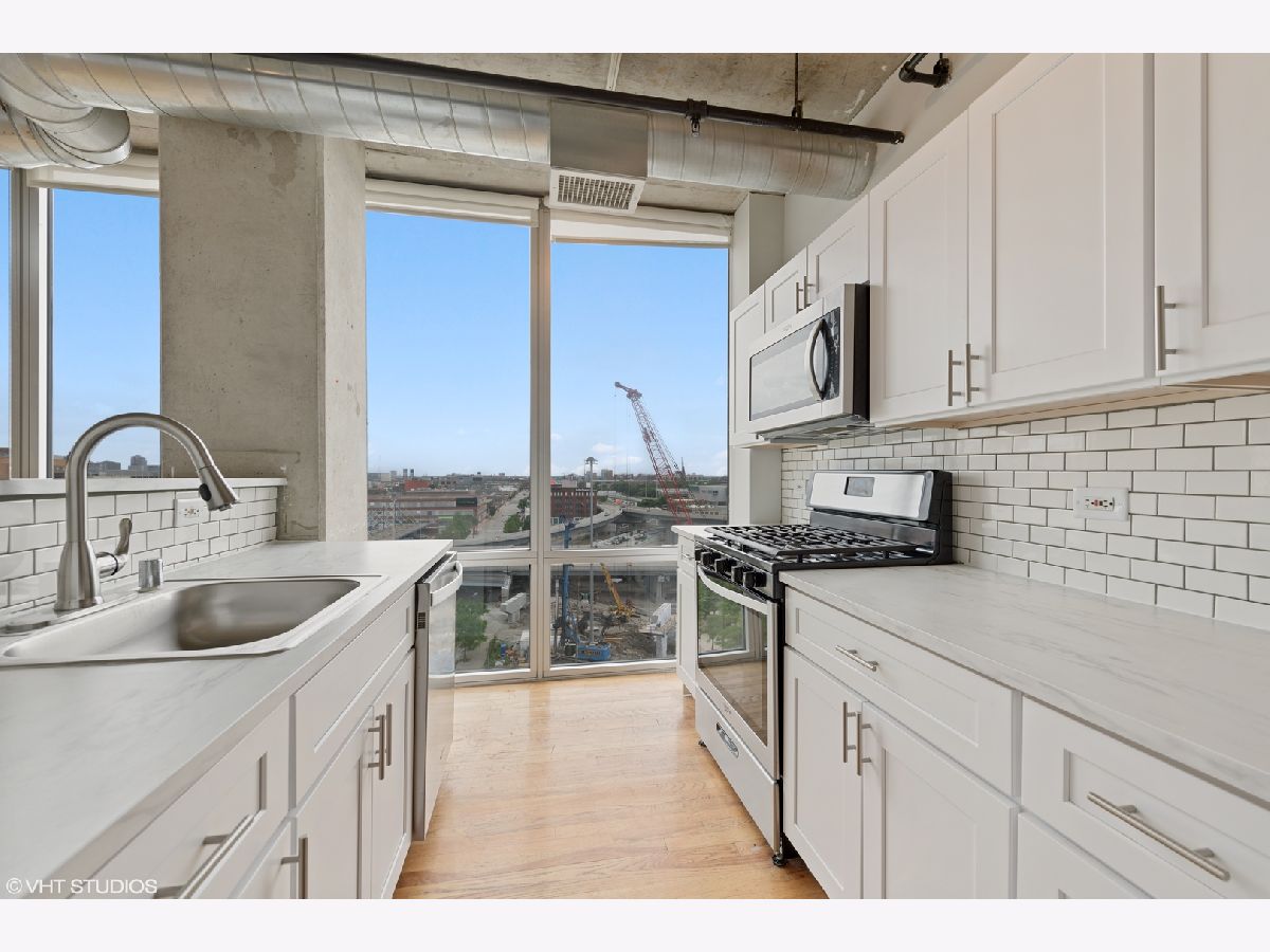 Incredibly bright corner unit with spectacular South & East views in the West Loop. This is an amazing 2 bed/ 2 bath newly updated unit with floor to ceiling windows. Fantastic open floor plan featuring a large balcony. Enjoy a completely updated kitchen with new cabinets, counter tops, and back splash as well as brand new stainless steel appliances. The bathrooms have been updated with new vanities and modern lighting. The unit has been freshly painted throughout and you can enjoy plush new carpet in both bedrooms. The master suite easily fits a king size bed, features a large built out closet and spacious bathroom. In unit washer dryer. Indoor heated parking space is included in the price. This building is incredibly close to all downtown conveniences. Quick access to the Loop, blocks from the Marianos and Whole Foods, easily walk to Greek Town, Randolph Street and Fulton Market as well as tons of additional nearby restaurants. Two blocks from the Clinton Blue line, minutes to UIC, Union Station, I-90, 290 and so much more.