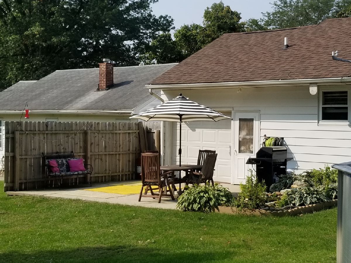 Nice 2 bedroom ranch home with full basement. New roof 2014. Remodeled bath 2018. Hot water heater 2019. Freshly painted throughout, including kitchen cabinets. Nicely done, wood burning fireplace in living room. Living room has wood floors. Big backyard with 18' above ground pool, 16x18 concrete patio, kids playset, 10x14 shed and koi pond. Radon system 2012. Pass thru attached garage.