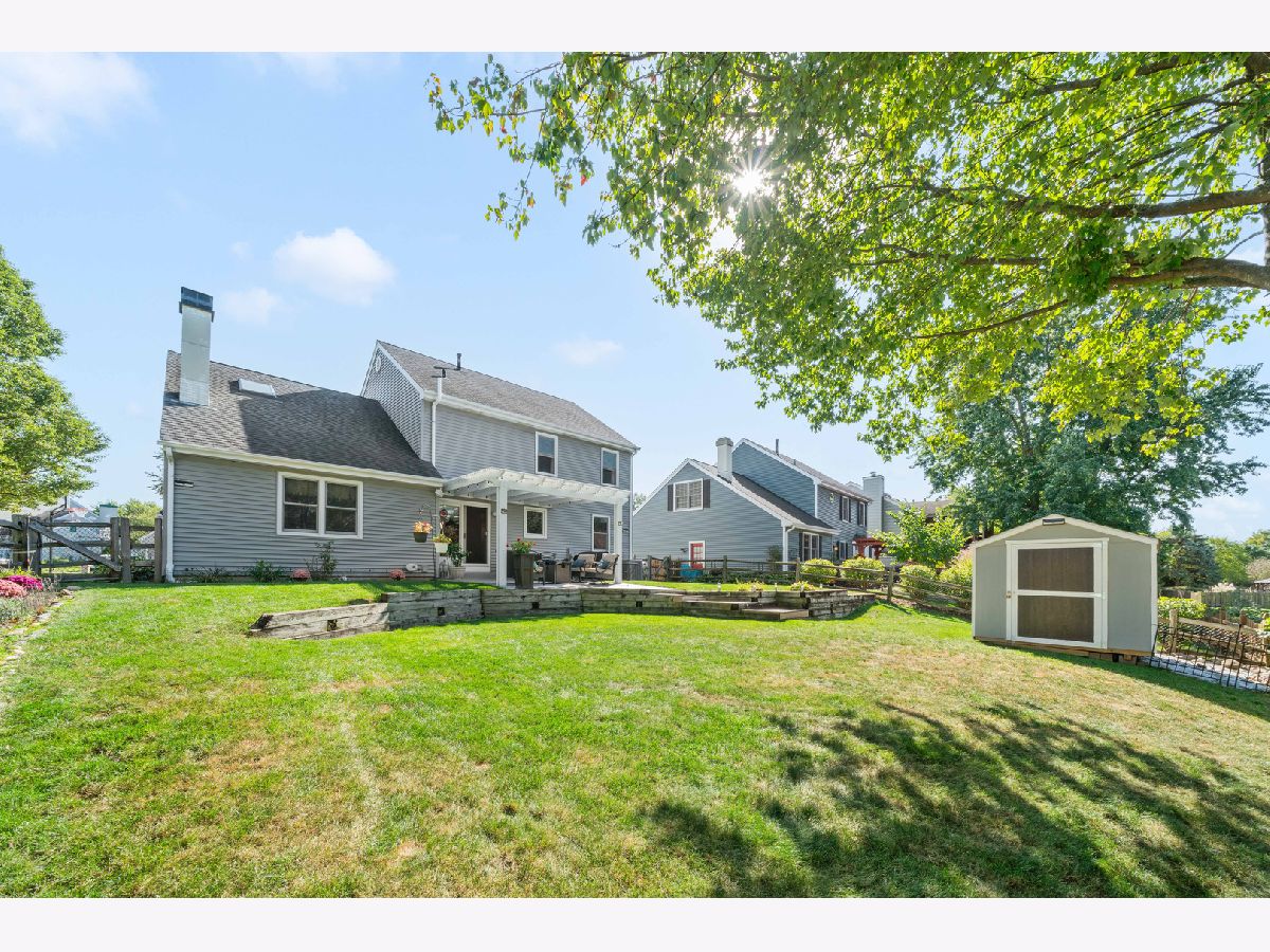 This beautiful home in the Fields of Geneva East offers an impressive blend of luxury and convenience. With 5 bedrooms and 3 1/2 bathrooms, the property provides ample space and is designed for comfort and entertaining. The main living area features an inviting open family room leading into a large, modern kitchen equipped with stunning silestone countertops, high-end stainless steel appliances including a Wolf range and Sub-Zero refrigerator, and a reverse osmosis system. Step outside to a fenced yard onto a 19x15 patio with a lighted pergola, perfect for outdoor relaxation, enhanced by built-in Bose speakers. The basement, recently renovated, offers a fantastic space for entertaining with a wet bar, full-sized refrigerator, and plenty of storage, along with a prime viewing area for game days. The full bathroom in the basement is a standout feature, boasting a waterfall design shower, porcelain flooring, and even a Bluetooth-enabled fan. Additional highlights of the home include a versatile fifth bedroom that can be used as an office or workout room, large load capacity Kenmore Elite washer and dryer, a massive concrete driveway that accommodates up to 8 cars (poured in 2020 and is envied by all neighbors), a new 8x12 shed (2022), and a new garage door (2018). The home also offers numerous functional upgrades like new ceiling fans, new ejector pit and floor drain, fresh paint, and extensive attic storage with built-up flooring, attic fans, extra insulation, and pull-down stairs. Located in the highly regarded Geneva School District, this home is conveniently close to downtown Geneva, Metra, Prairie Path, shopping, walking trails, and Moore Park with a splash pad. This is a must-see property in a desirable neighborhood with no HOA. Come out and take a look!