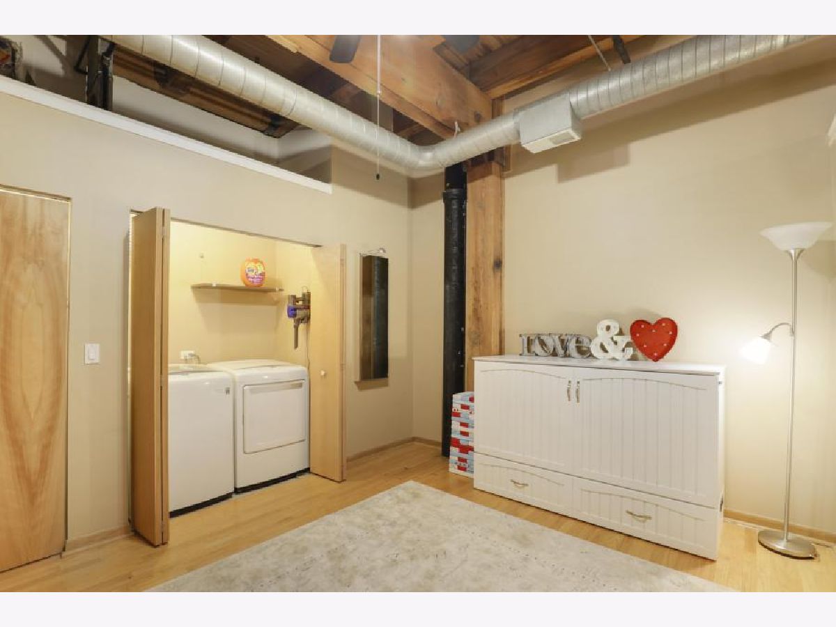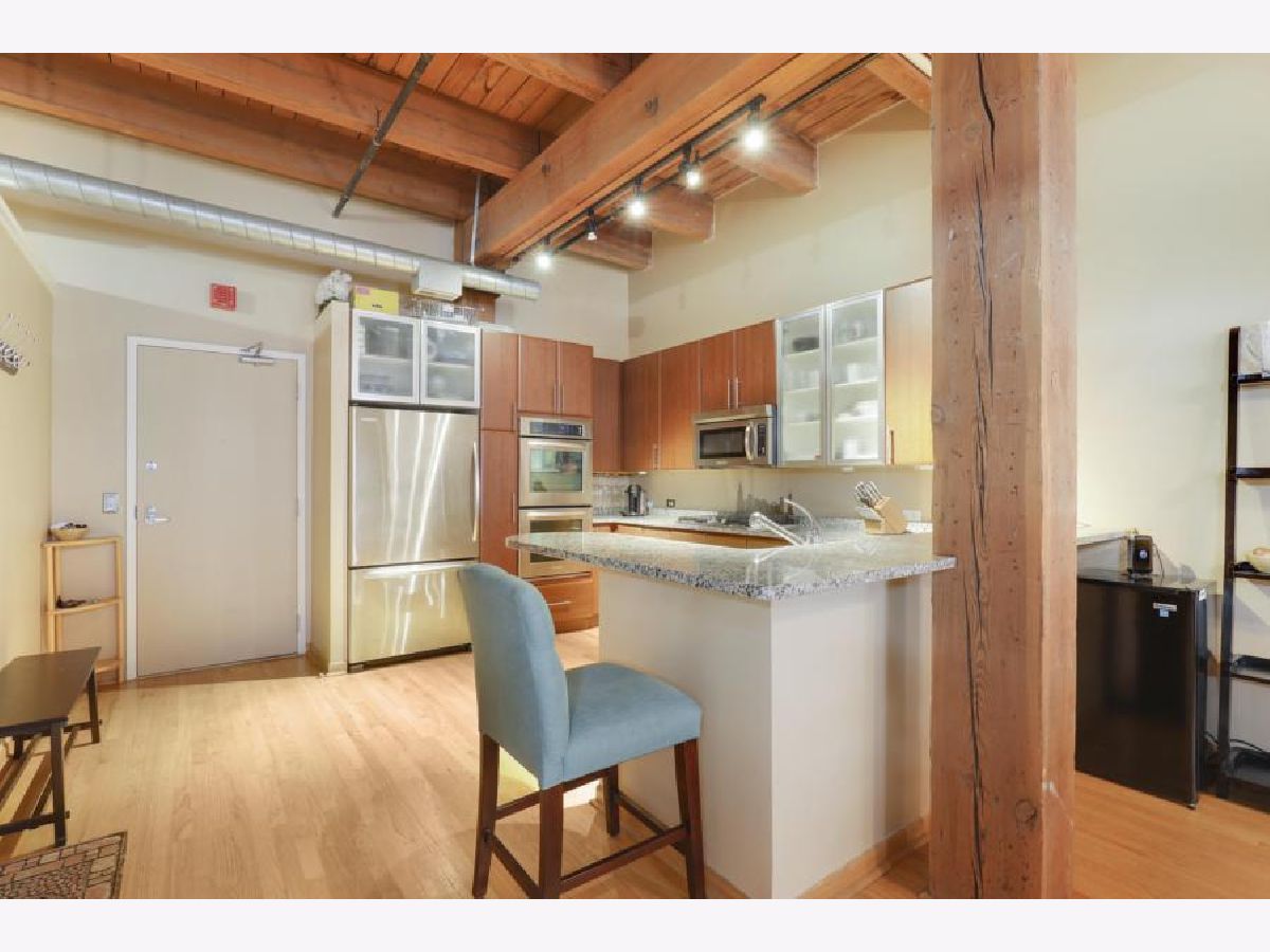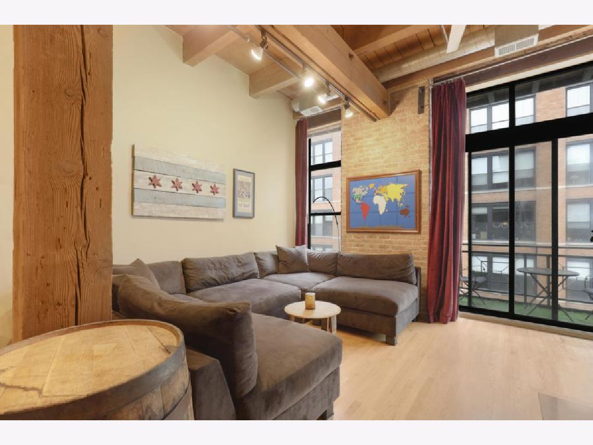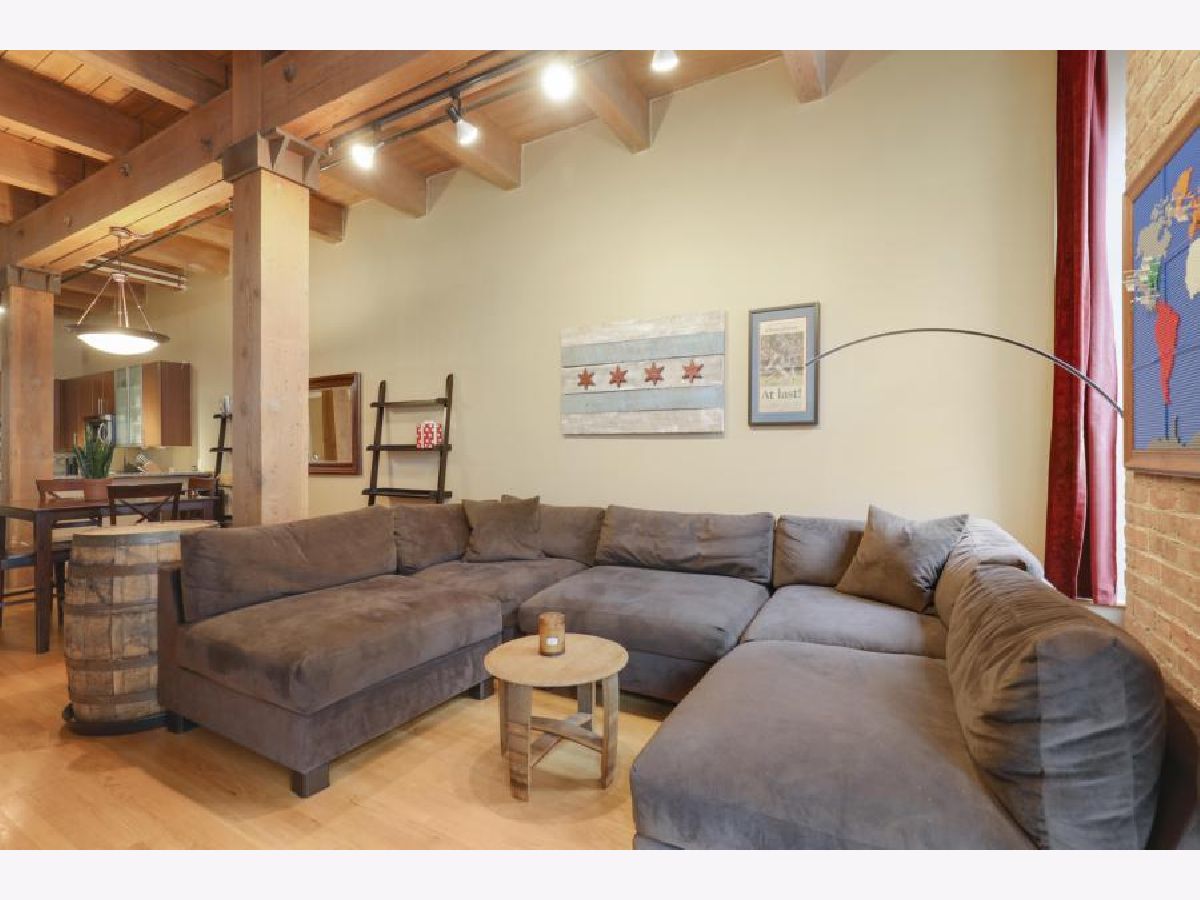 Prime West Loop Location for boutique timber loft building. Beautiful two-bedroom, one-bath home with exposed brick and 12' high timber ceilings for added volume. Hardwood floors & oversized windows. Well-appointed kitchen with granite countertops, KitchenAid stainless steel appliances includes double-oven. An abundance of in-unit storage including two organized walk-in closets! Laundry is side-by-side W/D, gas fireplace, balcony. Convenient to Loop, Greek Town Marianos & Whole Food, Fulton Market, D'Angelo Dog Park, Divvy Bike Station at the corner, Starbucks 500 W Jackson, and CTA UIC Blue Line stop. Garage parking and Webpass Internet included.