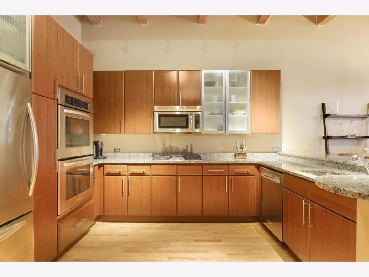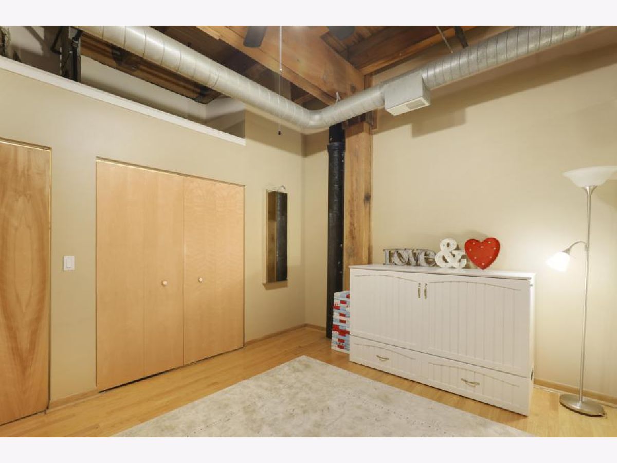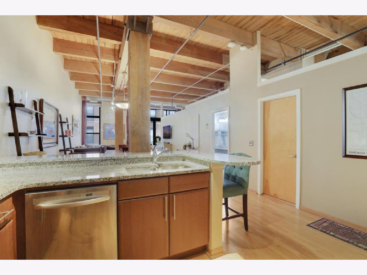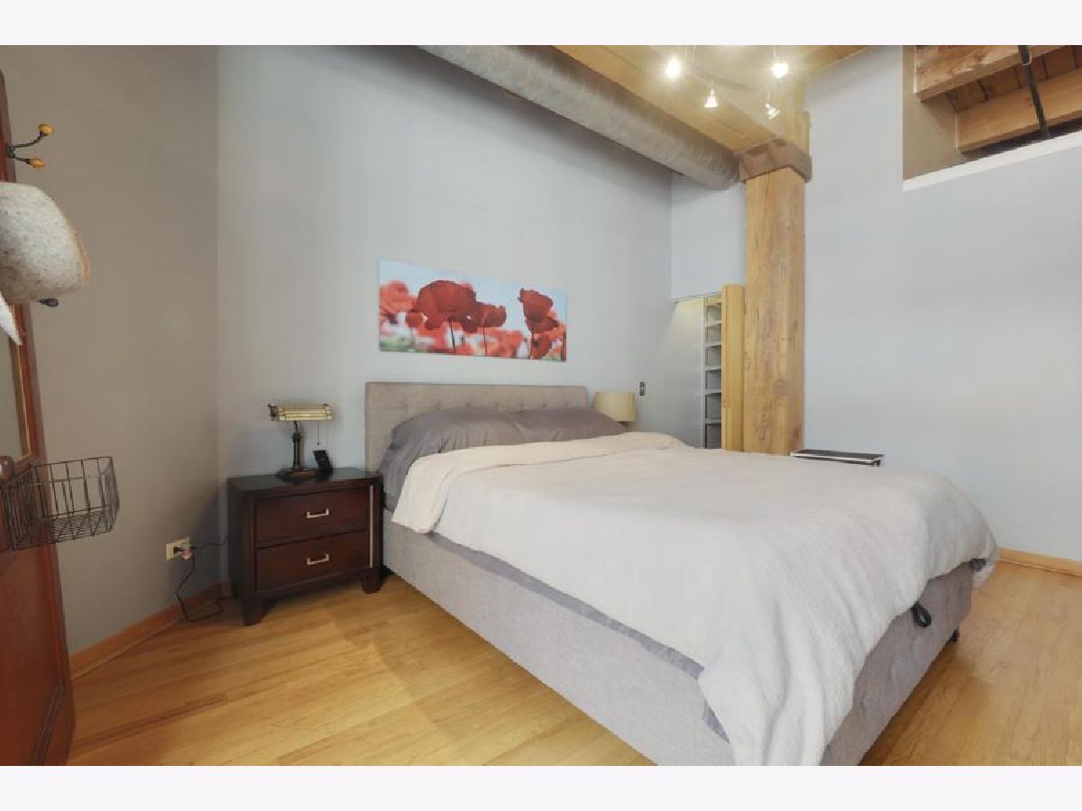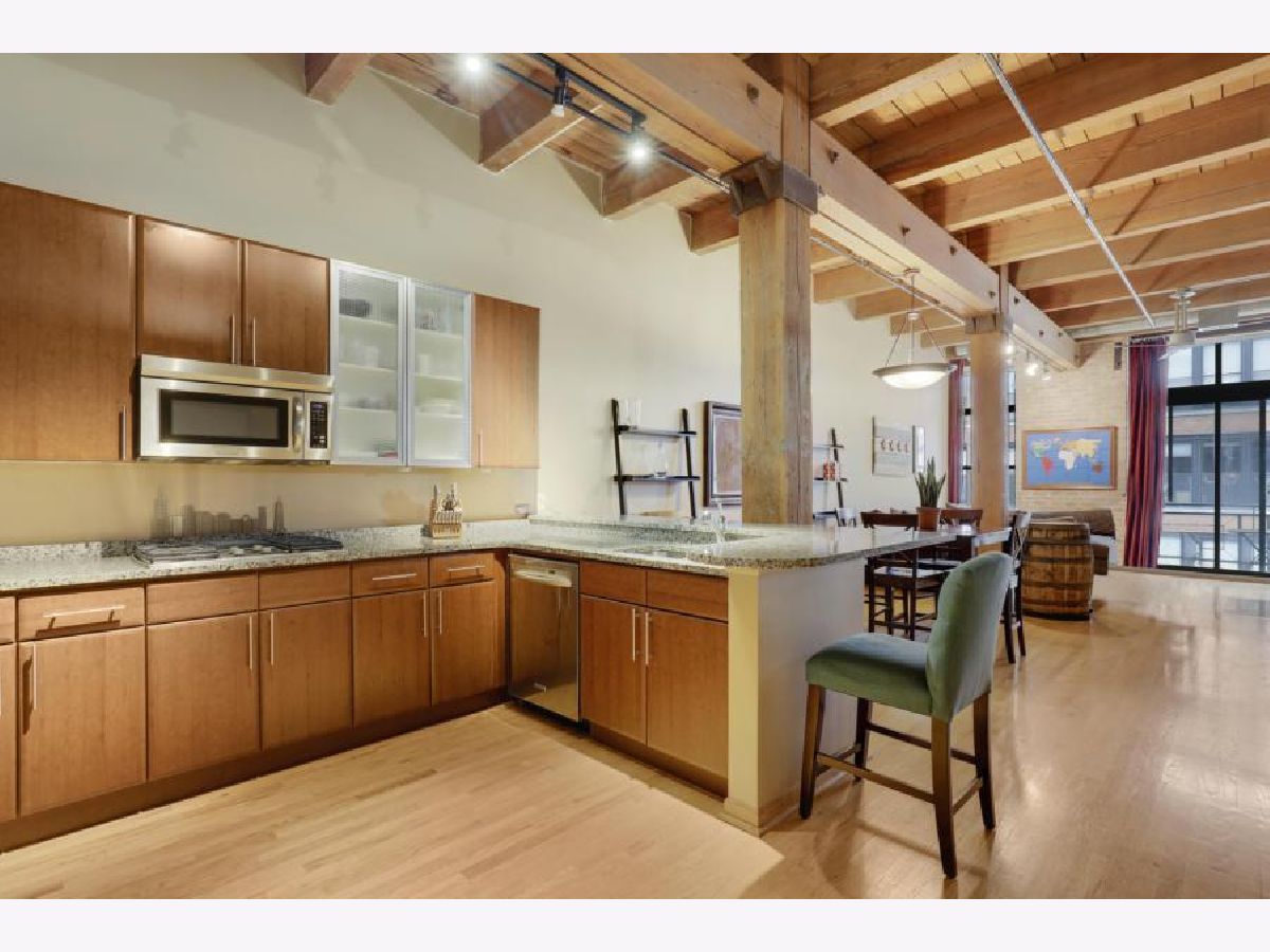 Prime West Loop Location for boutique timber loft building. Beautiful two-bedroom, one-bath home with exposed brick and 12' high timber ceilings for added volume. Hardwood floors & oversized windows. Well-appointed kitchen with granite countertops, KitchenAid stainless steel appliances includes double-oven. An abundance of in-unit storage including two organized walk-in closets! Laundry is side-by-side W/D, gas fireplace, balcony. Convenient to Loop, Greek Town Marianos & Whole Food, Fulton Market, D'Angelo Dog Park, Divvy Bike Station at the corner, Starbucks 500 W Jackson, and CTA UIC Blue Line stop. Garage parking and Webpass Internet included.