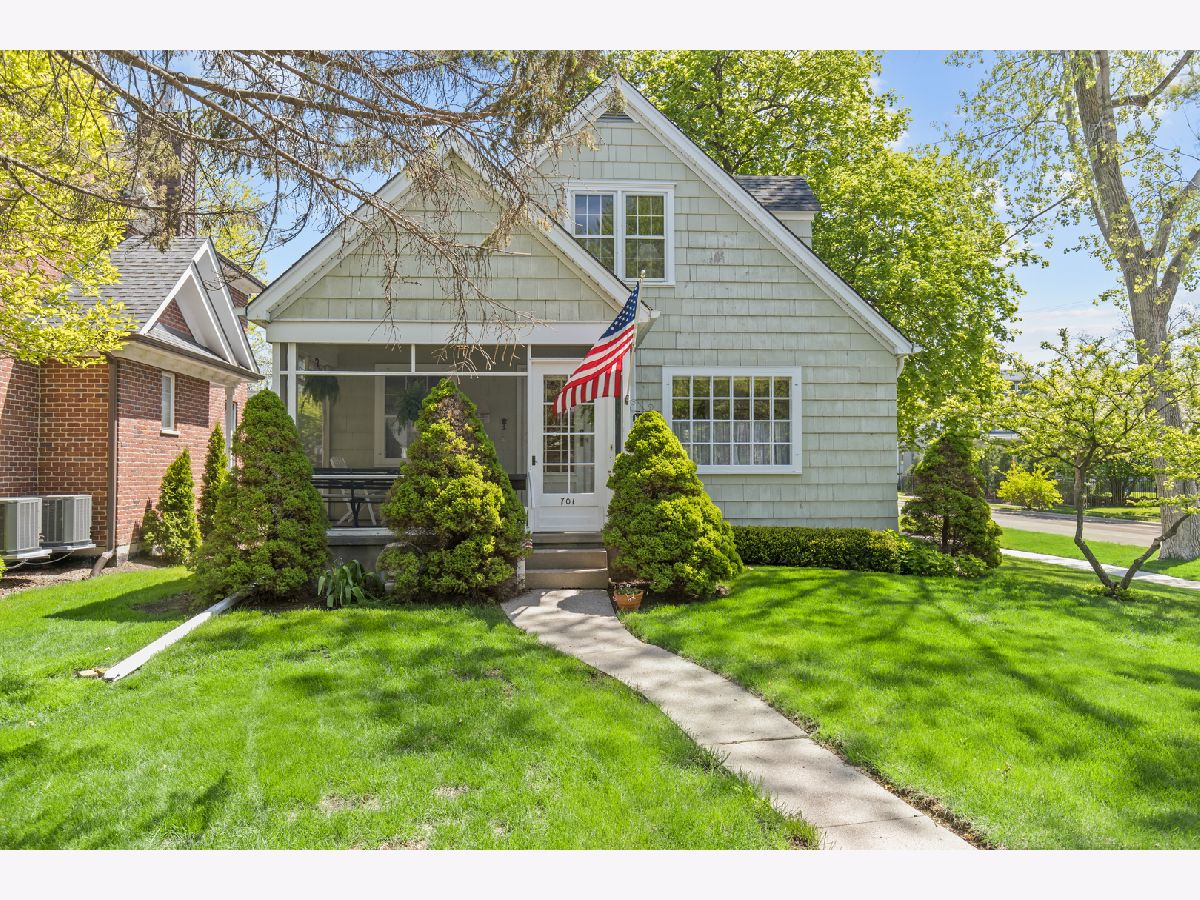 Welcome to 701 N Vail Avenue in the heart of Arlington Heights. Enter the lovely, screened porch where you will greet friend and neighbor alike. Sunshine abounds in every room. Hardwood floors throughout first and second floor. Well maintained wood doors, trim and windows. Eat-in kitchen with bay window, pantry and extra storage in hallway. Separate dining room. Full bathroom on each floor. Two bedrooms plus office on first floor. Potential in-law opportunity on second floor features large family room and sitting room with wood floors, full kitchen, full bathroom and sunny bedroom. Second-floor air conditioning is a window unit. Two furnaces. Large unfinished basement with full bathroom and gas fireplace. Walk by Virginia blue bells, mature trees, and lovely perennials to your 2-car detached garage. Amazing Arlington Heights Schools: Olive-Mary Stitt Elementary School, Thomas Middle School, John Hersey High School. Near to St James School, Arlington Heights Train Station and Library, Arlington Alfresco, restaurants, parks, shopping, Frontier Days and more. Sold As-Is. The home is much larger inside than it appears from outside. This well-loved home is ready for its next family to enjoy its beauty. Is it yours?