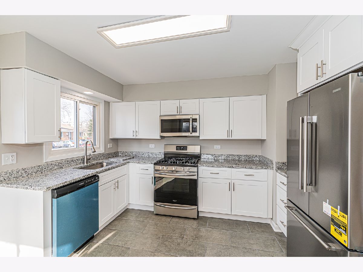Welcome to your new home! Move-in ready, renovated split-level end-unit town home in the highly desirable Chesterfield Gardens subdivision of Niles! NO HOA fees! The largest PRIVATE yard in the lot! As you walk in, you will notice the gleaming dark oak hardwood floors throughout the main and 2nd level and the vaulted ceiling. Brand new(2023) recessed (canned) lighting throughout. Completely renovated (2023) kitchen w/white shaker, soft-close cabinets, granite countertops and SS appliances. Separate dining room. Walk upstairs to find your 3 generously-sized bedrooms, equipped w/recessed lights and brand new closet doors. Completing the 2nd level is the full bath. Work your way downstairs to the lower level, where you will find a drop ceiling(2023), recessed lighting(2023) and luxury vinyl flooring(2023). The perfect space to entertain your guests, or to gather with the family and have a movie night! Separate laundry/utility room featuring a brand new electrical panel box(2023). Enjoy the Chicago summer days and evenings on your huge private, fenced-in yard/patio. Schedule your showing today, this one won't last long! Niles free bus!