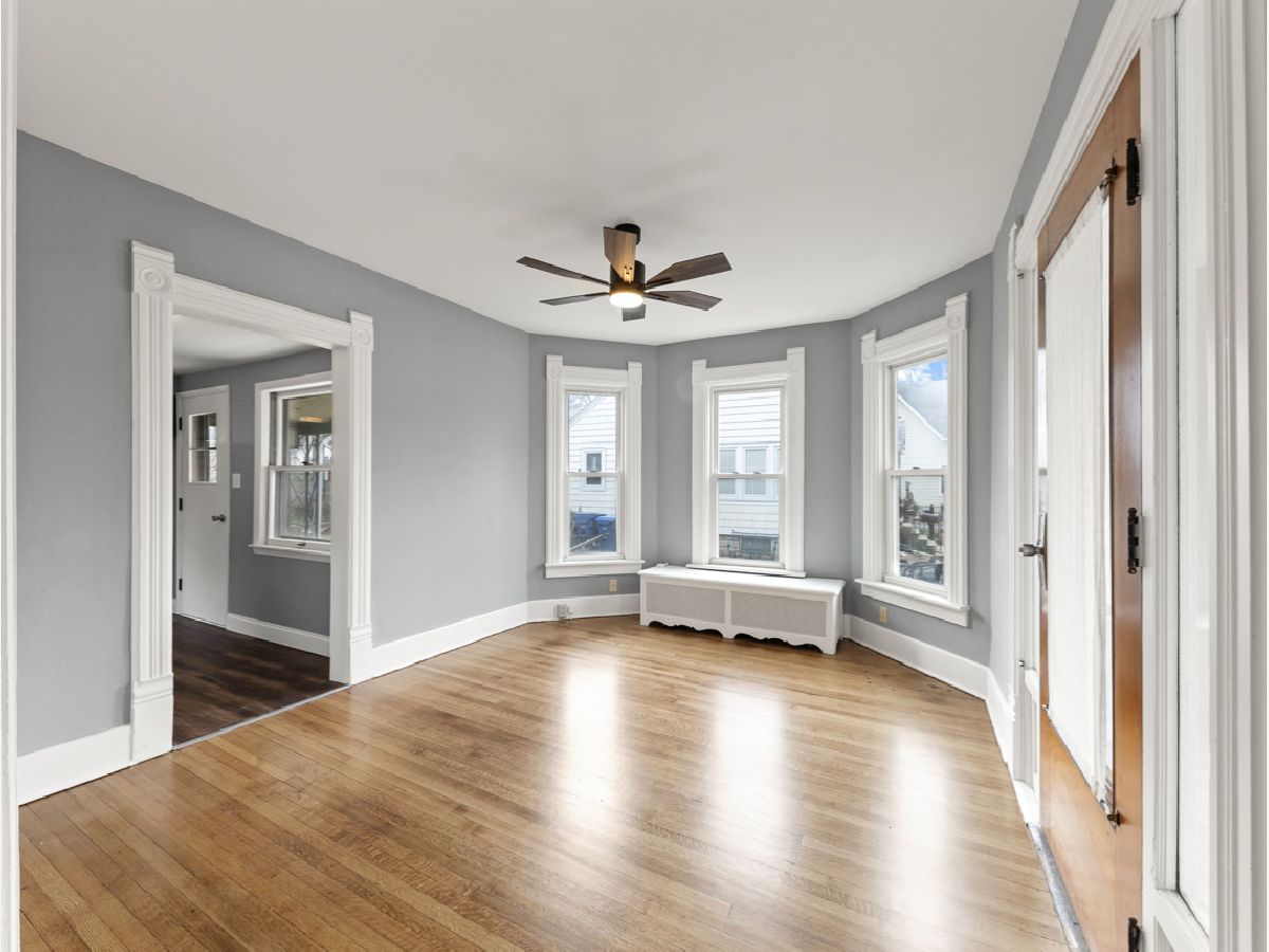 Move-in Ready! Many new updates to this 3-4 Bedroom/1 Bath 2-story! Newly refinished hardwood floors, NEW flooring, NEW carpet, New paint, and more! Updated kitchen w/new countertops, paint, and flooring. Updated full bath w/new vanity, plumbing, and light fixtures. Convenient 1st-floor bath & laundry. Office/Den can easily be converted back to an optional 4th bedroom on the 1st floor. Chimney and foundation recently had tuckpointing for general maintenance. Mature trees and a larger yard to entertain outdoors as well! The enclosed front porch and spacious side porch with newer decking provide additional entertainment space.