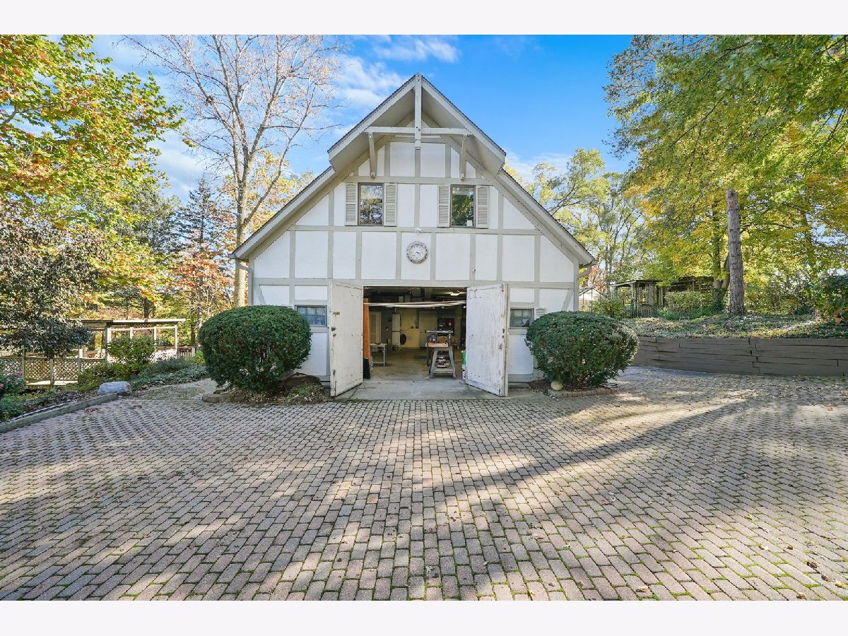 SOLD WHILE PROCESSING. Nestled on over 10 gated acres with 600 feet of private shoreline, this stunning Tudor estate offers unparalleled privacy, breathtaking lake views, and exceptional amenities. Originally built in 1990 the home was fully reimagined in 2020 by Stoneridge Builders, showcasing premium materials, custom cabinetry, high-end appliances, and future-ready technology. New roofs were added to all five structures, including the main residence, workshop, multifunction outbuilding, boathouse, and planting house. The beautifully landscaped grounds evoke the charm of a private park, with mature trees, large pastures, and serene water views. A private lake, free of combustion engines, offers safe swimming, kayaking, paddleboarding, and fishing, along with a sandy beach, barbecue area, and expansive water sports storage. Perfect for entertaining, the home features a 2,000 sq ft bluestone European-style terrace overlooking the lake, flowing seamlessly from a walk-out lower-level entertainment area complete with a home theater, billiards room, bar, and fireplace. The estate includes five bedrooms and a separate fully outfitted 700 sq ft one-bedroom apartment. Equestrian amenities include fenced pastures, a barn accommodating up to five horses, a heated dry pen with overhead heat, and a trailer loop for easy loading. The property is conveniently located near conservation riding trails and equestrian facilities. Outdoor enthusiasts will appreciate the 0.4-mile fully fenced running loop, two acres of manicured park-like grounds, and easy access to nearby golf and nature preserves. A 300 sq ft gym adds to the active lifestyle appeal. Additional features include a 1/4-acre vegetable and fruit garden with a gazebo, planting house, and polycarbonate greenhouse. A large heated workshop with half-bath, high ceilings, double doors, and built-in power tools sits adjacent to a 72x32 ft outbuilding with 15-ft ceilings and 240V power, ideal for hobbyists or professional use. Designed for modern living, the home is equipped with 1GB ultra-high-speed internet, an 11-satellite Wi-Fi grid, a dedicated office with a fireplace, and ample parking for guests or small business needs. This rare estate offers the perfect blend of luxury, recreation, and privacy-all in a prime McHenry County location.