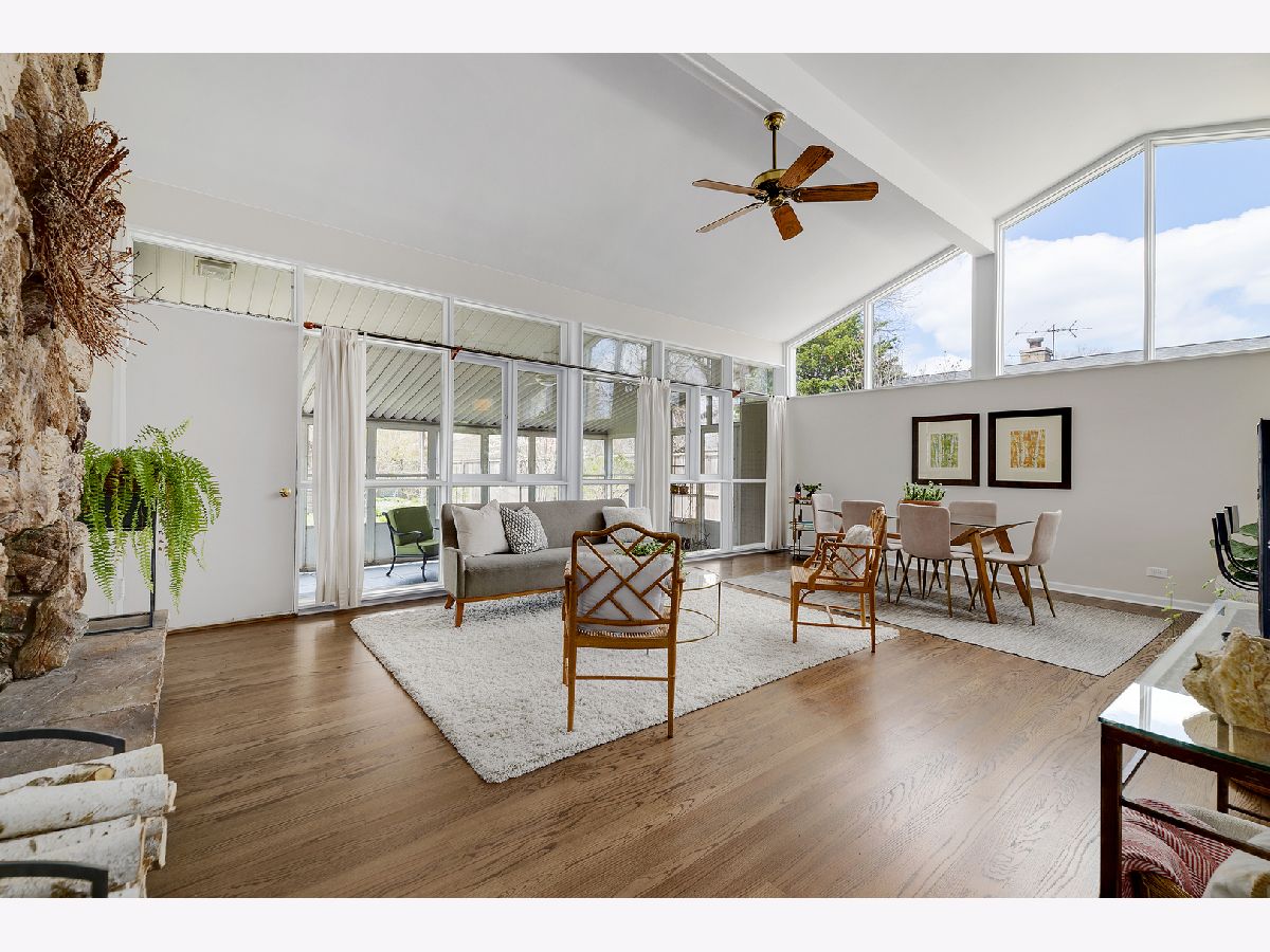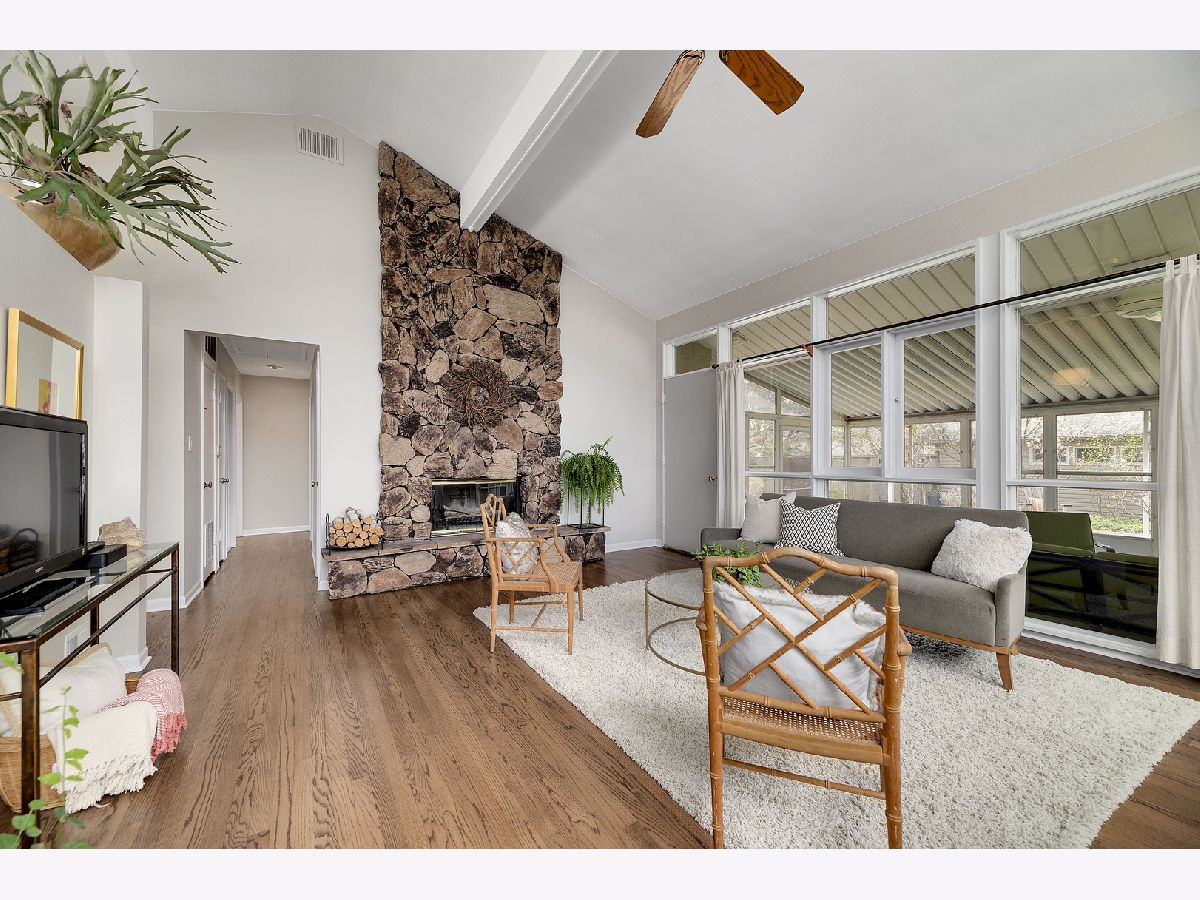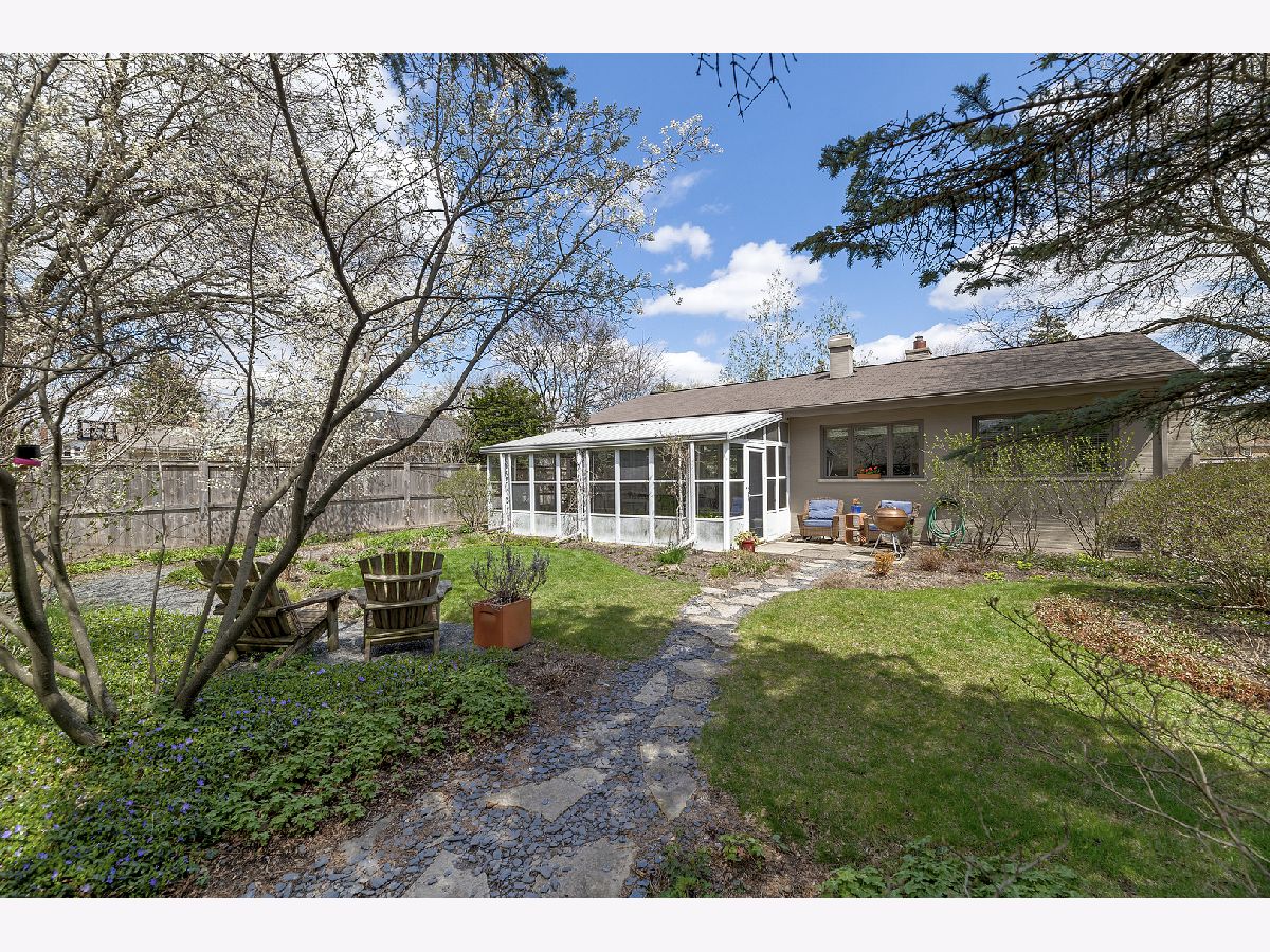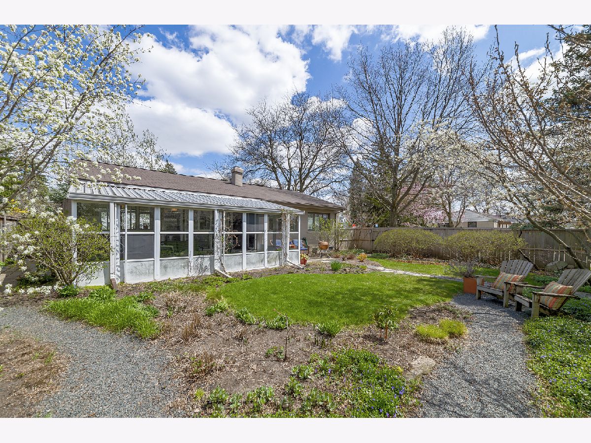 This admired Mid-Century Modern brick ranch on an over-sized corner lot is captivating! Aesthetically pleasing both inside and out, the current owners have painstakingly cared for and improved this special home. The transition of space from inside to outside disappears in the open architecture of the homes design. The incredible natural light, open space and varied ceiling height with walls of windows in some areas gives way to the perfect backdrop for showcasing artwork of all varieties. The recently renovated kitchen with contemporary cabinetry, peninsula and high-end stainless-steel appliances is a focal point of the home. The great room is anchored by a floor-to-ceiling wood-burning fireplace and this space is extended to the outdoor living space in the large enclosed porch that provides wonderful space for entertaining. The hardwood floors in the home were refinished in 2022 and two of the three bedrooms have views of the backyard. The bathrooms have been renovated, the majority of the interior of the home has been recently painted and all bedrooms have Hunter Douglas wood blinds. The earthen color palette on the exterior highlights the landscaping surrounding the home. Guests are transported to a private oasis in the fully fenced backyard with meticulously designed landscaping featuring winding flagstone and bluestone pathways, unique, mature shrubs and flowering trees including Quaking Aspen, Redbud, Serviceberry and Witchhazel plus many flowering perennials including cacti and grape vines. The detached garage can also be used as a dream workshop as its fully drywalled with air conditioning and heating. This stunning home will satisfy anyone with an appreciation for natural light, open space and nature.