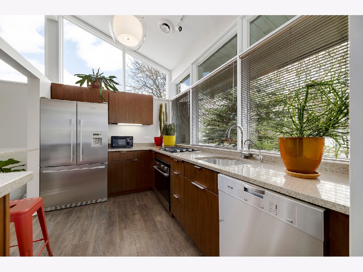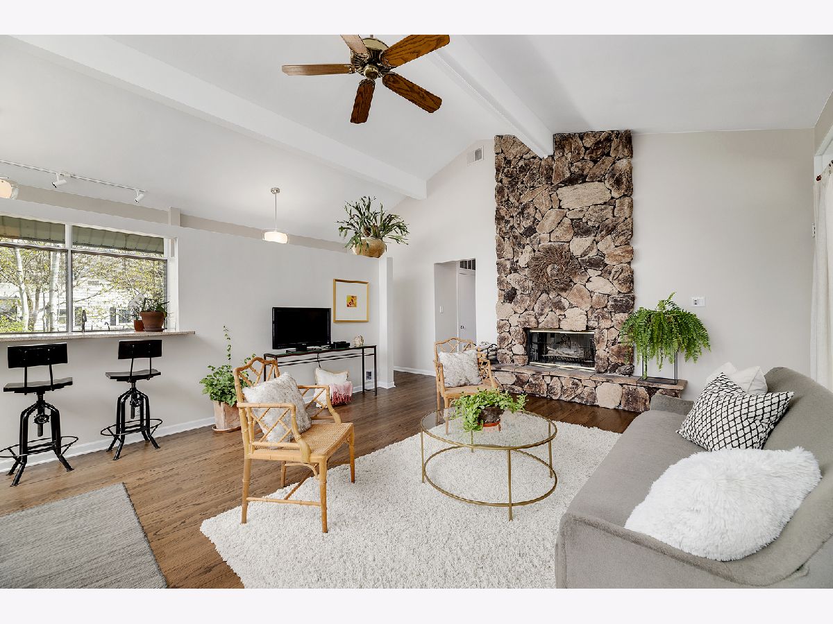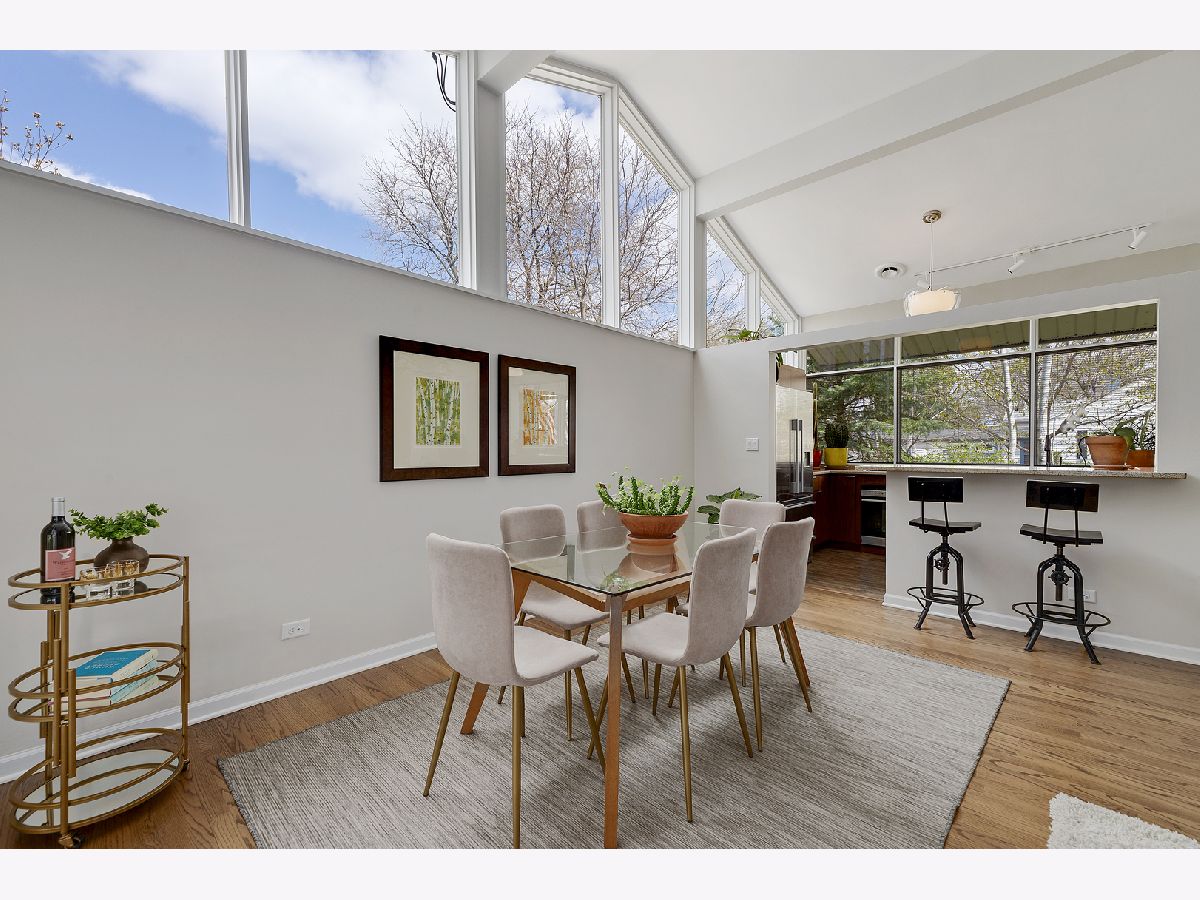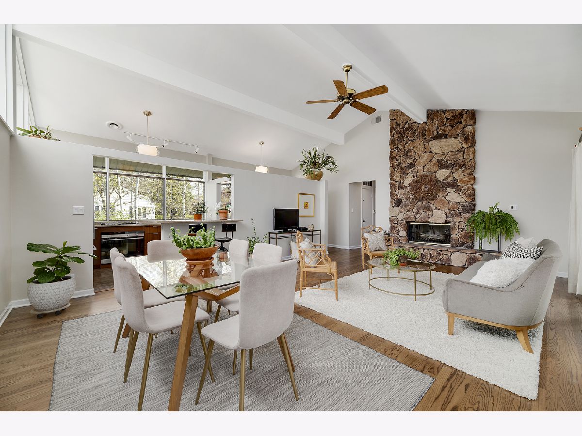 This admired Mid-Century Modern brick ranch on an over-sized corner lot is captivating! Aesthetically pleasing both inside and out, the current owners have painstakingly cared for and improved this special home. The transition of space from inside to outside disappears in the open architecture of the homes design. The incredible natural light, open space and varied ceiling height with walls of windows in some areas gives way to the perfect backdrop for showcasing artwork of all varieties. The recently renovated kitchen with contemporary cabinetry, peninsula and high-end stainless-steel appliances is a focal point of the home. The great room is anchored by a floor-to-ceiling wood-burning fireplace and this space is extended to the outdoor living space in the large enclosed porch that provides wonderful space for entertaining. The hardwood floors in the home were refinished in 2022 and two of the three bedrooms have views of the backyard. The bathrooms have been renovated, the majority of the interior of the home has been recently painted and all bedrooms have Hunter Douglas wood blinds. The earthen color palette on the exterior highlights the landscaping surrounding the home. Guests are transported to a private oasis in the fully fenced backyard with meticulously designed landscaping featuring winding flagstone and bluestone pathways, unique, mature shrubs and flowering trees including Quaking Aspen, Redbud, Serviceberry and Witchhazel plus many flowering perennials including cacti and grape vines. The detached garage can also be used as a dream workshop as its fully drywalled with air conditioning and heating. This stunning home will satisfy anyone with an appreciation for natural light, open space and nature.