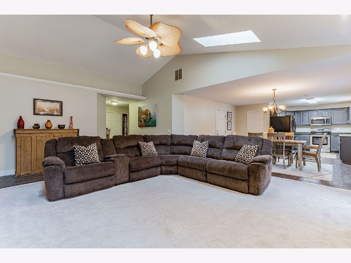 Located in Savoy's Prairie Fields Subdivision, this 1837 square foot ranch home has 3 bedrooms, 2 full baths, a 2 car garage and fully fenced yard. Once you enter the foyer, the open floor plan leads you to a spacious living room which includes an updated gas fireplace with remote control. The fireplace is framed from the floor to the ceiling with a brick hearth. With 2 full arched windows on each side of the fireplace and a vaulted ceiling with 2 skylights, you will have an abundance of natural light. The living room is open to the spacious dining room and leads to the kitchen that is equipped with all stainless steel appliances including a new refrigerator and microwave. Off the kitchen is a laundry room with bonus storage space. The main bedroom is on the East side of the home and has 2 walk-in closets and a newly remodeled full bathroom with a dual sink vanity, low flow toilet and tiled shower. The 2nd bedroom has a vaulted ceiling, arched window and an oversized walk-in closet that is shared with the 3rd bedroom. The backyard has a garden shed to minimize garage storage and a wood deck where you can relax while admiring the mature trees and a gazebo. With low county taxes and close proximity to Carrie Busey School and Prairie Fields Park, this home is ready for its new buyers!
