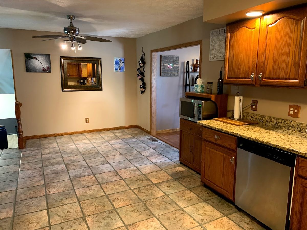 Large fenced yard, granite counter tops (2009), wood and ceramic tile floors throughout, Very large tiled eat in kitchen, Gas FP in main level FR (Needs gas line run), Wood fireplace in Lower Level Bonus family room with new Laminate wood floors/paint 2019. newer solid wood doors throughout and mirrored closet 2016, Lower level office. Stone fire pit added 2015, New AC unit 2017. Newer hot water heater, with power vent, 80 gal, 2013, Newer dishwasher 2013. So much space out back with a large shed, and a Great play area. Hudson living at its best! Septic pumped June, 2020. Fridge and stove to be taken and replaced with a different stainless stove and side by side fridge. (Photos available from Listing Agent on request)