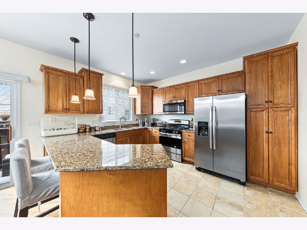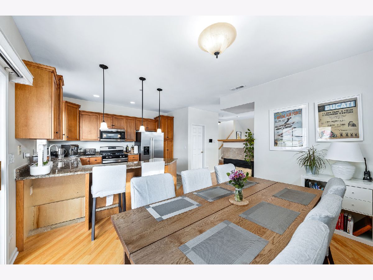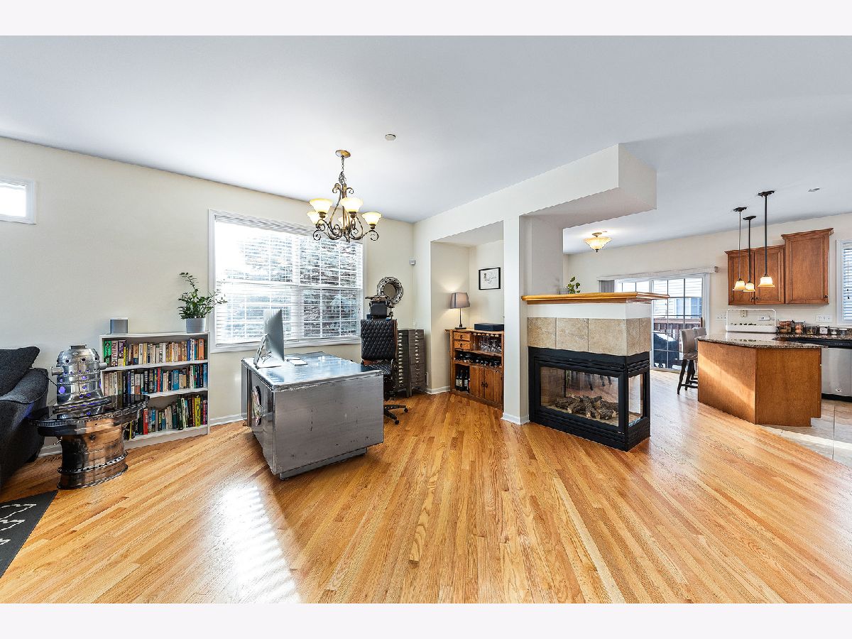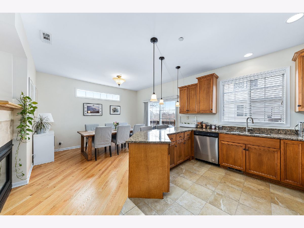 incredible Value! Desirable end unit in Prescott Woods. Open concept floor plan with tons of Natural light. Living Room with numerous windows & see-through fireplace, New Kitchen with Maple cabinetry, new appliances, spacious eating area with sliding glass door to private balcony. 2 generous bedrooms on 2nd floor. 2nd Floor Laundry. Walkout lower level with optional Family Room/Office/3rd Bedroom - with access to Patio/Courtyard. Smart home with security system, camera and more. 2-Car attached Garage. District #203 Schools. Quick close possible