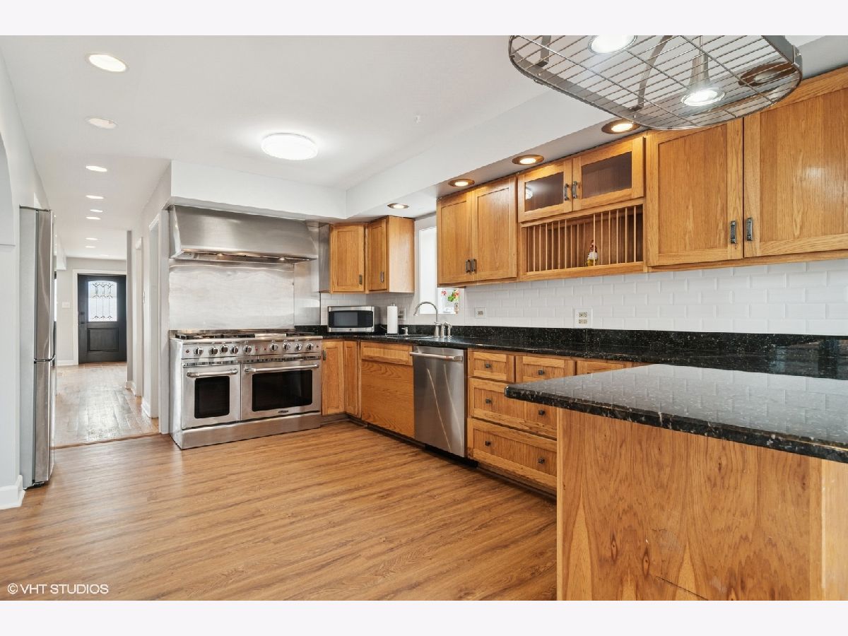 Welcome to this spacious and beautifully maintained updated 5-bedroom, 3.5-bathroom home, located in the highly sought after Clearing Area and offering comfort, functionality, and style across every level. Hardwood floors flow through all bedrooms and main-level entry rooms(all hardwood on first floor was just refinished), while the kitchen and basement feature waterproof laminate flooring, and bathrooms are finished with classic tile. The heart of the home is the gourmet kitchen, equipped with premium $20,000 stainless steel Capital 6-burner cooktop with center griddle, double oven, and a sleek matching hood vent. Additional high-end touches include a Cafe dishwasher, Haier refrigerator with counter-height freezer, granite countertops, a stainless steel pot rack, beveled white subway tile backsplash, and timeless Oak Shaker cabinets. A large living room and dining room complete the first floor which also features a full bathroom and a half bathroom that can easily be converted into a main floor laundry room. Upstairs, you'll find five bedrooms and two full bathrooms. The two front bedrooms feature bay windows, while the primary suite includes a private en-suite bathroom and a sliding glass door opening to a balcony and a catwalk to the expansive outdoor 26x24 all-wood double deck-painted, sealed, and wired with electrical outlets-perfect for entertaining. Tw bathrooms upstairs also feature wi-fi ceiling vents for music etc. The finished basement adds valuable living space and includes a utility/laundry room for convenience. A motion-sensor light adds security and ambiance on the rear first floor deck. Below the deck is the oversized 2-car garage which is climate-controlled with both heating and air conditioning, ideal for year-round use. Recent updates include full tuckpointing of the exterior, all new vinyl security fencing, and new concrete front stairs. Close to award winning elementary school, two high schools, shopping, restaurants and transportation.