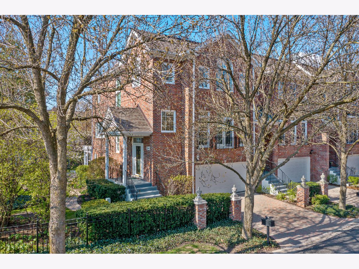 Stunning End unit townhome has hardwood floors on first and 2nd floors and finished walk out basement. Rare find with so much outdoor space with sun room, deck overlooking private courtyard and brick patio overlooking green space. ELEVATOR makes this a great option for long term lifestyle living! Two story foyer greets you, Large great room with full wall of windows, hearth room off kitchen with fireplace, Powder room and deck facing gorgeous courtyard. Upstairs are three bedrooms, master has private bath with tub and steam shower- hall bath as well. Walk out level has bath and family room with fireplace, sun room and access to private brick patio and green space - Two car garage with bonus storage area, Brick driveway, tankless hot water heater
