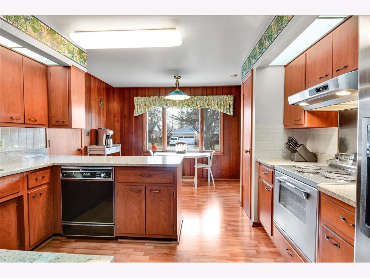 This impeccably maintained two-owner 1960's Tri-Level home is a Mid-Century lovers dream! Slate tiled entry opens to a large great room featuring a stone fireplace and beautifully preserved paneled walls with cove lighting. Eat-in Kitchen has original authentic Grabill solid wood cabinetry and updated Silstone countertops. Upper level features three large bedrooms with original hardwood flooring. Owners suite has double closets and a retro-tiled full bathroom. Additional living area with 2nd fireplace and 4th bedroom/office located on the lower level which leads to the expansive patio and fenced back yard. Continue down to the basement for even MORE space - laundry/utility room, storage closets and 16X27 Rec Room with a built in rock climbing wall! Oversized 2 car garage has a conveniently located utility sink, enclosed storage area and exterior door to access the yard. So much to love about this home, view in person to appreciate how meticulously it's been maintained over the years!