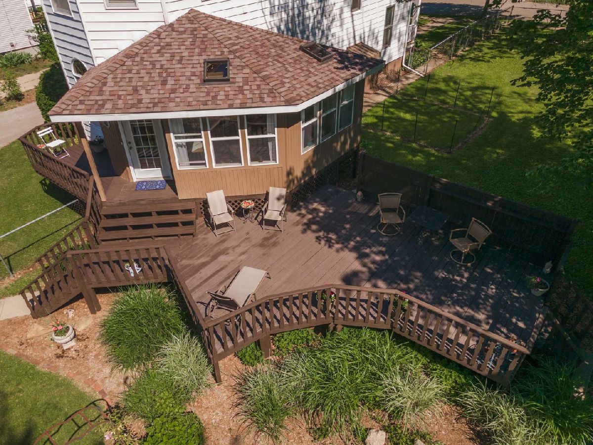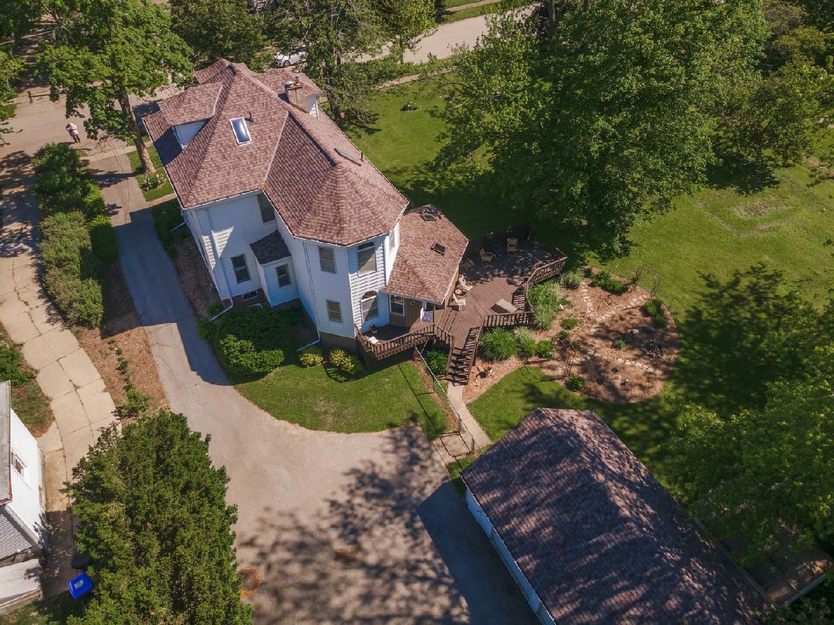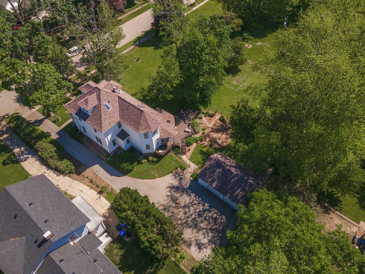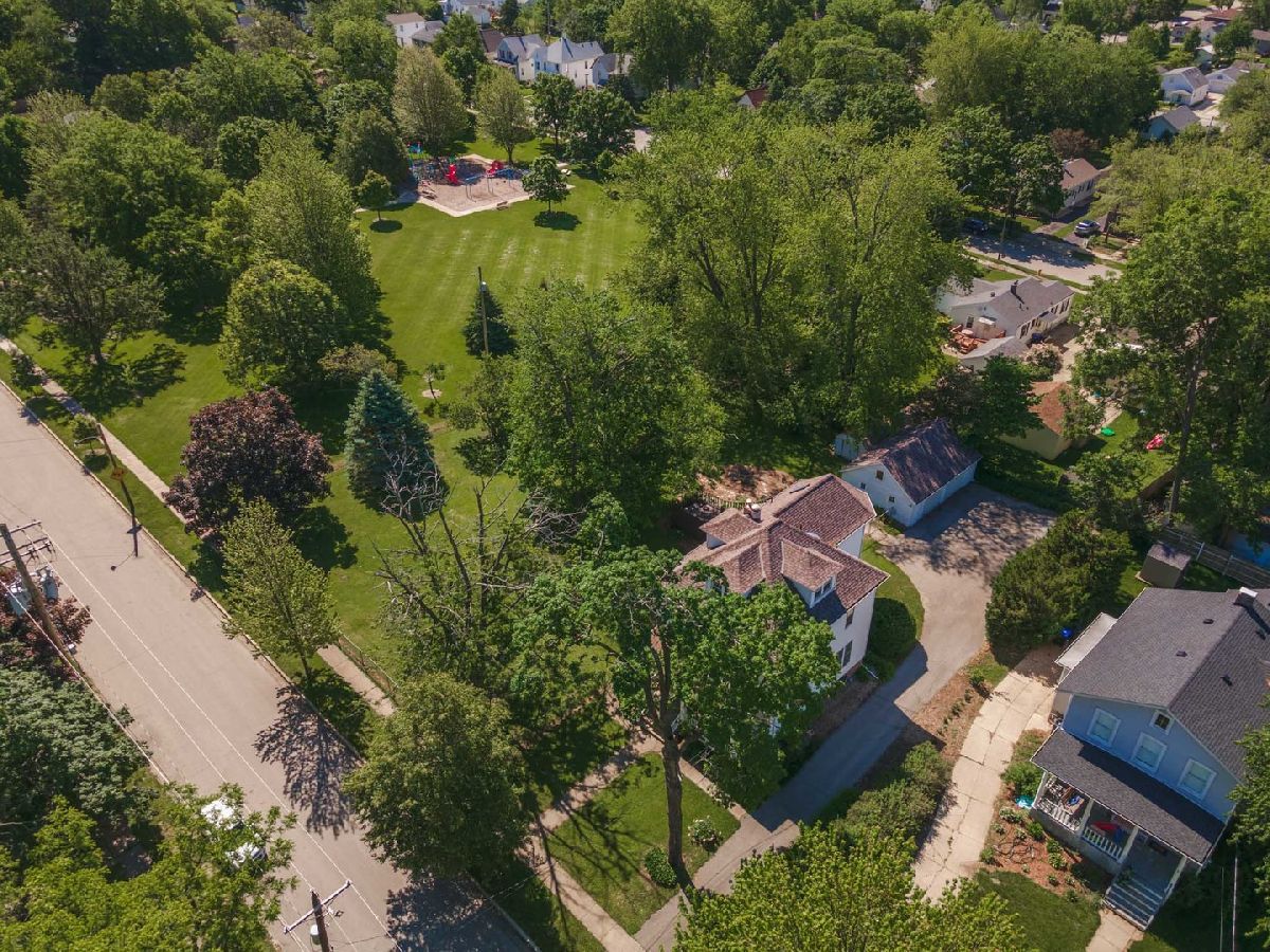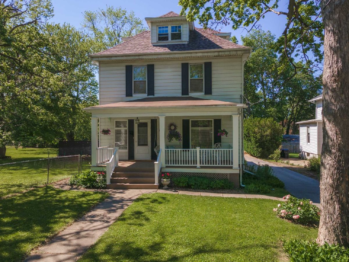 Beautiful American Foursquare home with so much to offer! Home sits on a double lot 100x146 and includes an adjacent "buildable" lot 56x146 next to Emerson Park. The house has a lovely 3-season room with access to an extra-large deck overlooking a flower garden, mature landscaping, and the park beyond. Enter the home via the charming front porch - noting the original stained glass window in the living room and extra tall ceilings. Large L-shaped kitchen includes ample storage with solid oak cabinets and an original walk-in pantry measuring 5x7. Proceed up the unique double-sided stairway with original woodwork details to 3 bedrooms. Convenient 2nd floor laundry is next to current flex space ideal for a home office or easy conversion into a 4th bedroom. The spacious, semi-finished 3rd floor attic can be easily finished for additional living space. An oversized, detached 2-car garage includes space for a workshop and additional storage in the attic accessible via staircase. All appliances stay. Kitchen floor 2021, water heater 2020, dishwasher 2019, front porch posts and railings 2018, air conditioner 2015, roof tear-off 2014. Please note: $4,500.92 tax amount reflects both parcel ID's #21-09-232-004 and #21-09-232-005. Approx. 400 sq ft of total sq ft is the 3rd floor attic area. Crawl is approx. 5x11.5.