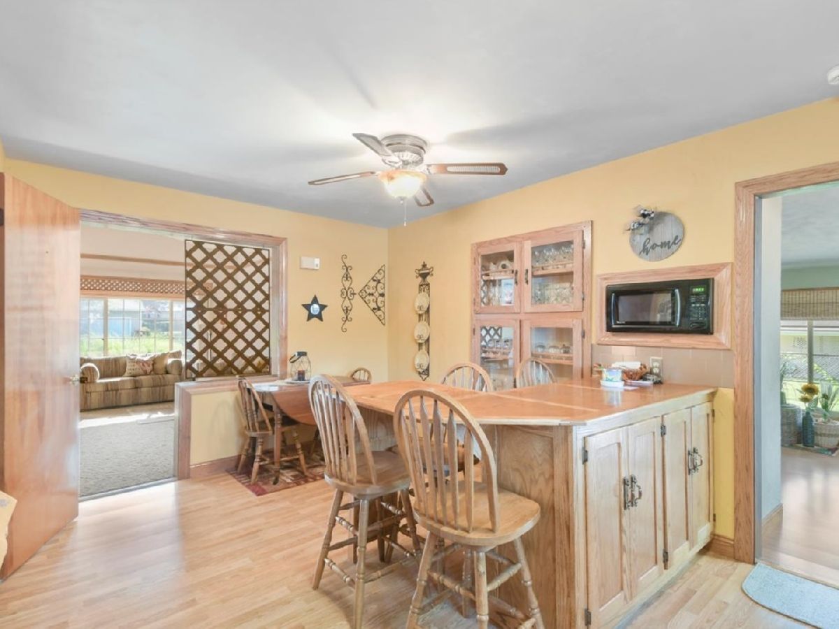 Wonderfully well maintained home with a great Monticello location. This spacious tri-level home features a street to street lot with mature trees and lovely landscaping making for great curb appeal. Vaulted ceilings and large windows brings tons of light and adds a spacious feeling to almost all the rooms. The eat in kitchen features oak cabinetry, breakfast bar and built in display cabinet. Off the kitchen is a great mud room to come in from the deck or detached garage. A sitting room full of windows faces the south and offers a great area to relax in the mornings before the start of the day. The second level offers the 3 bedrooms and an updated bath with tiled floors and tiled walk in shower. Space and storage options are not lacking in this home. The lower level features a family room with wood burning stove, full bath, laundry room and plenty of closet space. This is a well maintained home with a great location near the high school. Check it out today.