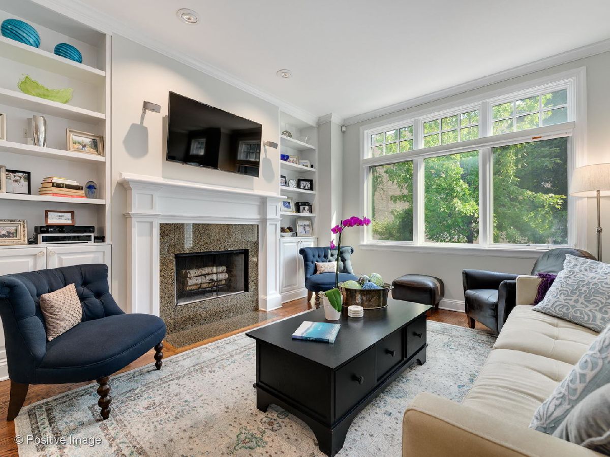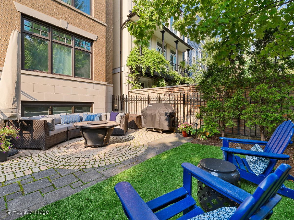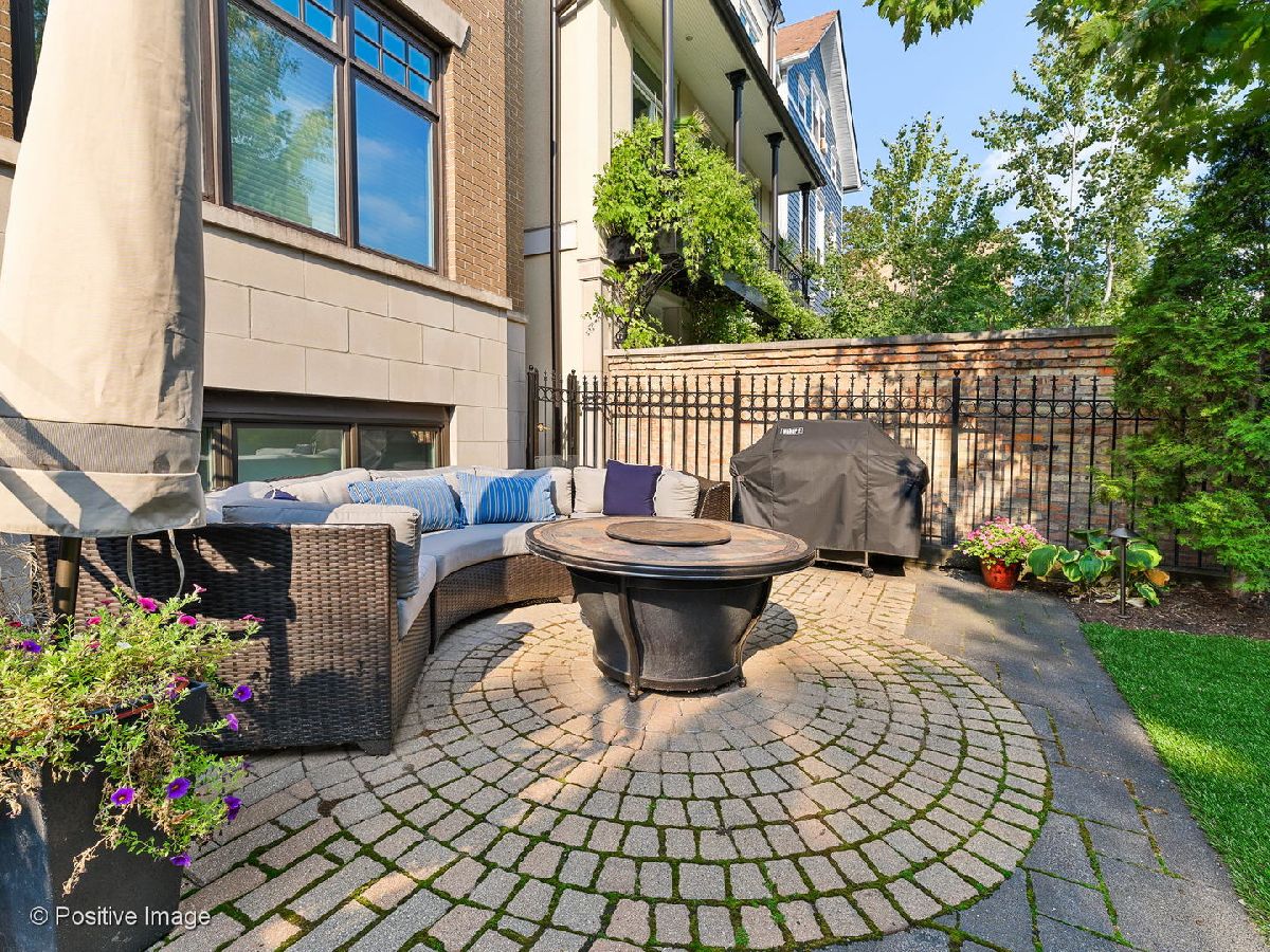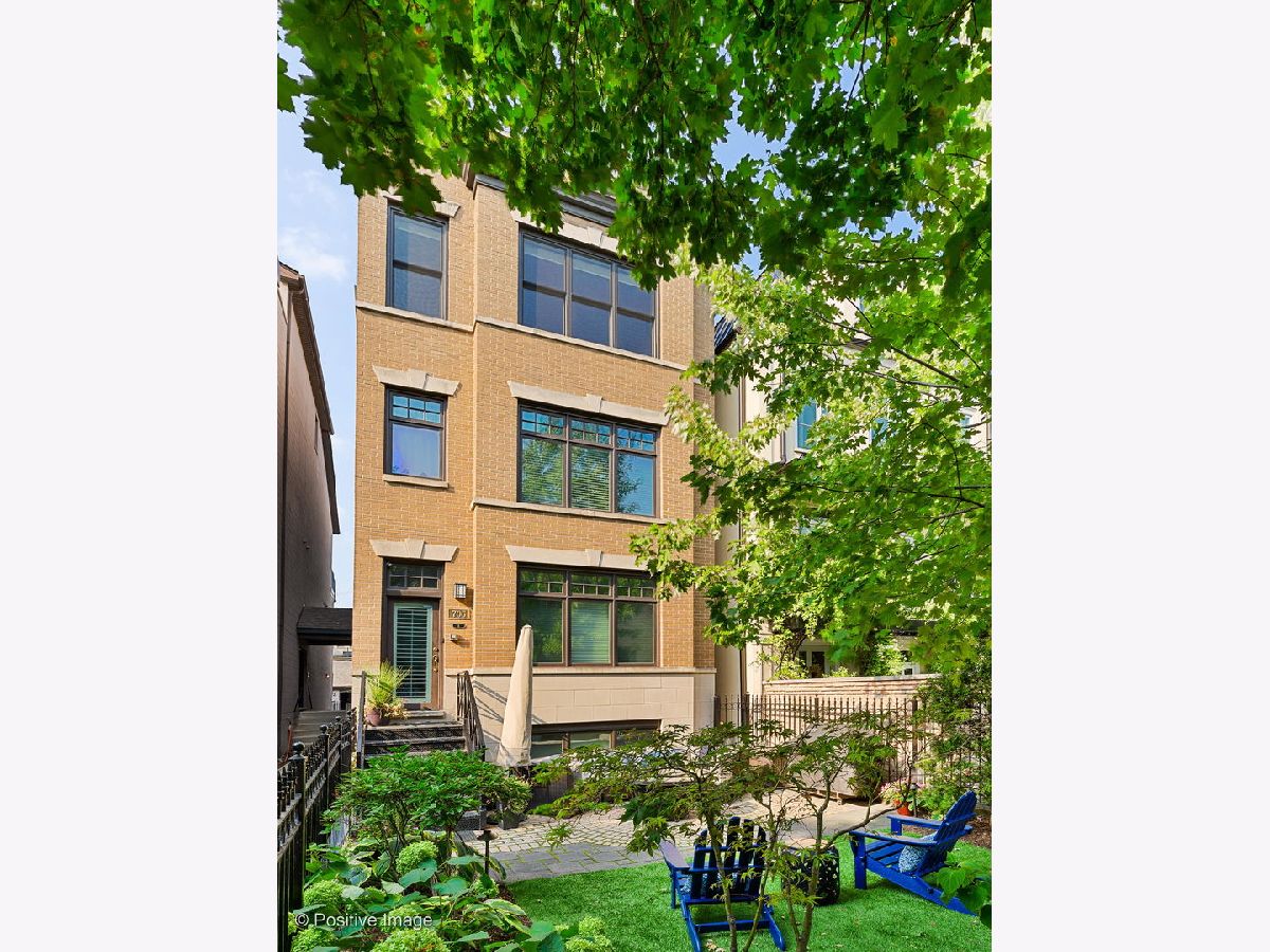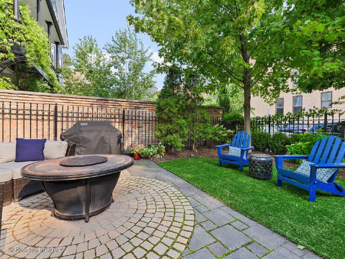 Environs built highly upgraded Triplex, south facing, tons of natural light, overlooks a 30x23 private gated front yard with artificial turf, professionally landscaped, mature trees, pavers, plantings, fire pit, perfect for you and your guests, grilling made easy. All new kitchen high end stainless steel appliances, granite countertops, stovetop vents out. Lower level spacious family room with electric blinds, bedroom and half bathroom.Top floor offers two bedrooms, full bathroom and primary luxurious ensuite with Hans Grohe &Horus fixtures including rain shower, herringbone flooring, quartz countertops, custom throughout.Main level is a generous kitchen, dining and living room with high ceilings, wood burning fireplace. One parking garage spot and storage included in price. Owners have an immaculate home, taking very special care for new owners. Perfect location to Diversey shops, restaurants, Trader Joes, Clark St, Halsted St. and more