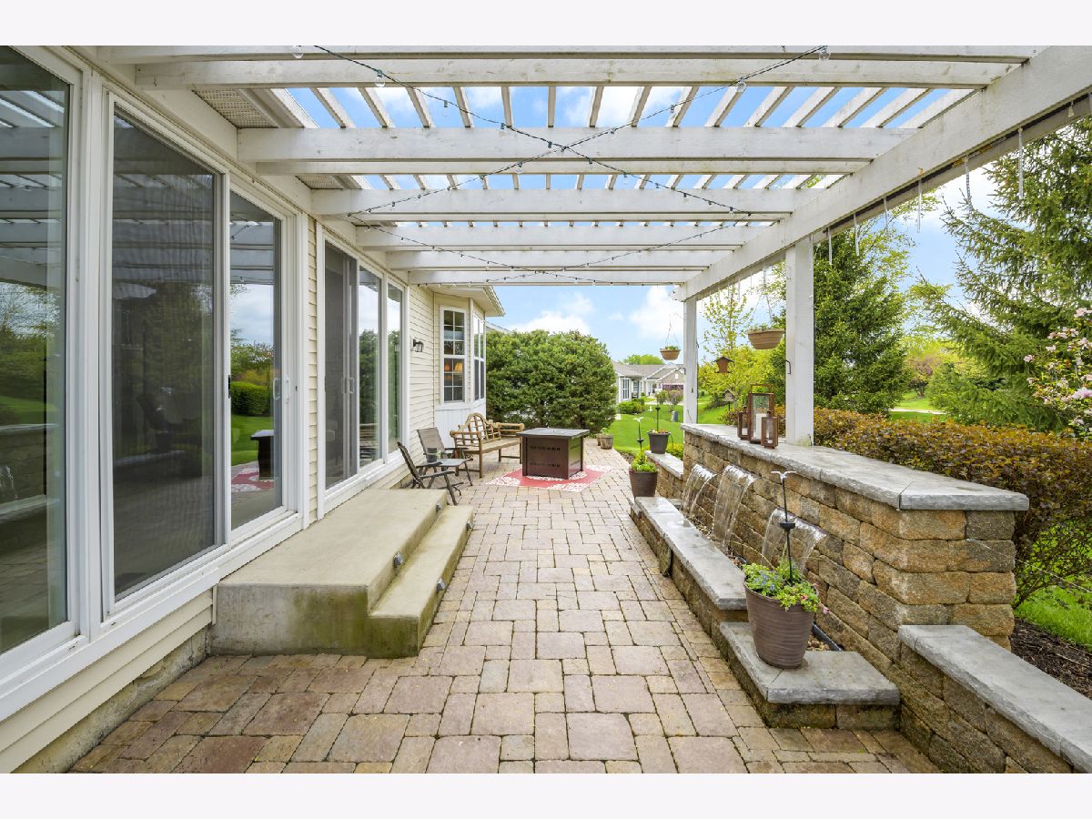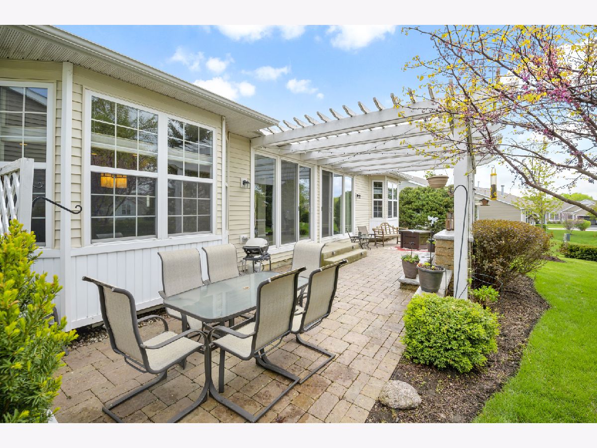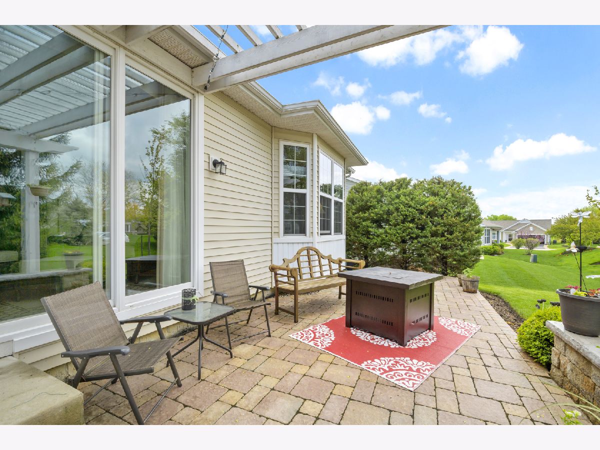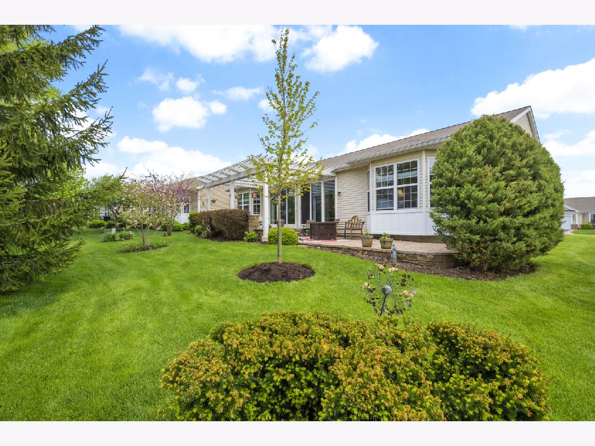 Stunning home in Shorewood Glen Del Webb! This beautiful Charleston model home has many upgrades and features! Upon entering this spectacular home you are welcomed by the Tuscany inspired great room with a panoramic view of the 12 ft wide brick paver patio with waterfall and pergola. 2 bedrooms (with option to use 2 other rooms as bedroom), 3 full bathrooms (2 of them walk-in showers), office/den with french doors, FULL FINISHED basement has 9 ft ceilings, full bathroom with a walk-in shower, popular double barn doors for separate room for privacy/bedroom, wet bar, VERY OPEN for whatever suits you. Gorgeous engineered hand scraped wood on main level except for ceramic tile in bathrooms, foyer, sunroom and laundry. The master bathroom has a custom wrap around walk in shower, heated towel bar, double sink Corian vanity, private toilet. Eat in kitchen with island, Corian tops, custom backsplash, staggered height cherry cabinets with lighting above and beneath. Garage floor has been tarp protected. Owners have taken great care of this special property.