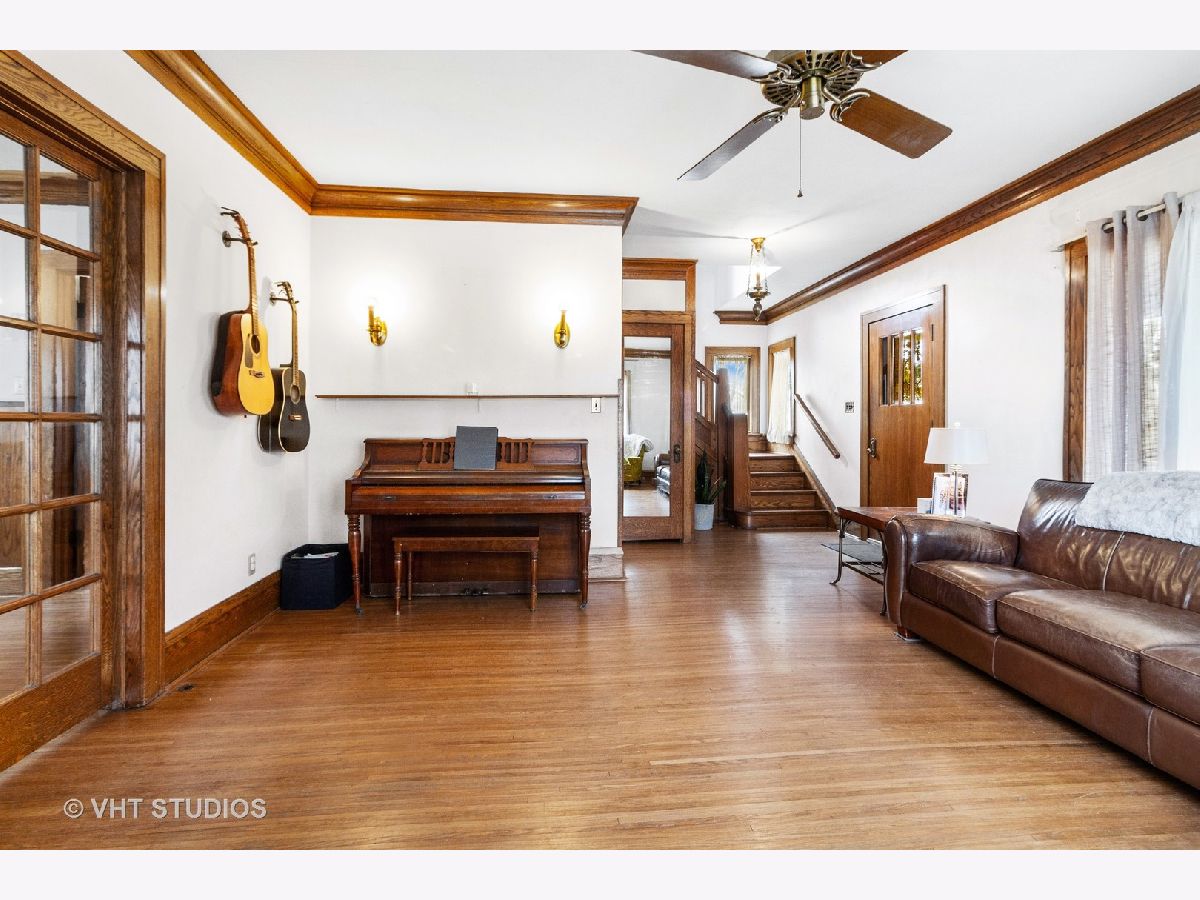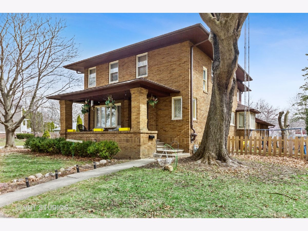 This well built charming brick home boasts oak hardwood floors, doors and trim, high ceilings and lots of storage. The electric service has been upgraded and there is new plumbing in the upstairs bathroom and basement.The first floor includes an eat in kitchen which leads to a beautiful separate dining room with a spacious wall to wall oak buffet with twin china cabinets. The French doors of the dining room lead into the large living room with crown molding and expansive windows. The grand oak staircase leads to the 4 large bedrooms on the 2nd floor, walk in closets, full bath and additional staircase to the attic. You can also enjoy the outdoors on your large front porch or fenced in back yard. This home is conveniently located in the heart of town, close to Harvard High School, downtown Harvard and the Metra UP.