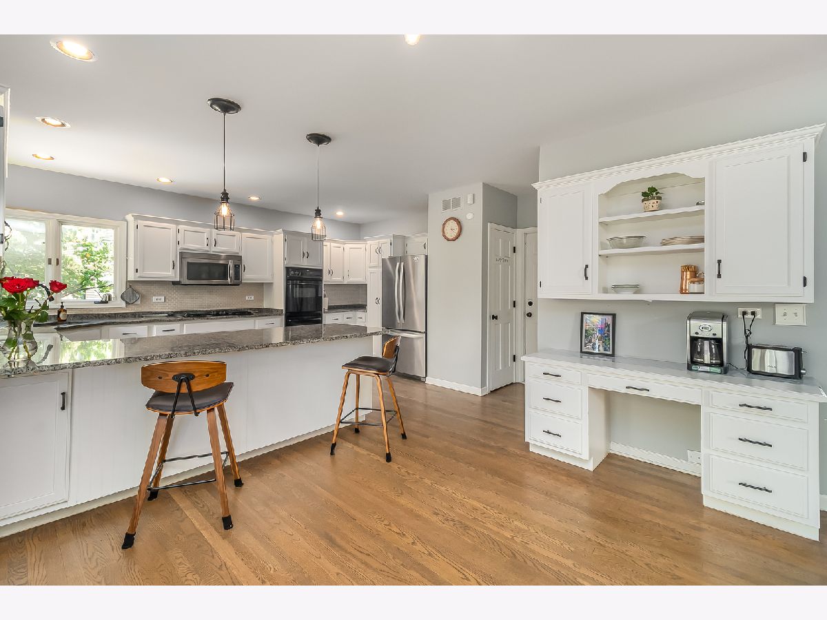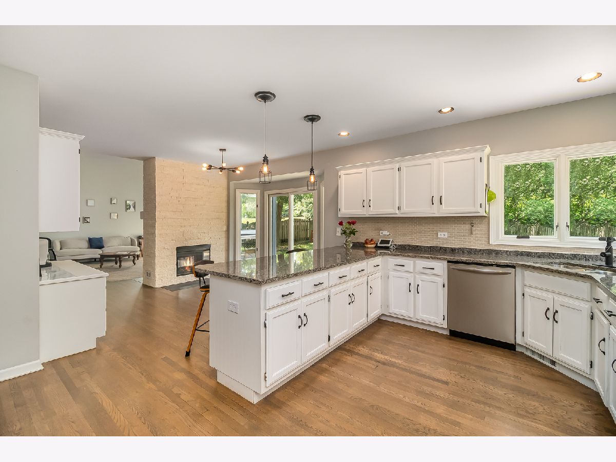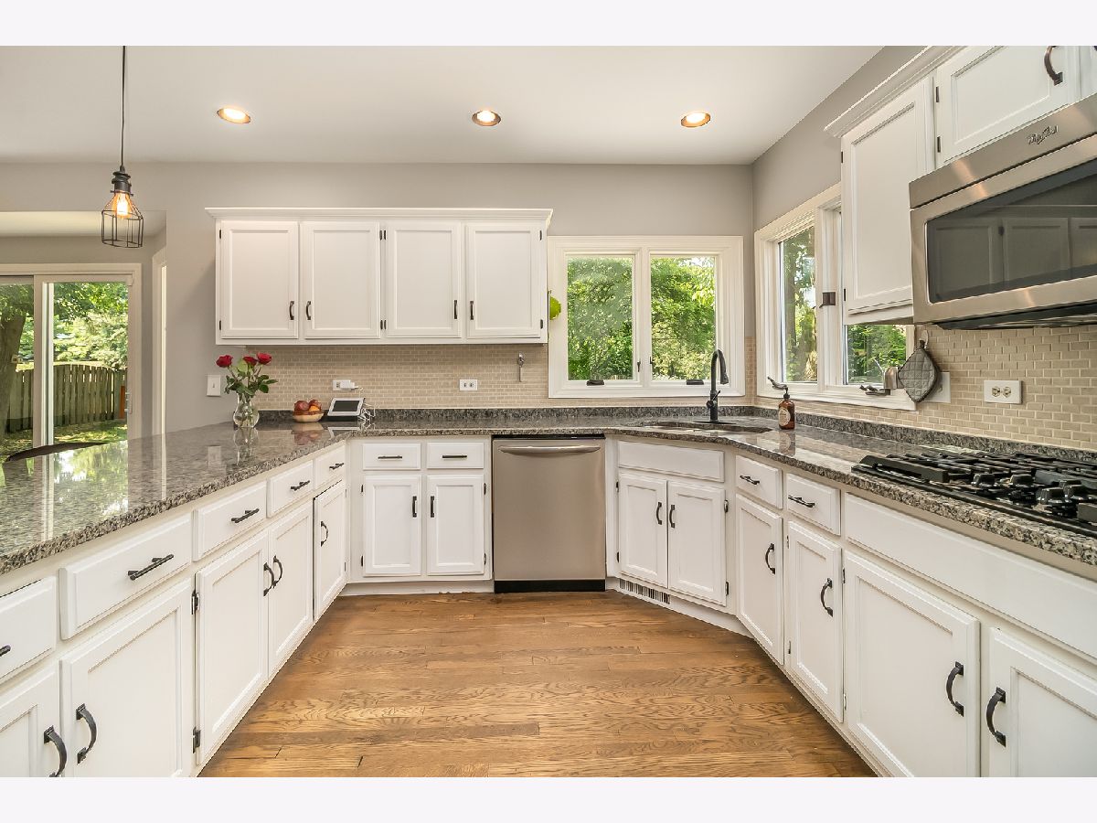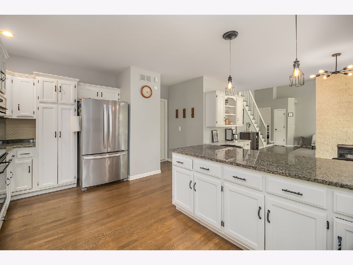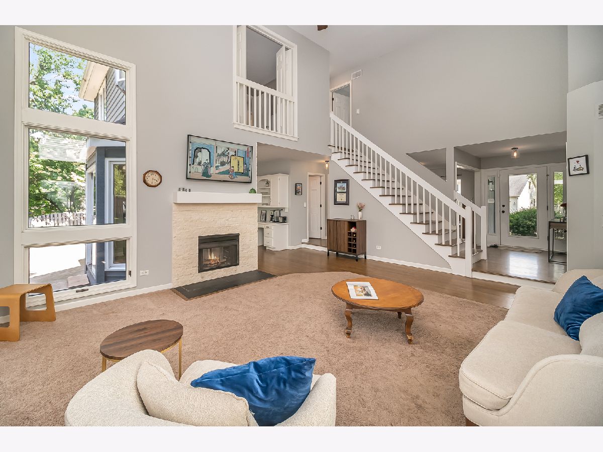 This unique Oakhurst Home has been updated with all of today's colors and trends. The First Floor offers wide-open living space starting with the 2-story Family Room featuring floor to ceiling windows that bring in natural light and warmth and the double-sided fireplace that leads you to the Breakfast Room w/ Built-In Desk. The spacious Kitchen has been updated with white cabinets, granite countertops, newer SS refrigerator, microwave, and dishwasher, and plenty of seating at the large peninsula. Gorgeous hardwood floors have been added in the Dining Room and make the flooring transition to other rooms seamless. This home features a large 1st Floor Master Suite with Walk-In Closet and updated Master Bath with Double Vanity w/ Marble Top, Walk-In Shower, Freestanding Tub, and Tile Floor. On the 2nd Floor, you'll find 3 additional Bedrooms (one large enough to have sleeping and play/living space) which share a Full Hall Bath, as well as the Laundry Room (Washer & Dryer new in 2020!) and a Loft which opens to the Family Room below and offers versatility to be used as an Office, Workout Room, or 5th Bedroom. The finished Basement adds over 850 SF of Living Space including a Bar Area and Workout Nook, as well as a Crawl Space for added storage. Backyard is fully fenced and the large Patio extends around to the rear entrance of the large 3-Car Garage. Close to everything - with easy access to Eola and Rt 59 Corridors, I-88, Commuter Trains and serviced by Award Winning Naperville District 204 Schools!!