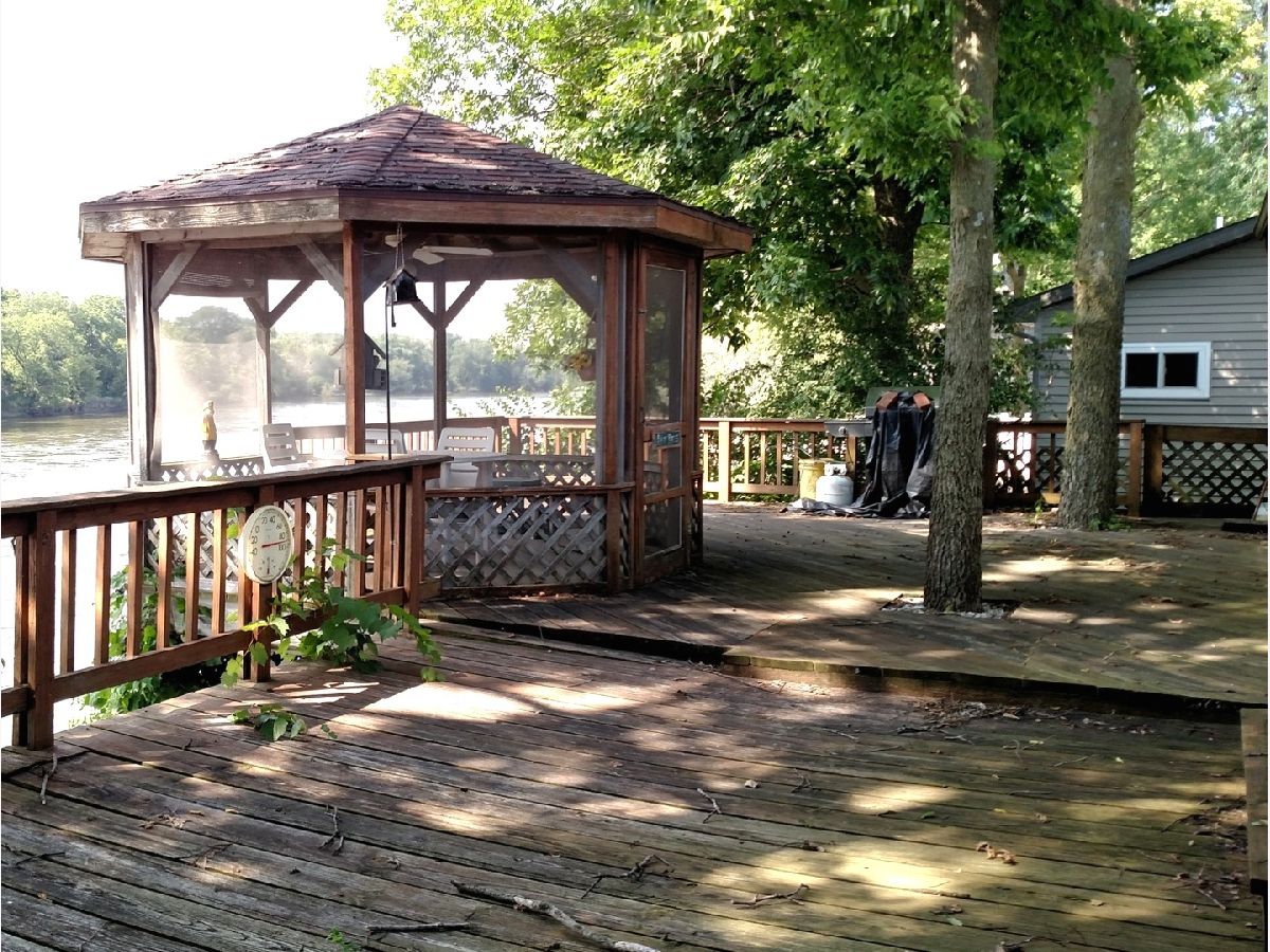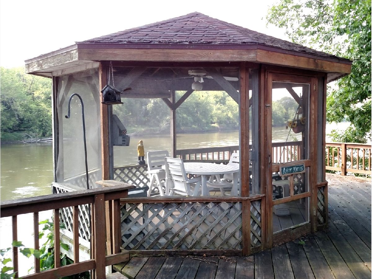 Don't miss your chance to live on the Rock River! Enjoy outdoor living and spectacular sunsets on a spacious deck or inside the gazebo directly overlooking the river! Home features a large living room area with sliders to the deck, large eat-in kitchen, over-sized family room area with vaulted ceiling & wood-burning stove, large second bath with jacuzzi tub and separate shower area, bedrooms with ceiling fans and laundry room with utility sink. Bring your decorating ideas and make this wonderful riverfront home your very own! The one-car garage is large enough for boat storage and there is an additional shed with lots of room for storage. For those not familiar with the neighborhood, there is a common boat launch area. Don't miss this one! Please note - this is an estate sale being sold "as is".